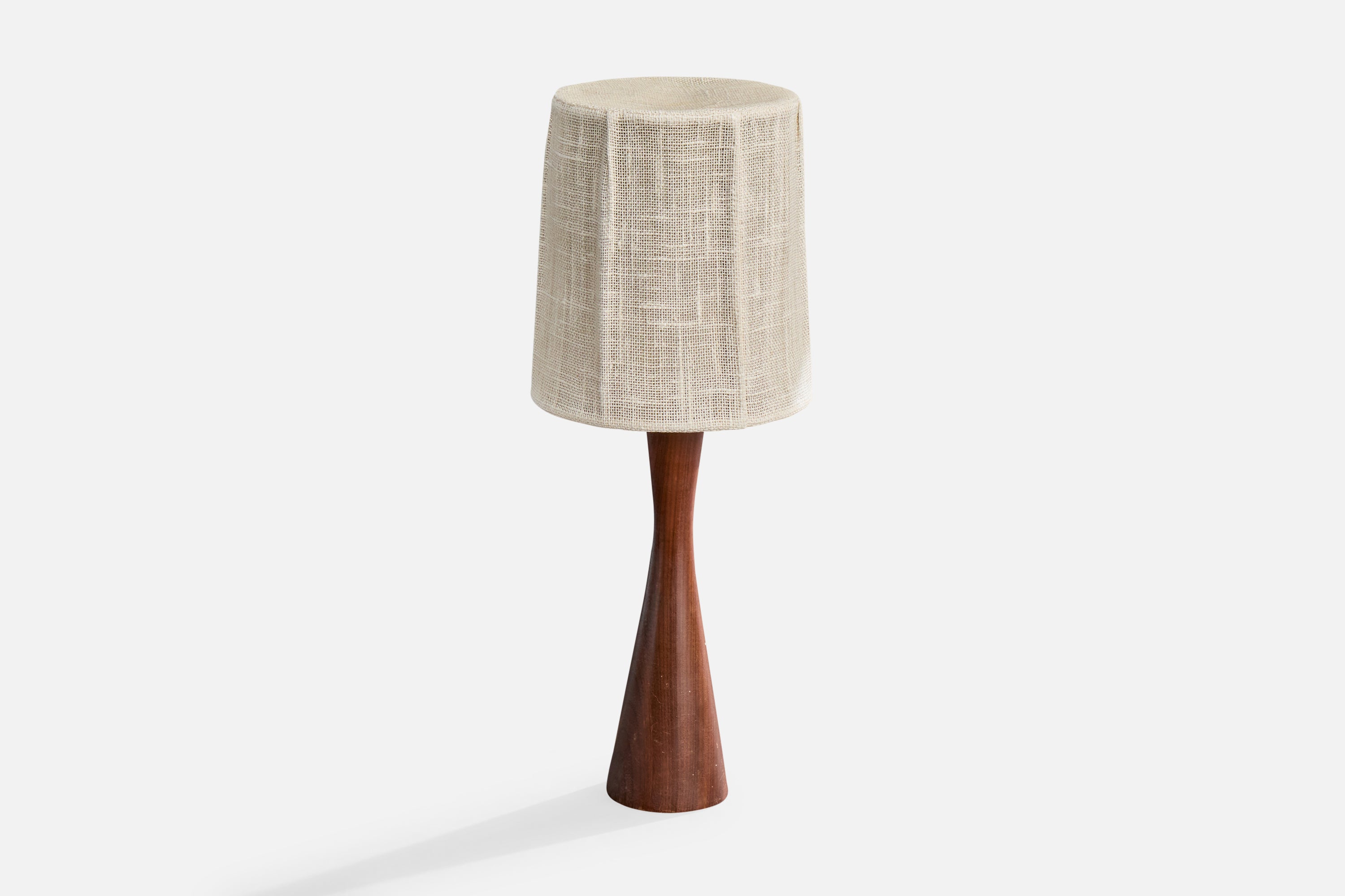 Swedish Designer, Table Lamp, Teak, Fabric, Sweden, 1950s
