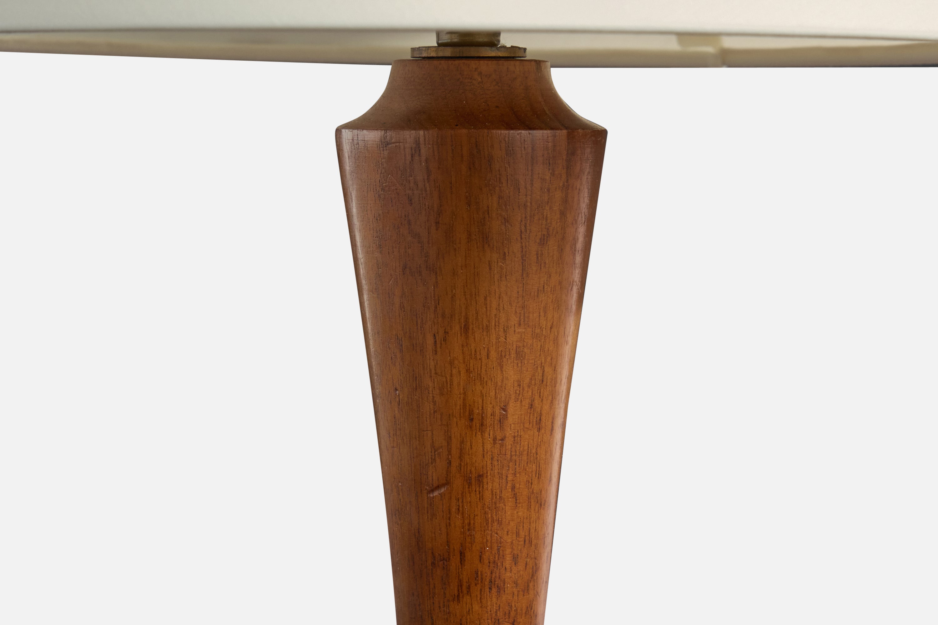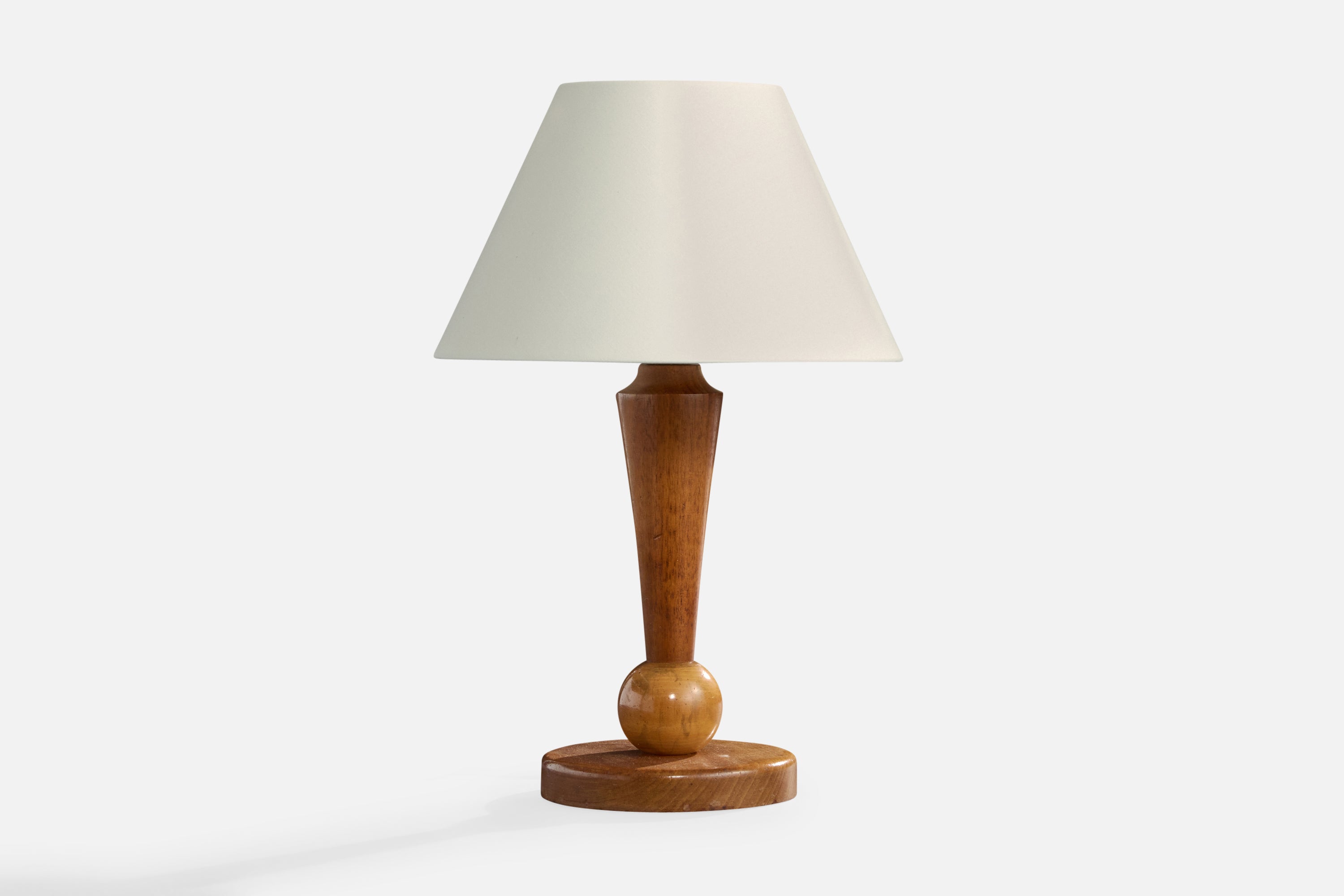 French Designer, Table Lamp, Wood, Fabric, France, 1950s