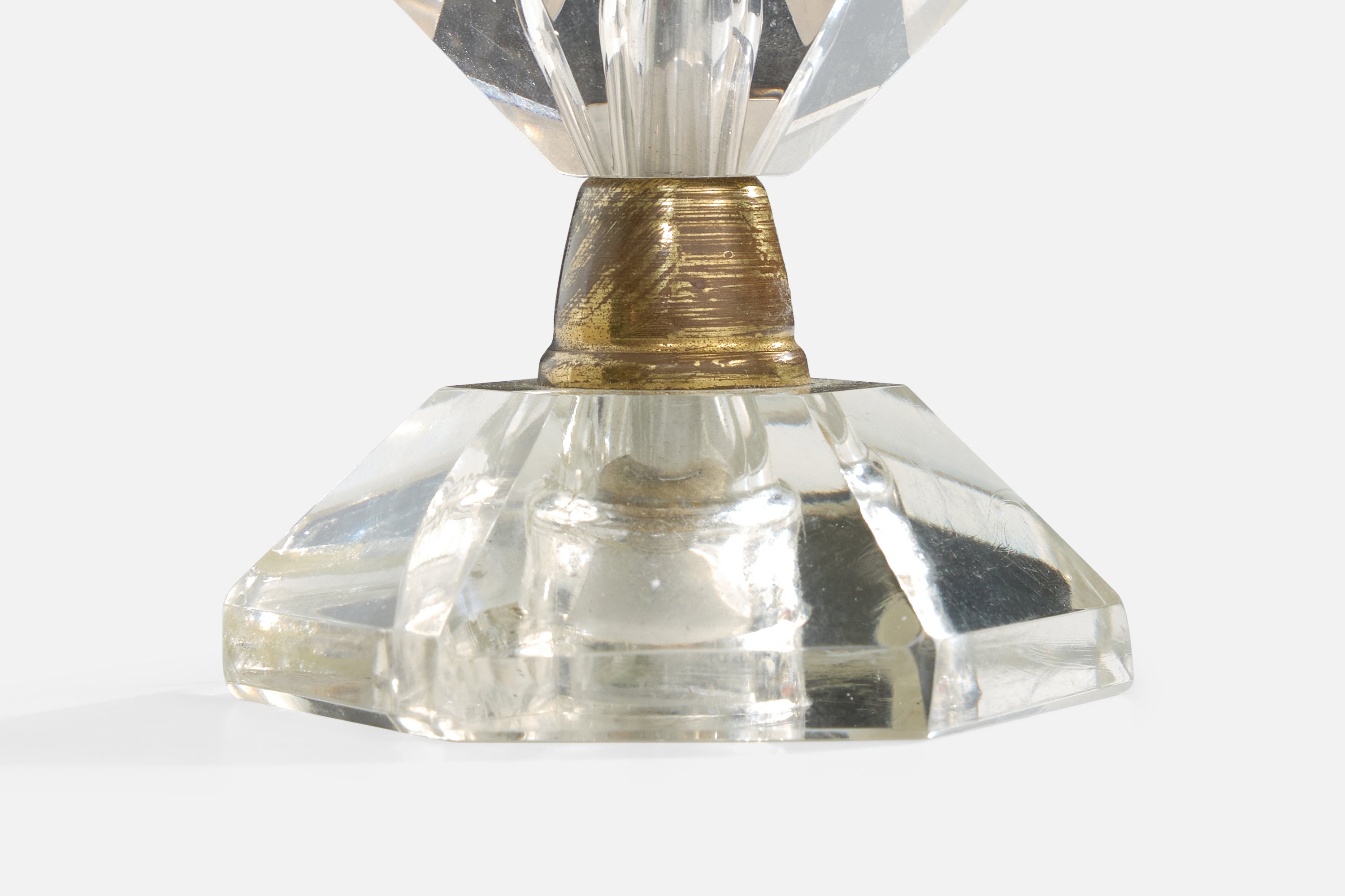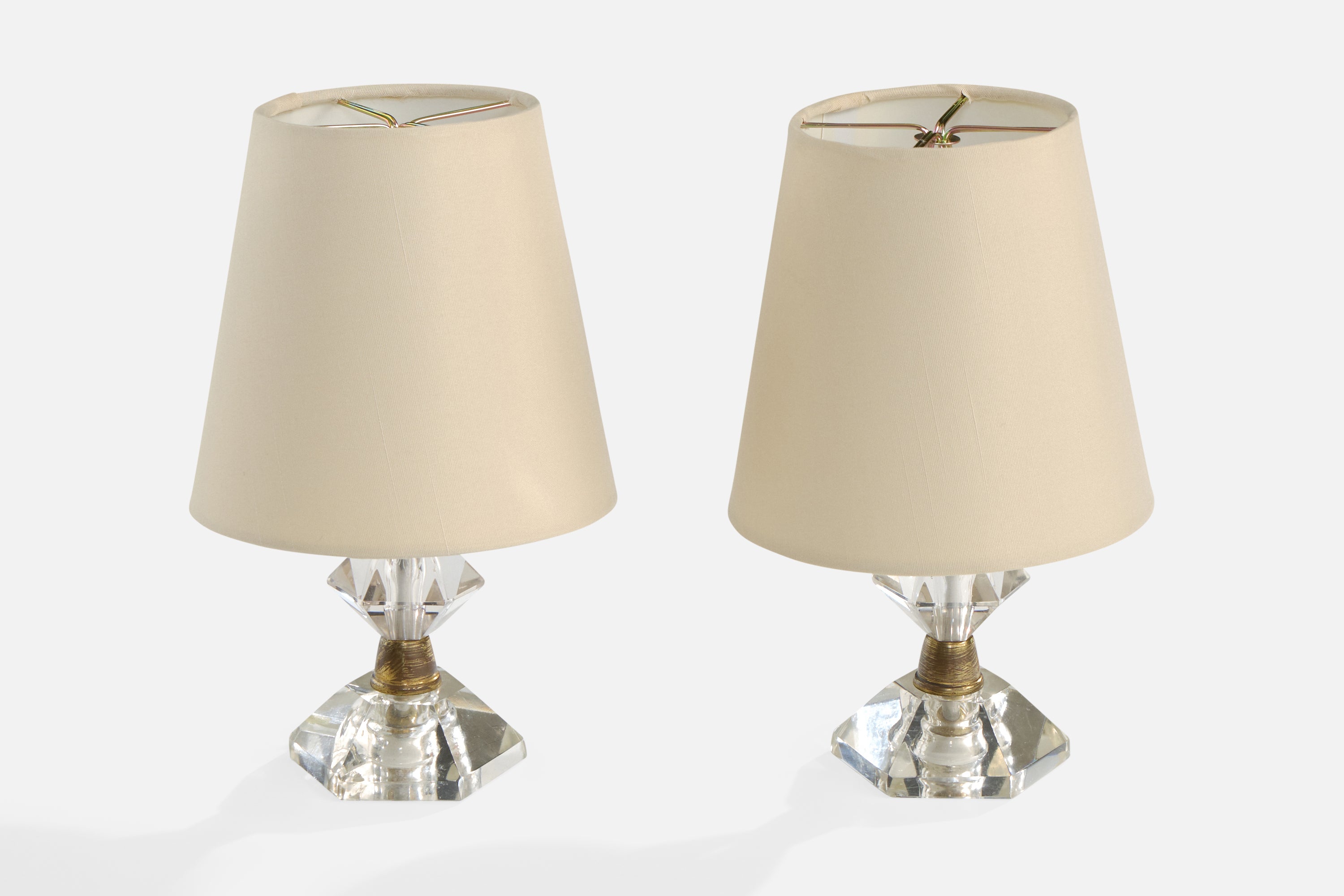 French Designer, Table Lamps, Acrylic, Brass, Fabric, France, 1950s