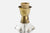 A pair of brass, acrylic and cream-white fabric table lamps designed and produced in France, c, 1950s.
