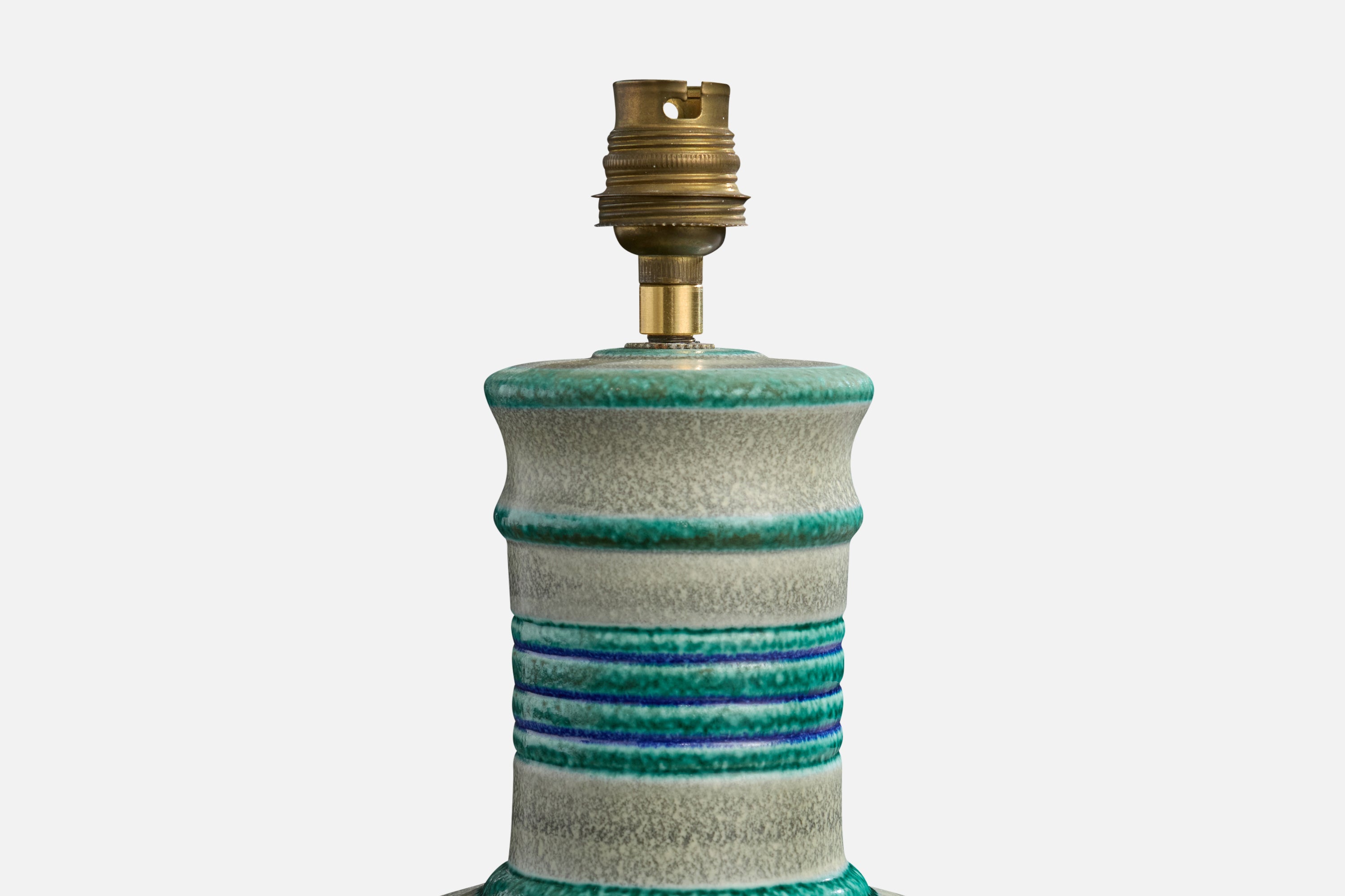 A blue and grey-glazed ceramic table lamp designed and produced in France, c. 1950s.