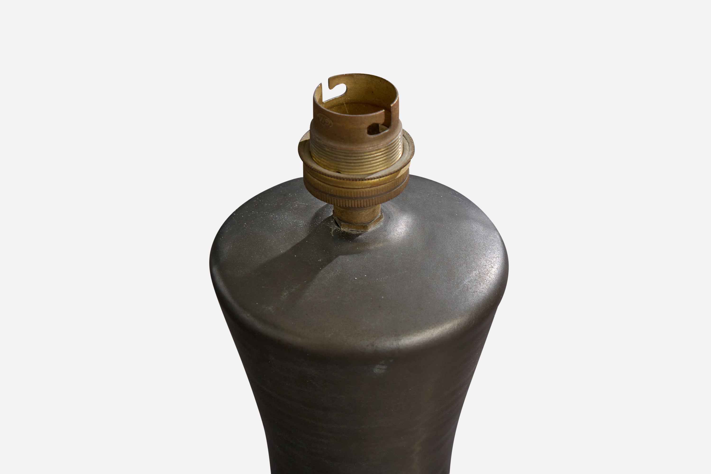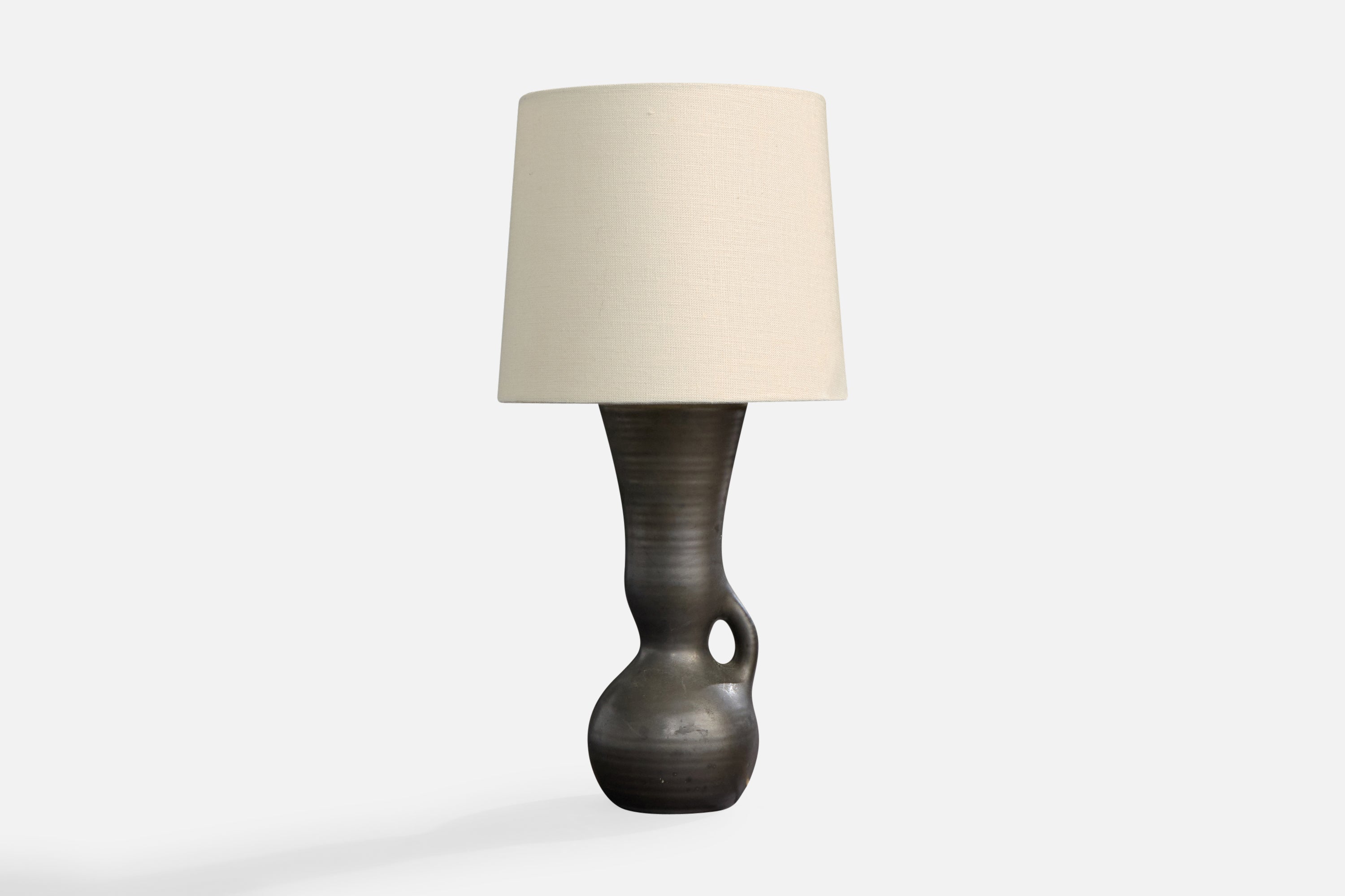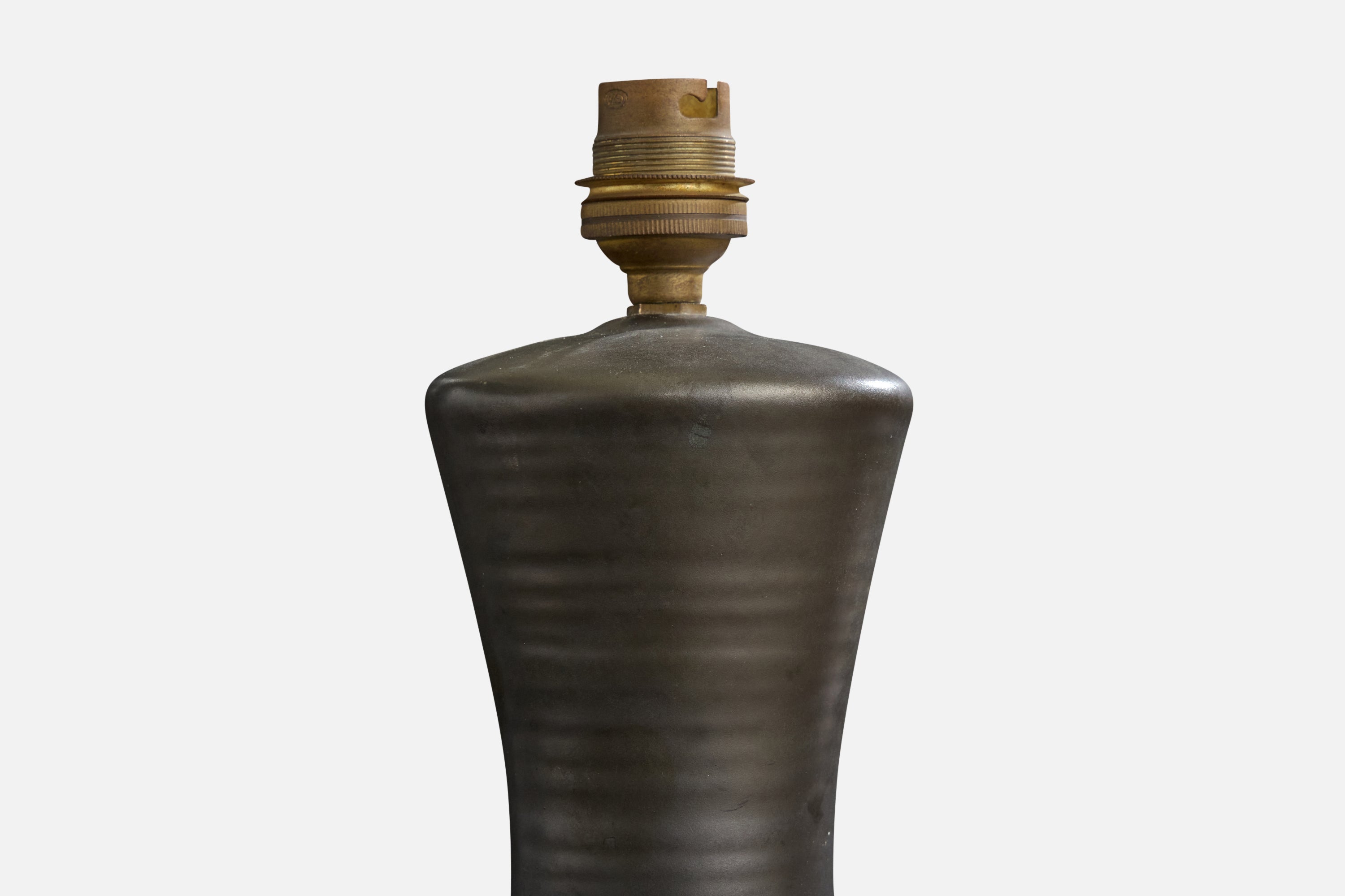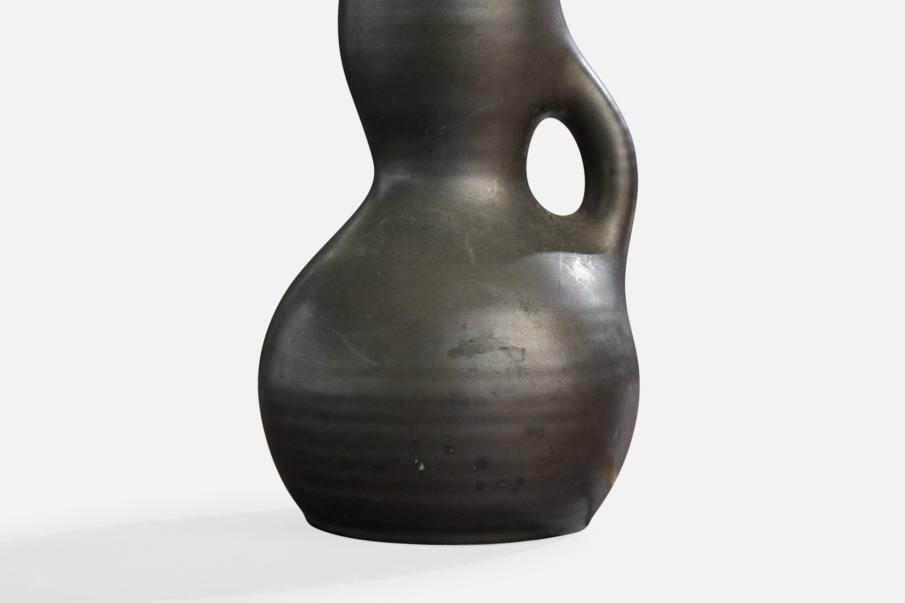 A black-glazed ceramic table lamp designed and produced in France, c. 1950s.