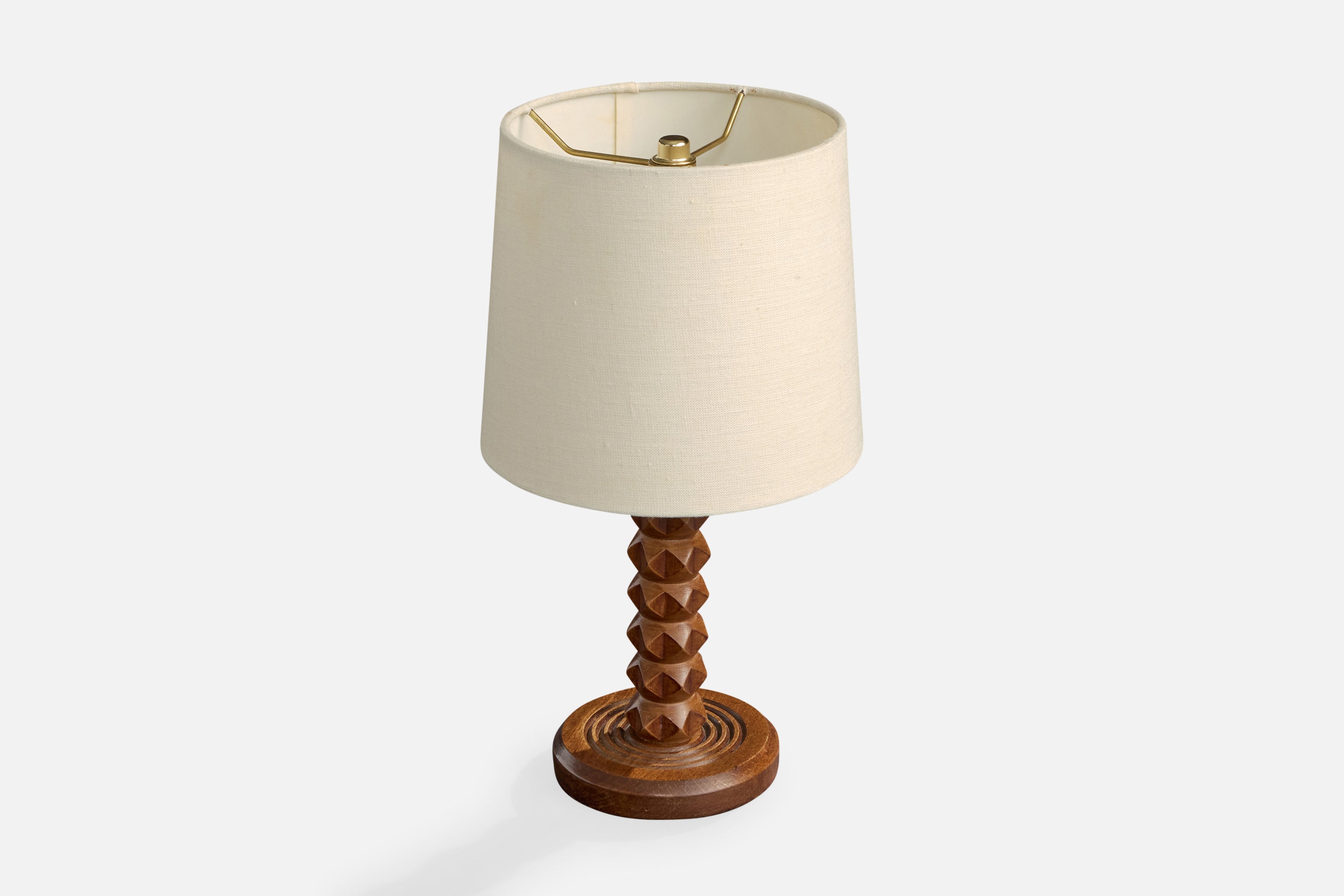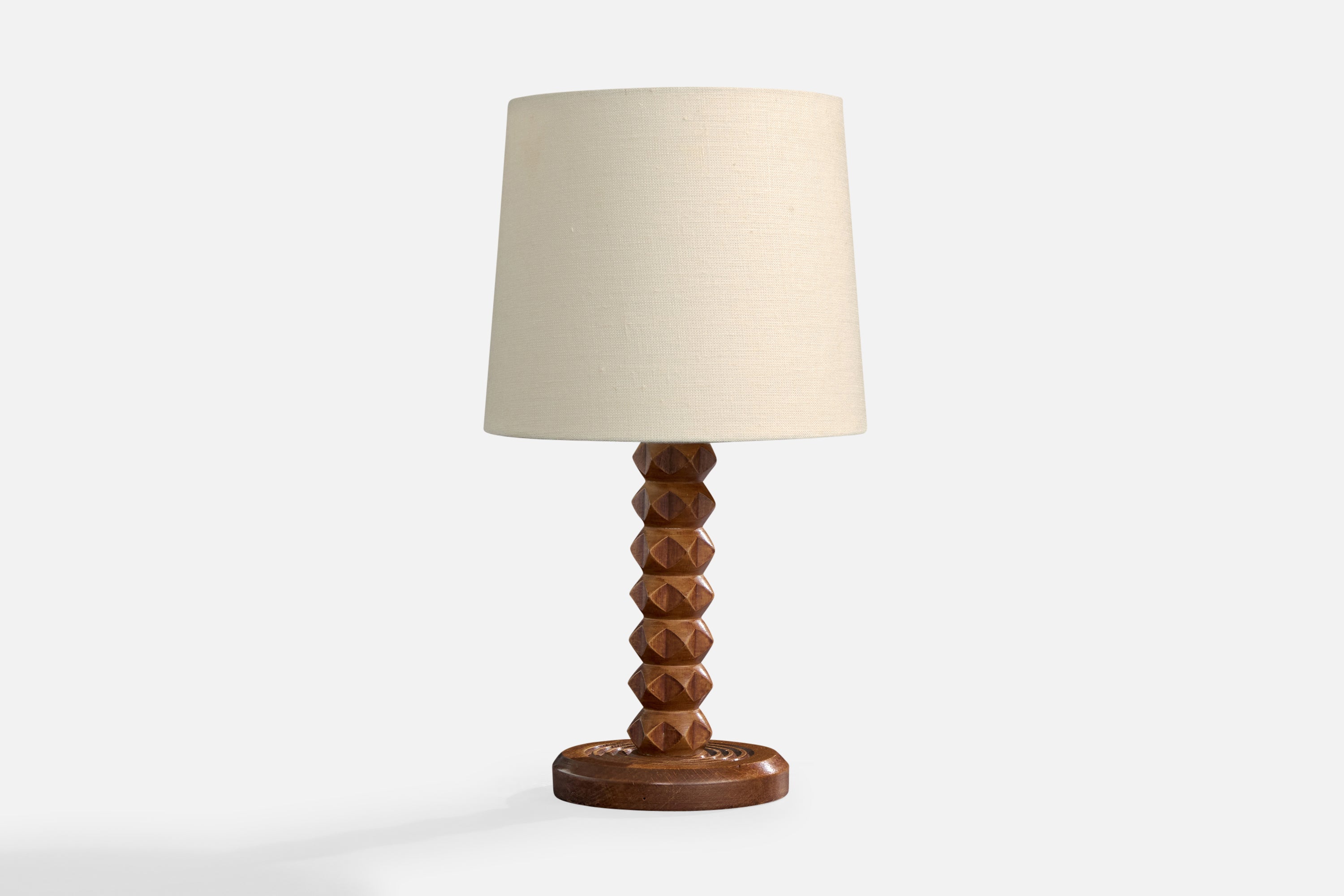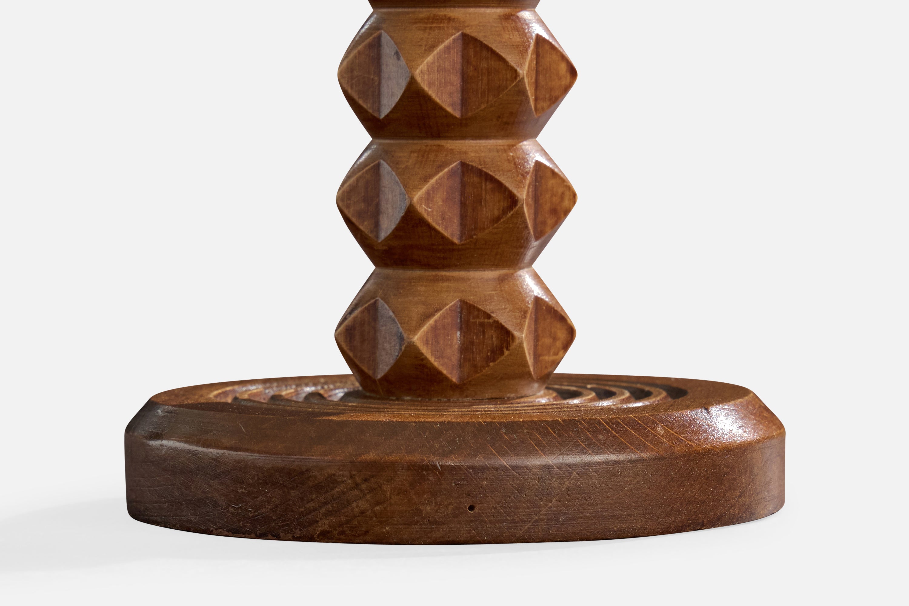 A wood table lamp designed and produced in France, c. 1950s.