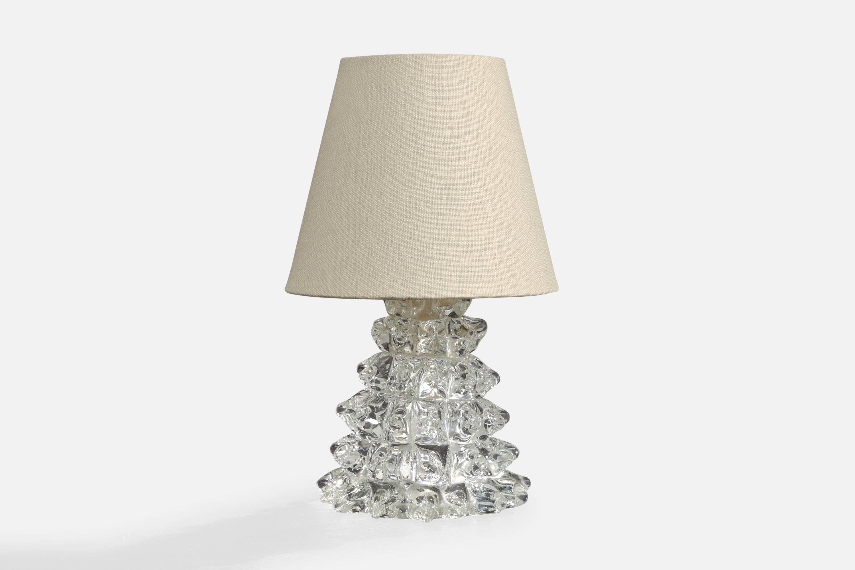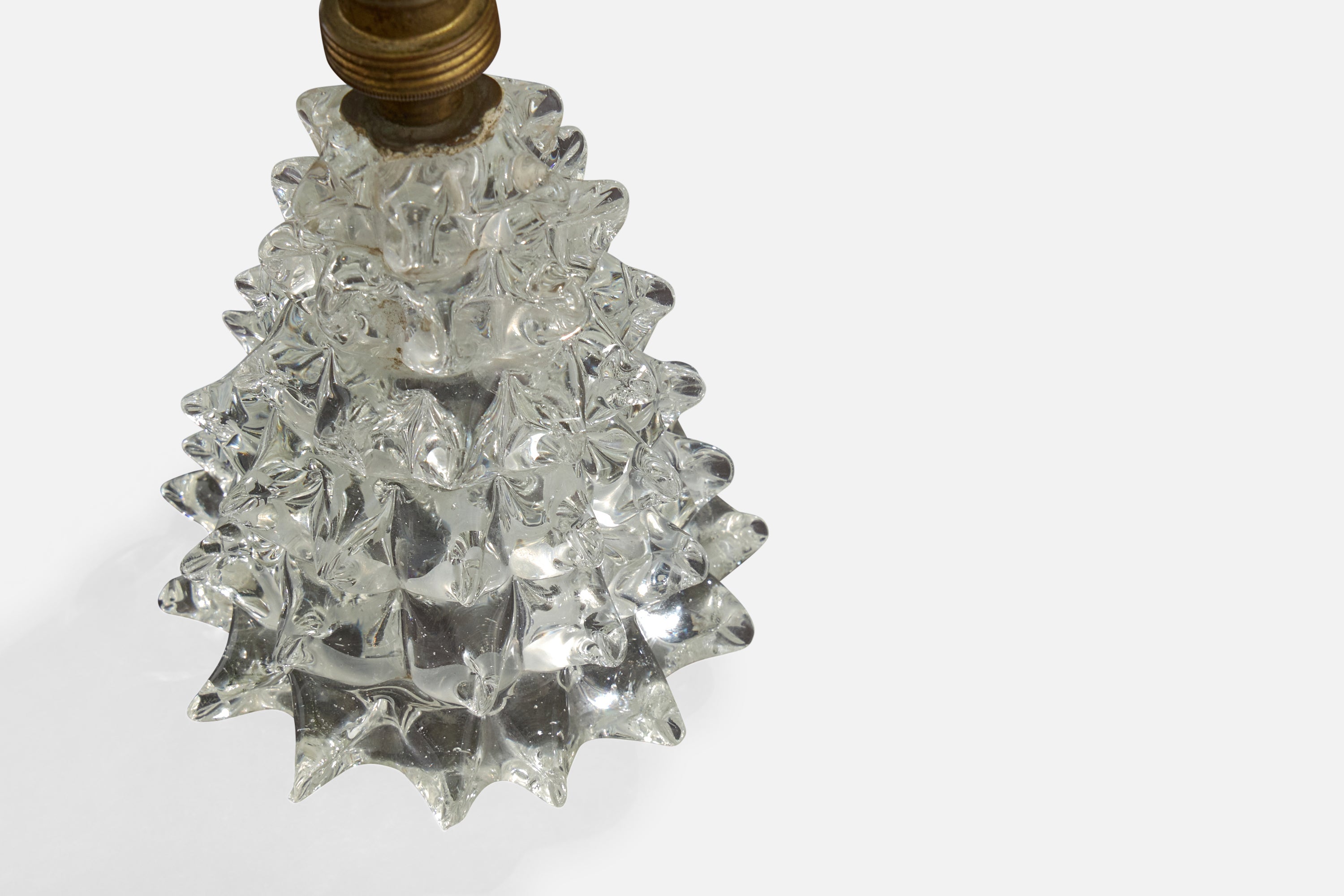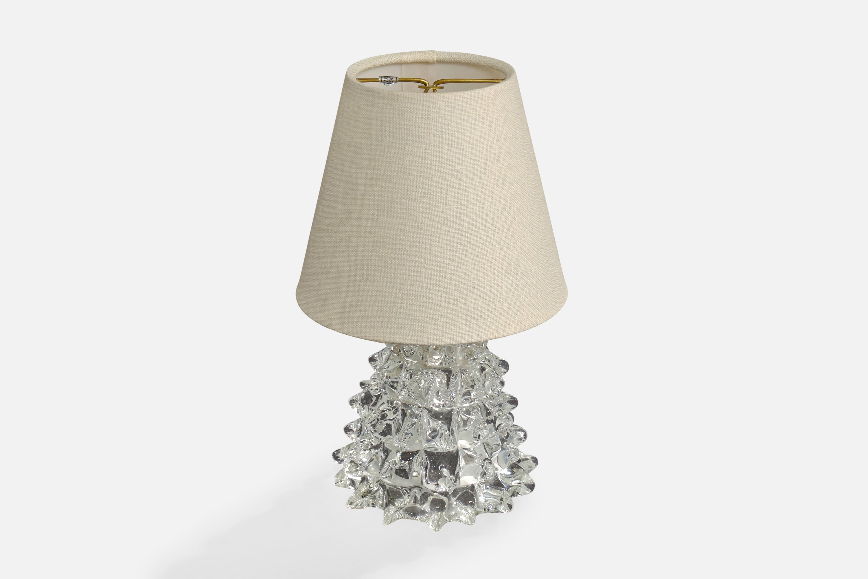 A Murano-glass, brass and off-white fabric table lamp designed and produced in Italy, c. 1940s.