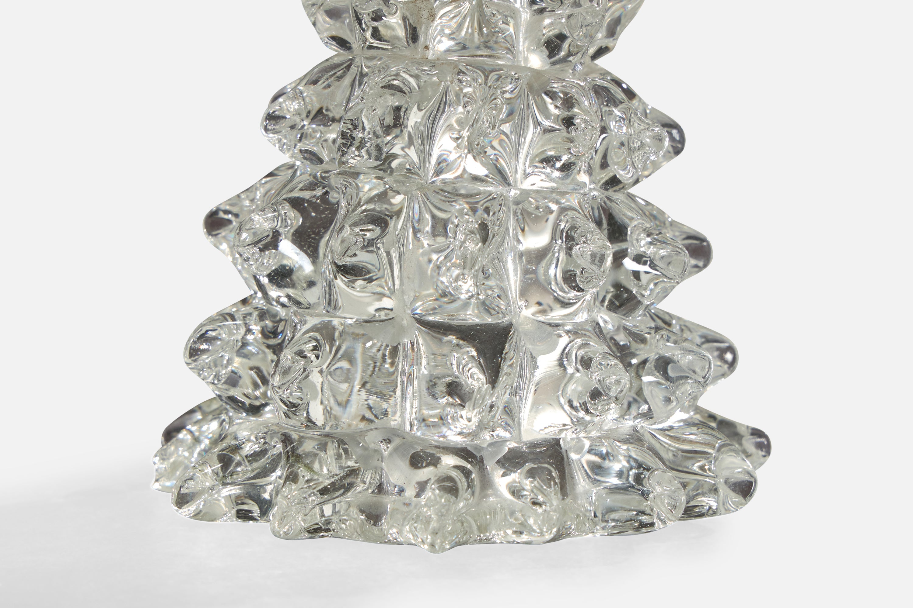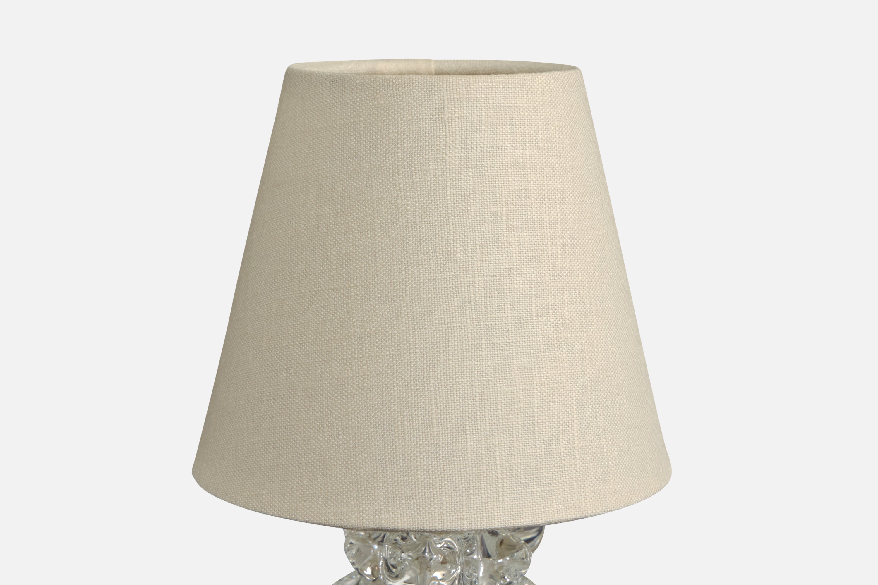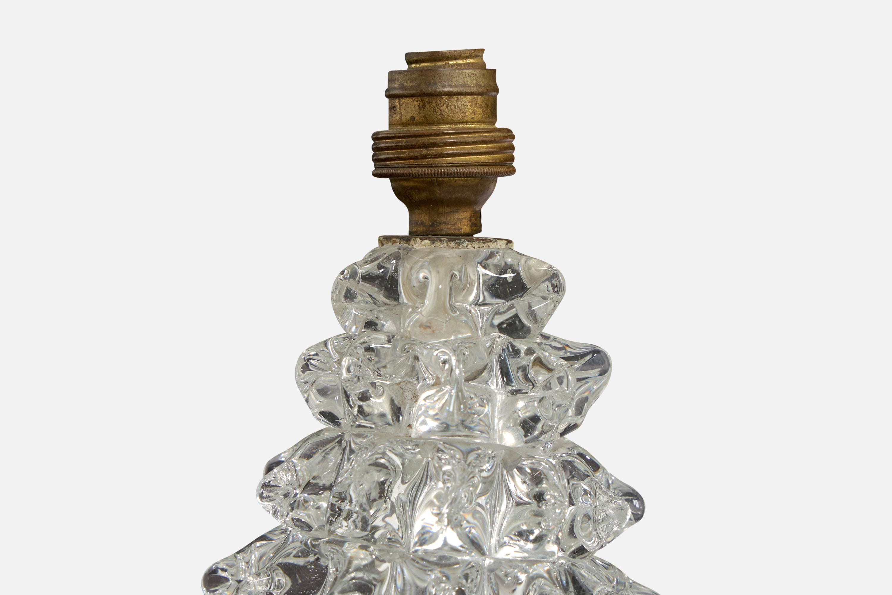 A Murano-glass, brass and off-white fabric table lamp designed and produced in Italy, c. 1940s.