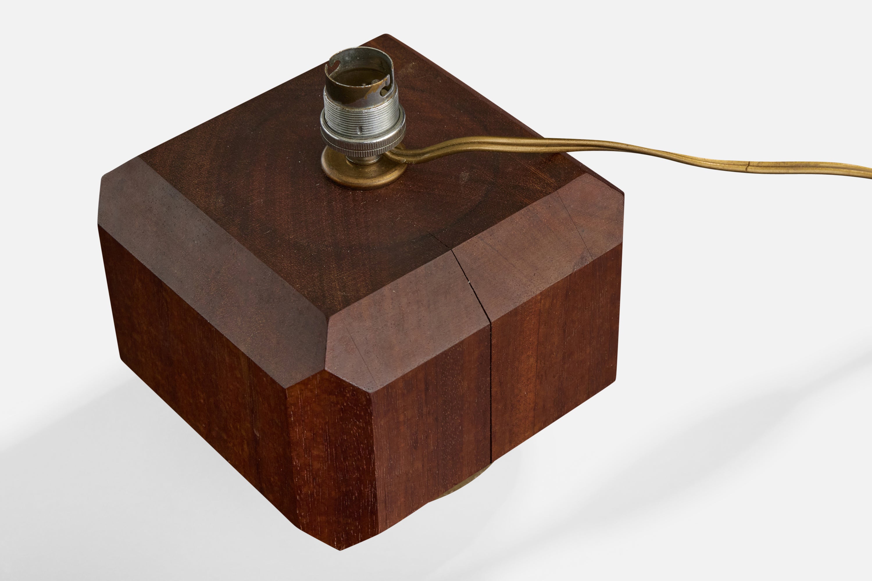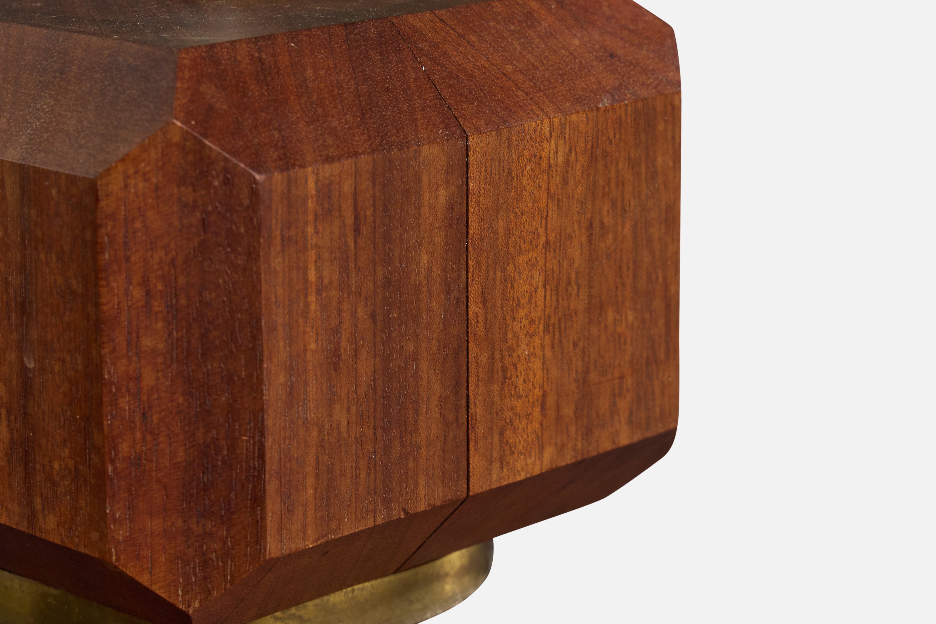 French Designer, Table Lamp, Wood, Brass, France, 1950s