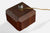 A dark-stained wood and brass table lamp designed and produced in France, c. 1950s.