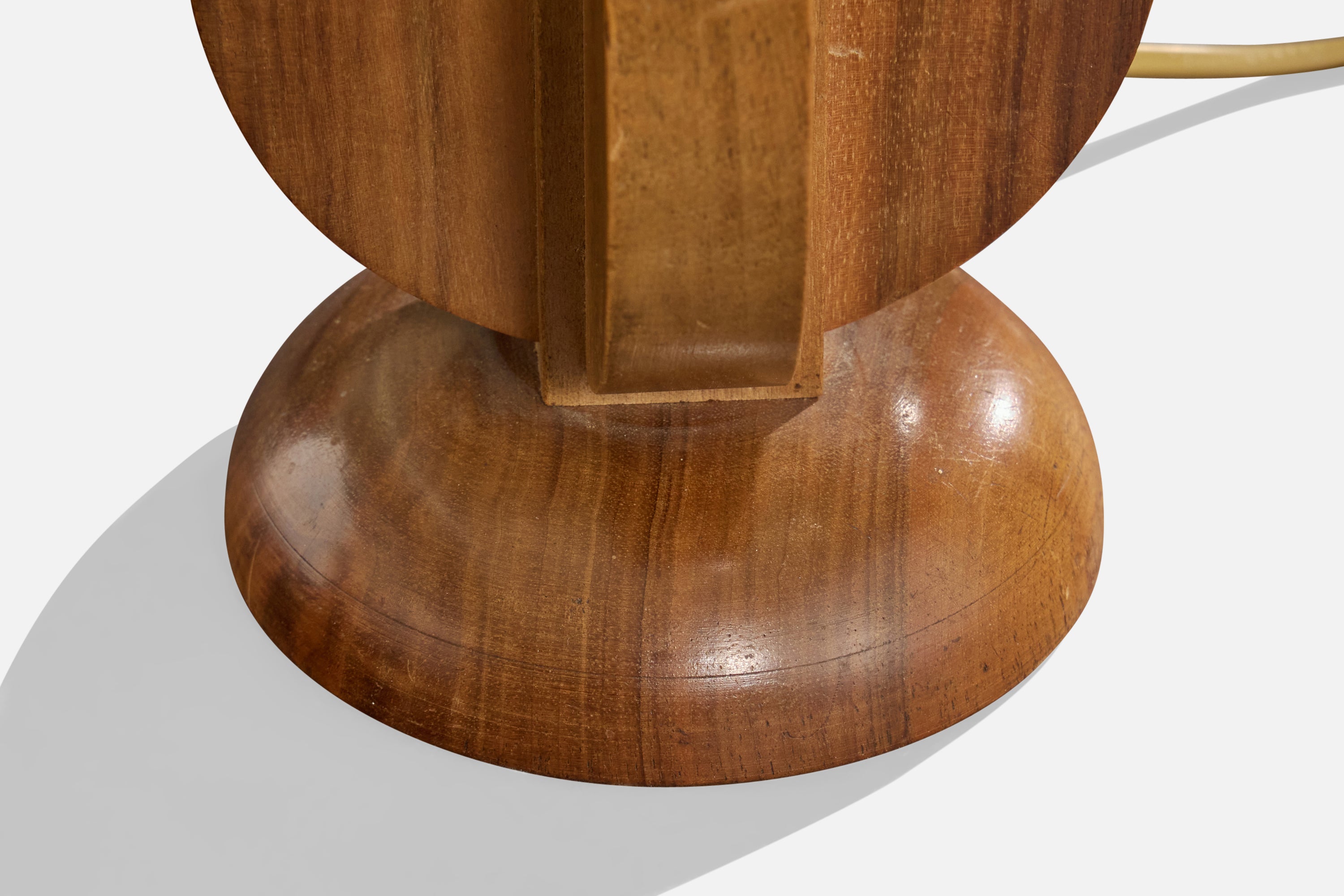 French Designer, Table Lamps, Wood, Brass, France, 1950s