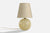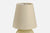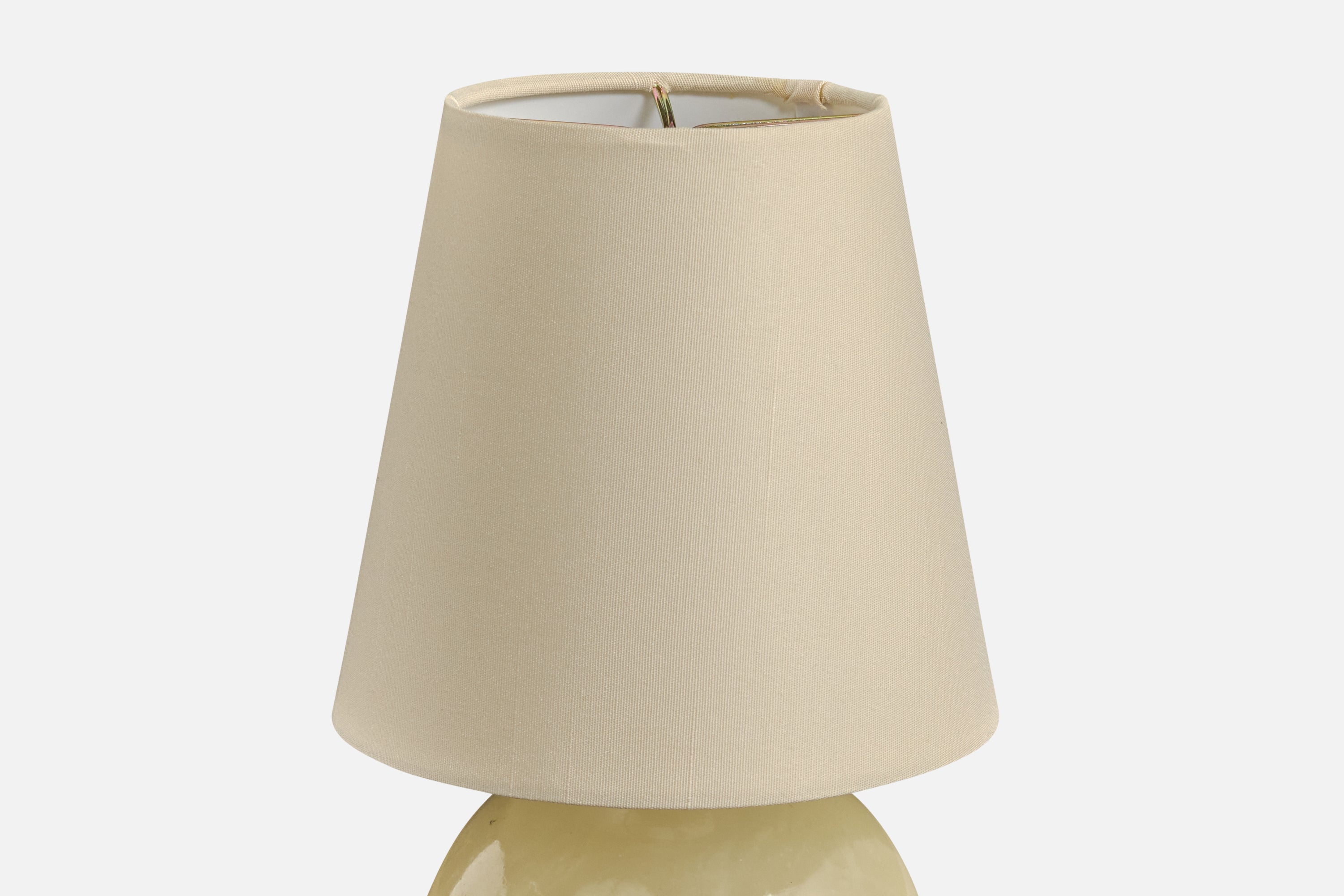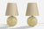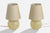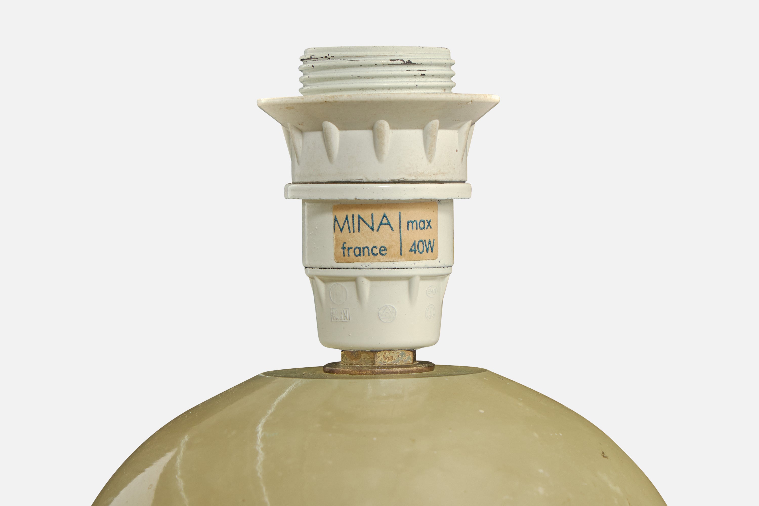 A pair of alabaster and off-white fabric table lamps produced by Mina, France, c. 1970s.