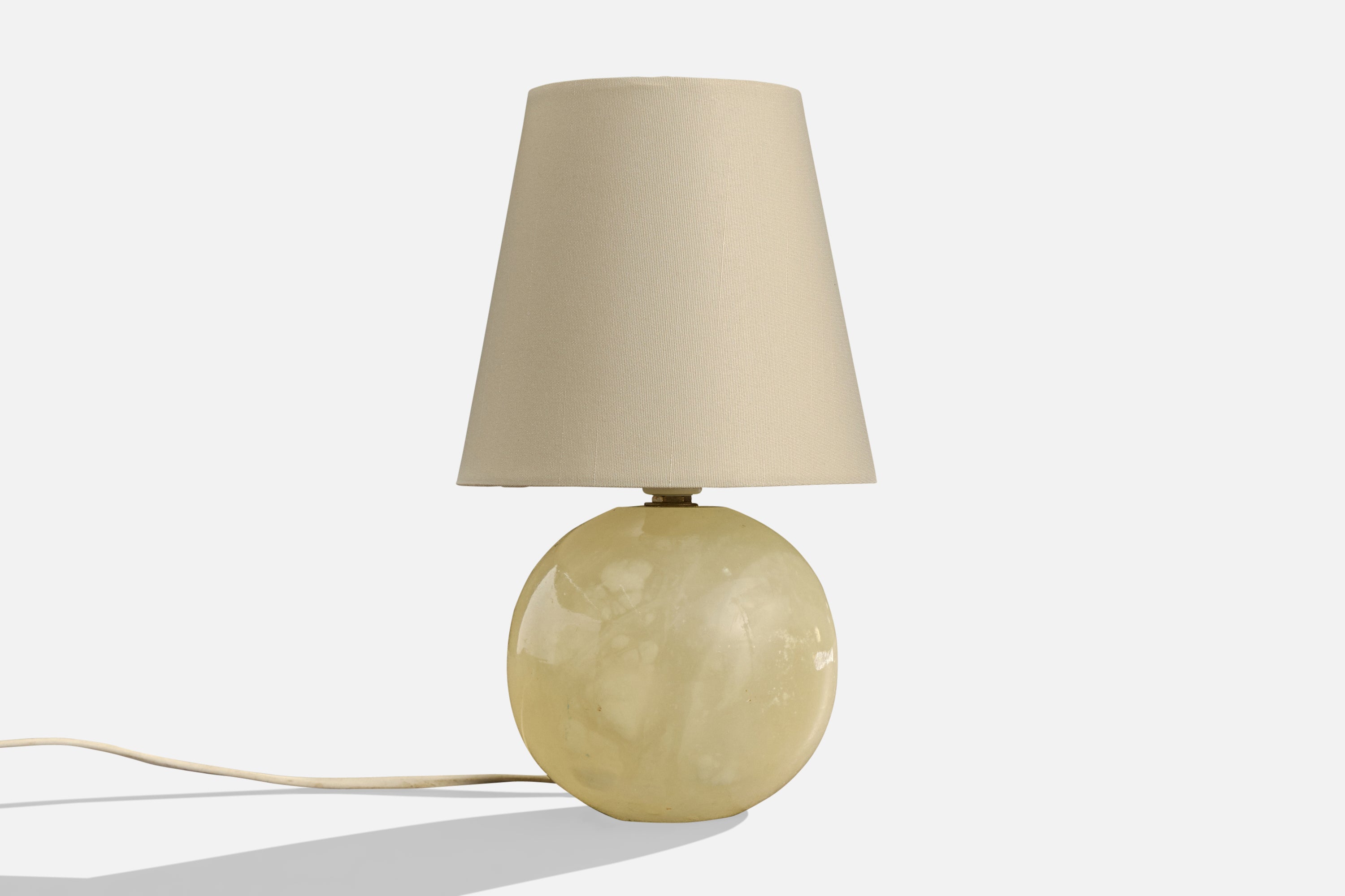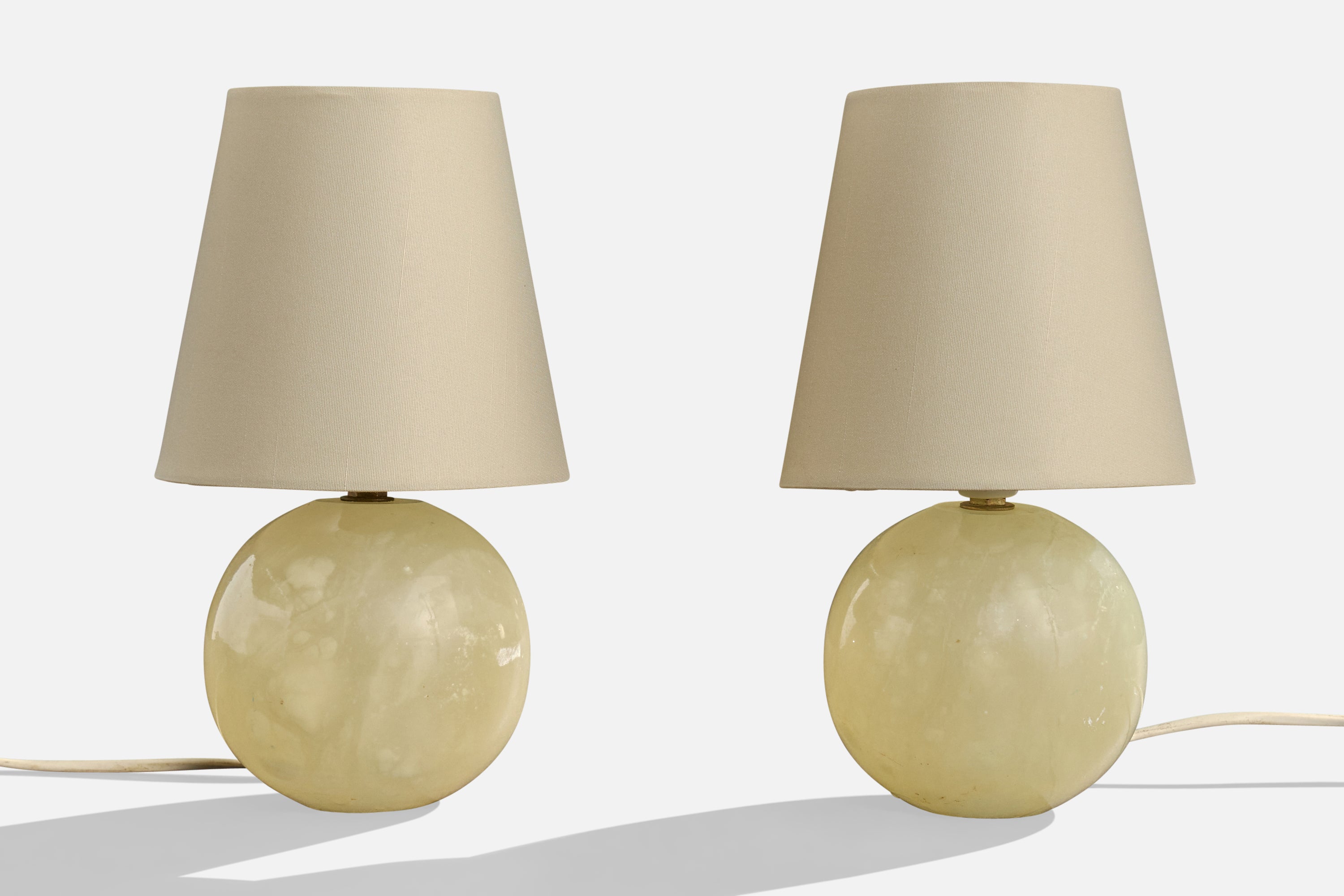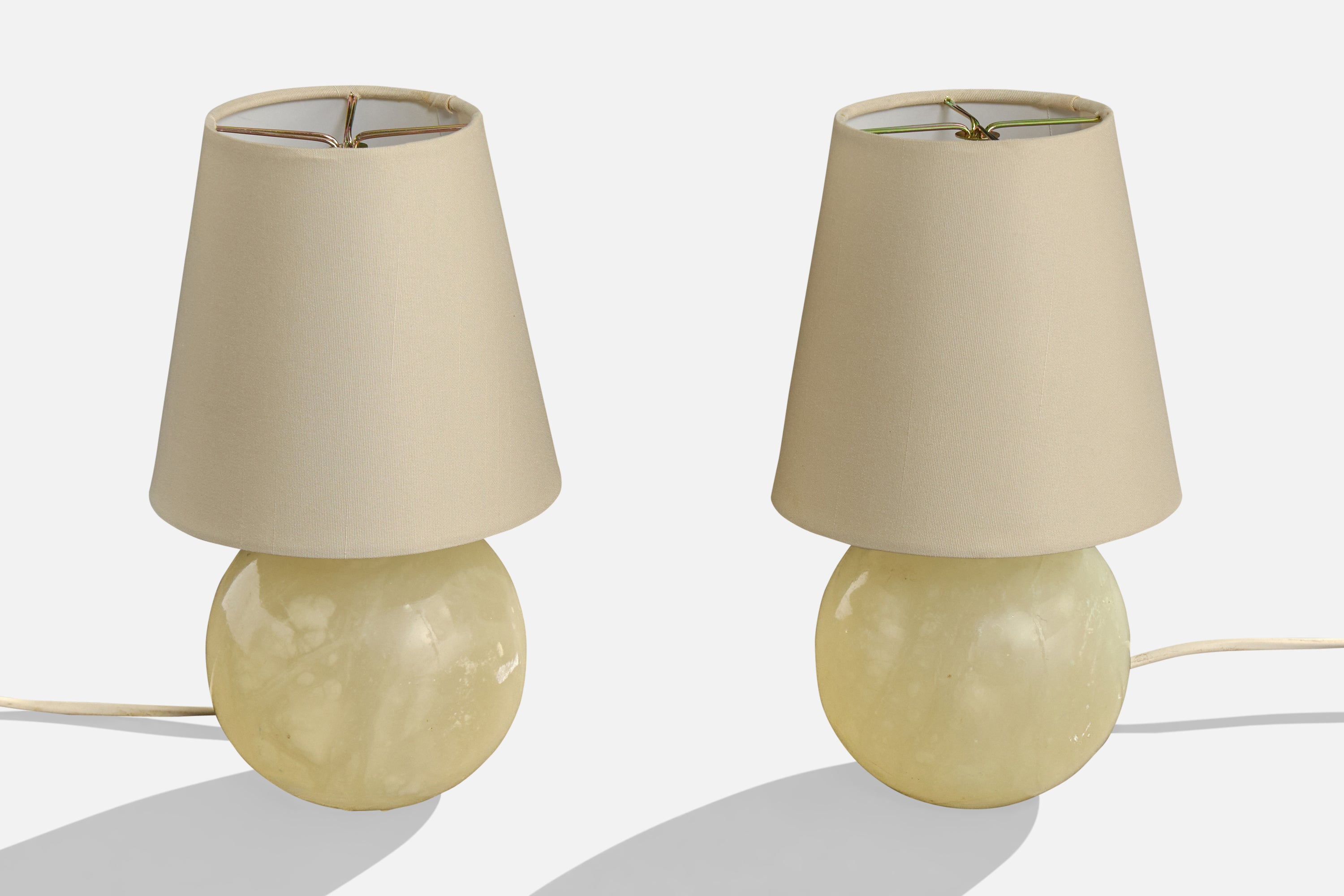 Mina, Table Lamps, Alabaster, Fabric, France, 1970s