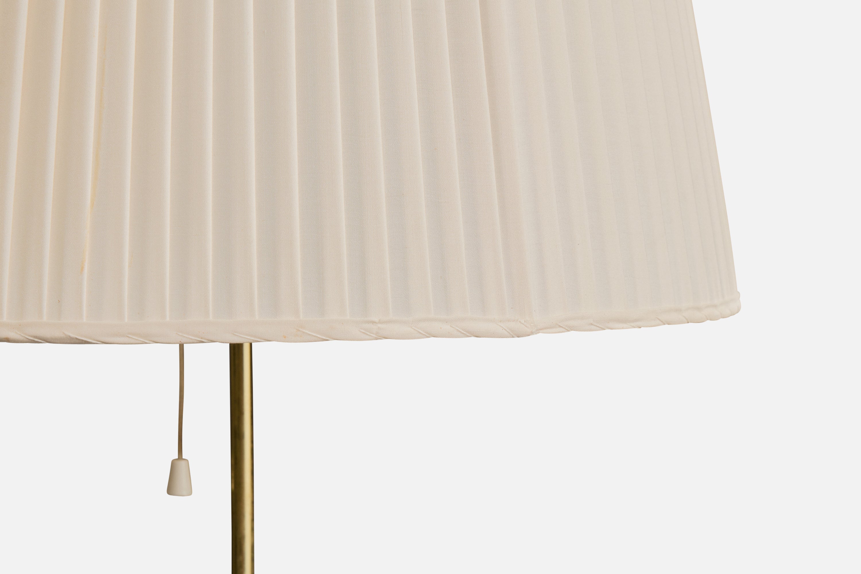 A brass, glass and cream-white fabric floor lamp produced by Falkenbergs Belysning, Sweden, c. 1950s.
