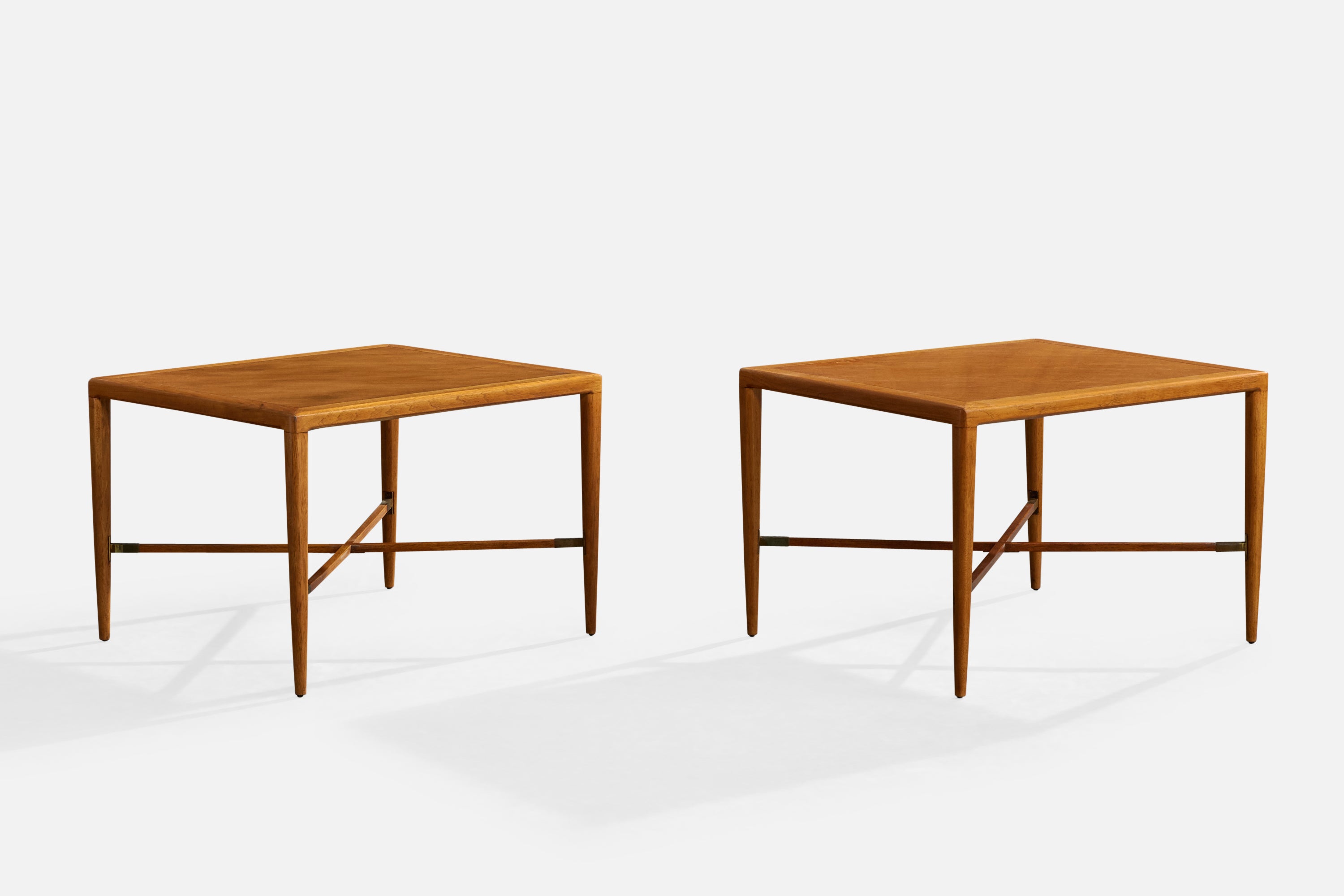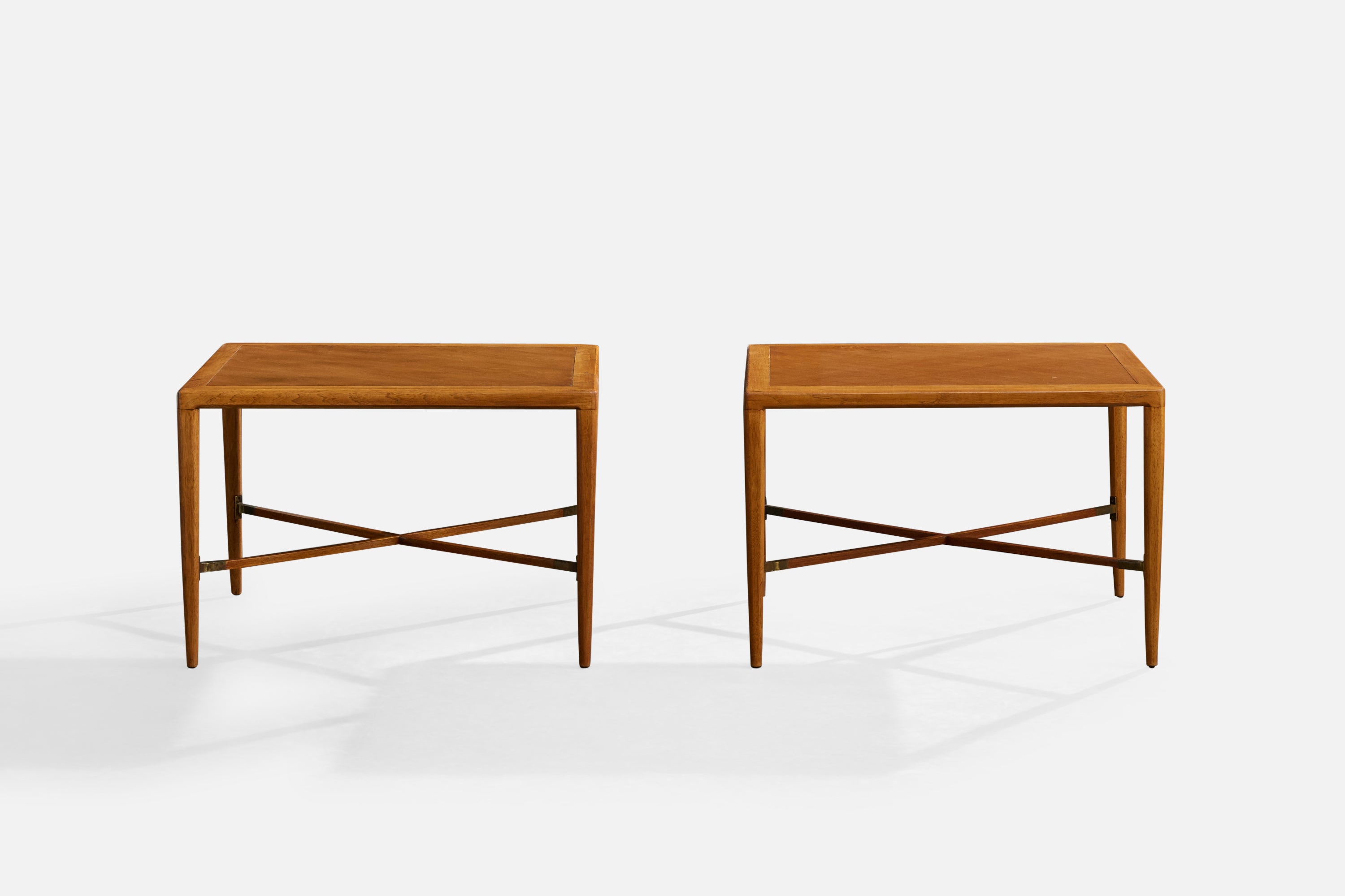 A pair of wood and brass side tables produced by Tomlinson Furniture, USA, c. 1950s.