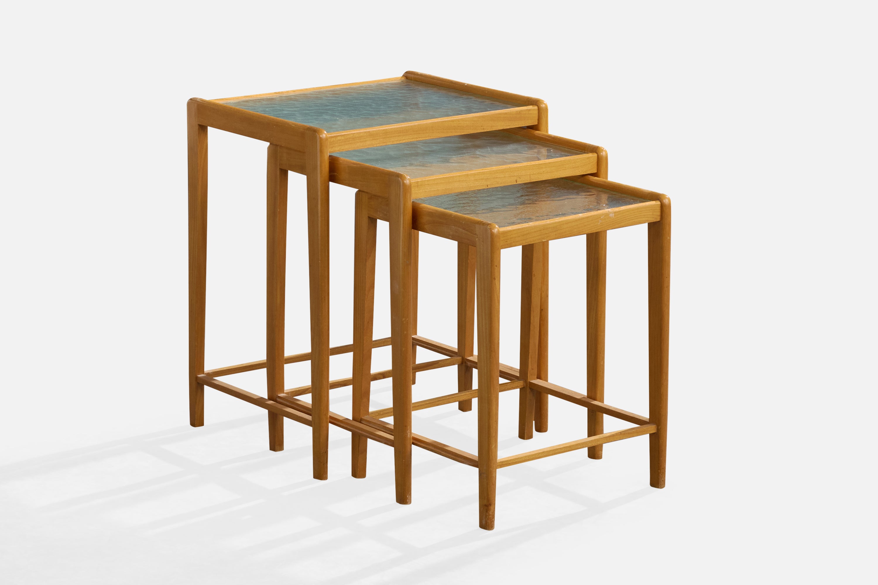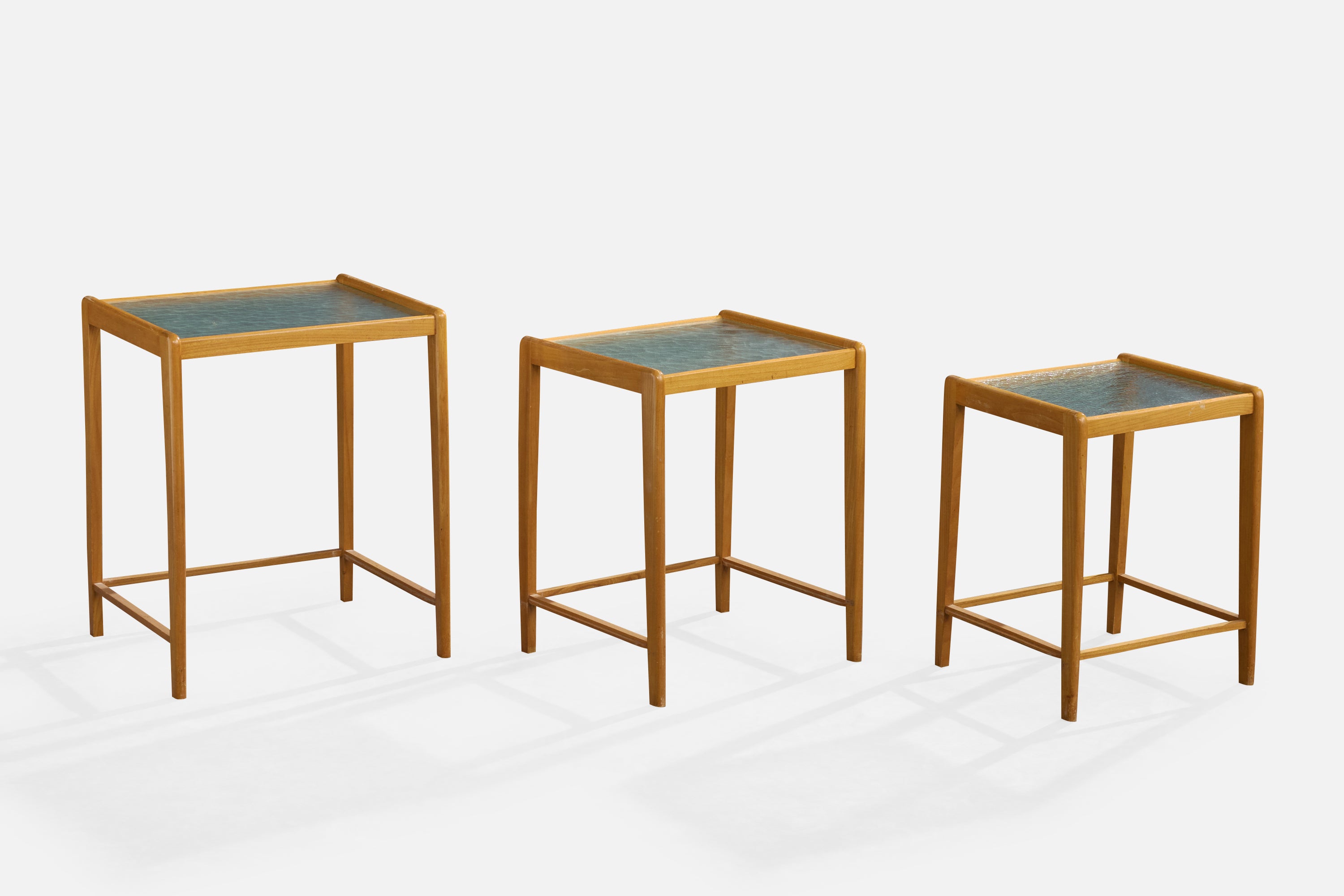 Swedish Designer, Nesting Tables, Oak, Glass, Sweden, 1940s