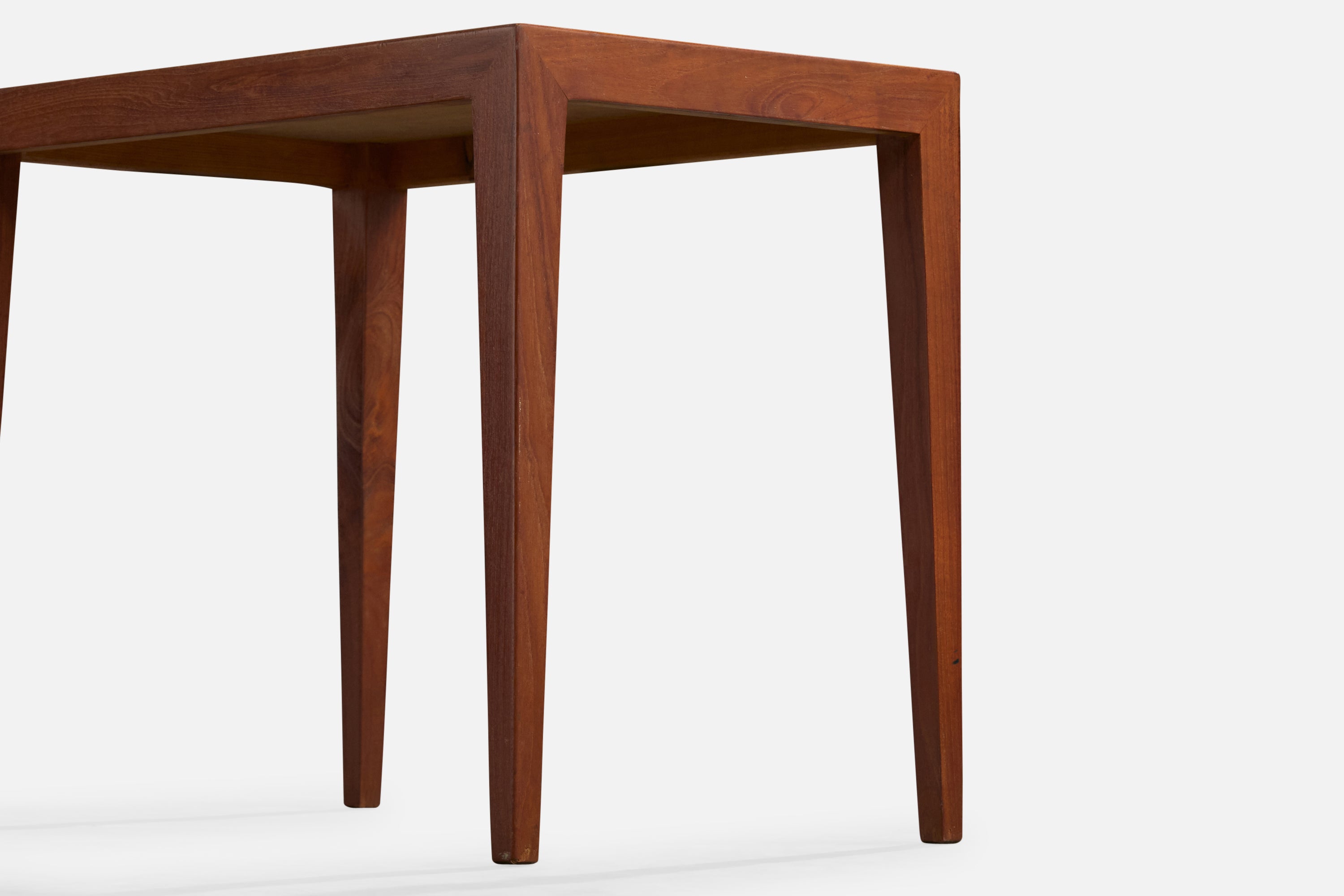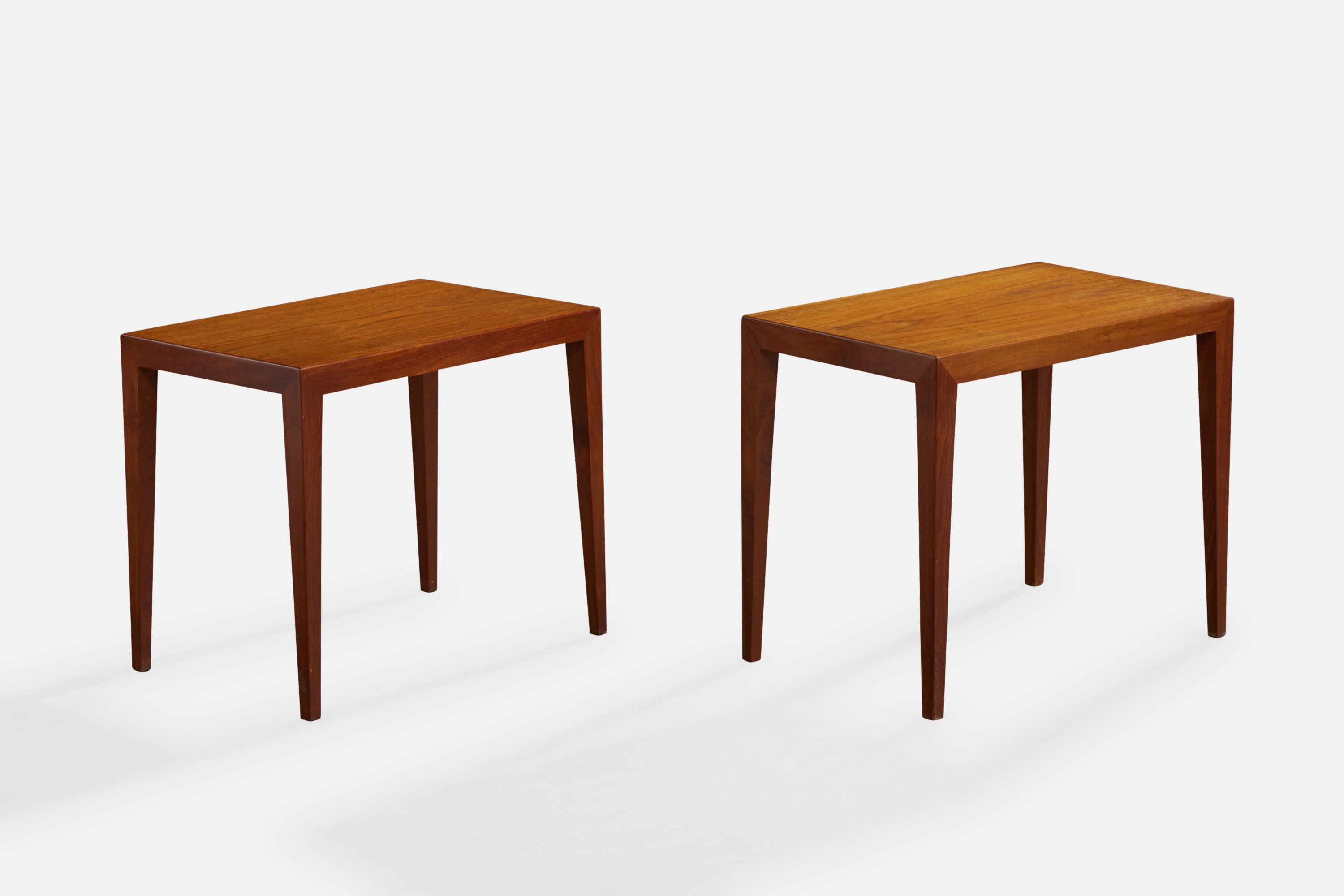 A pair of teak side tables designed by Severin Hansen and produced by Haslev, Denmark, c. 1960s.
