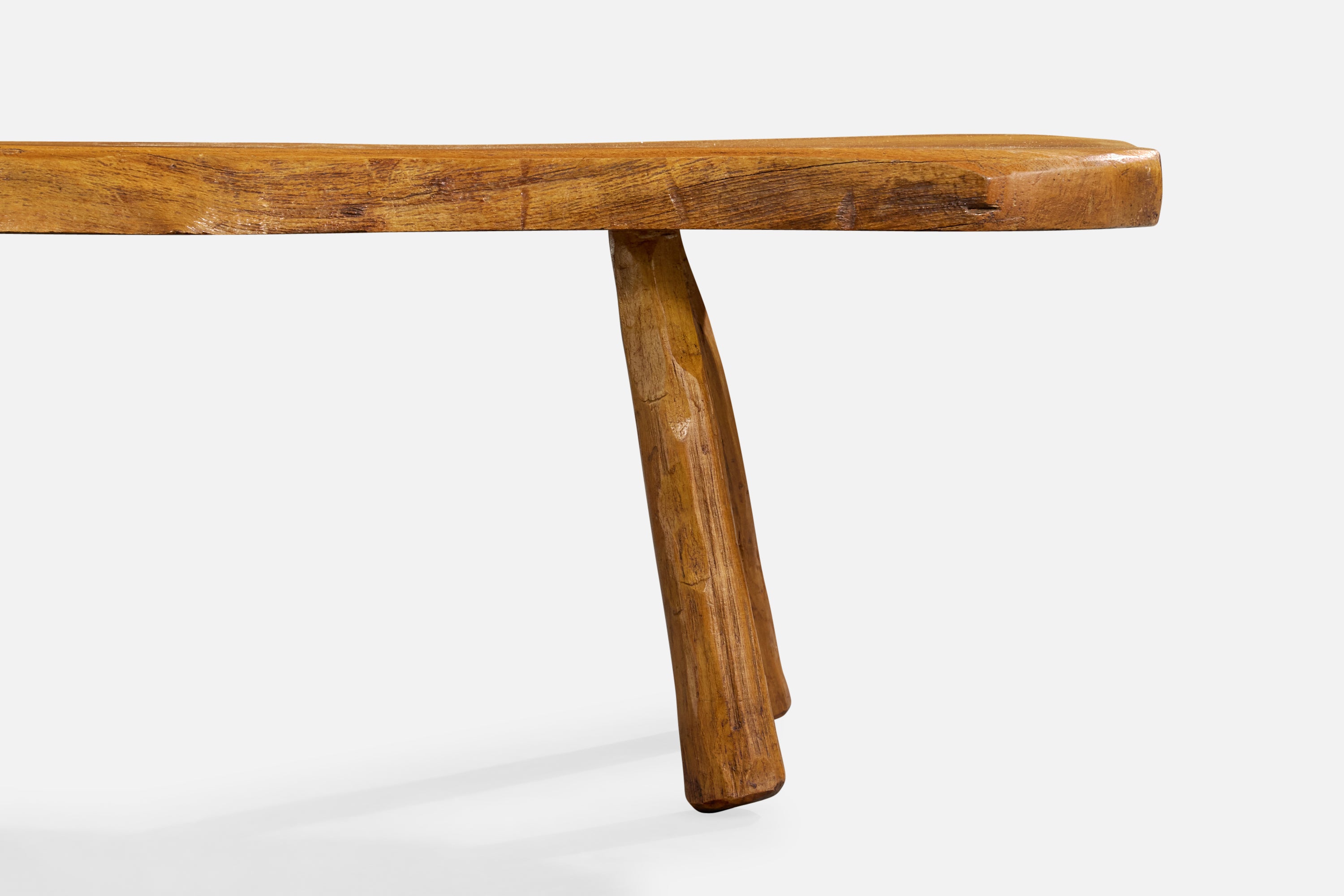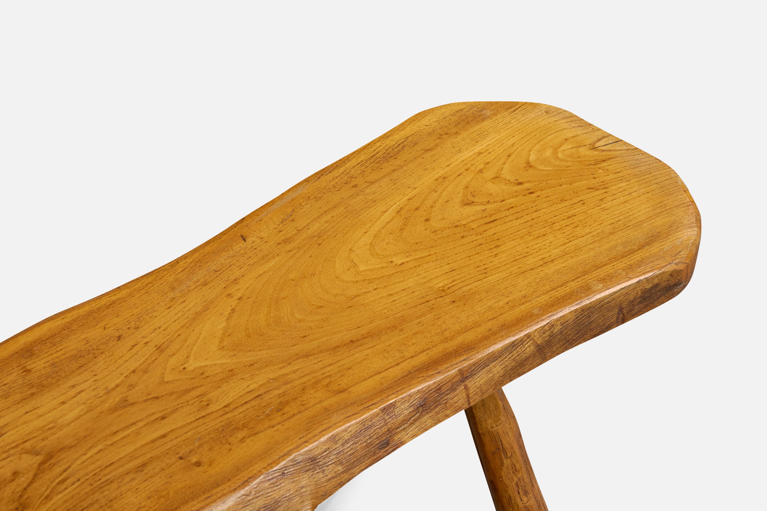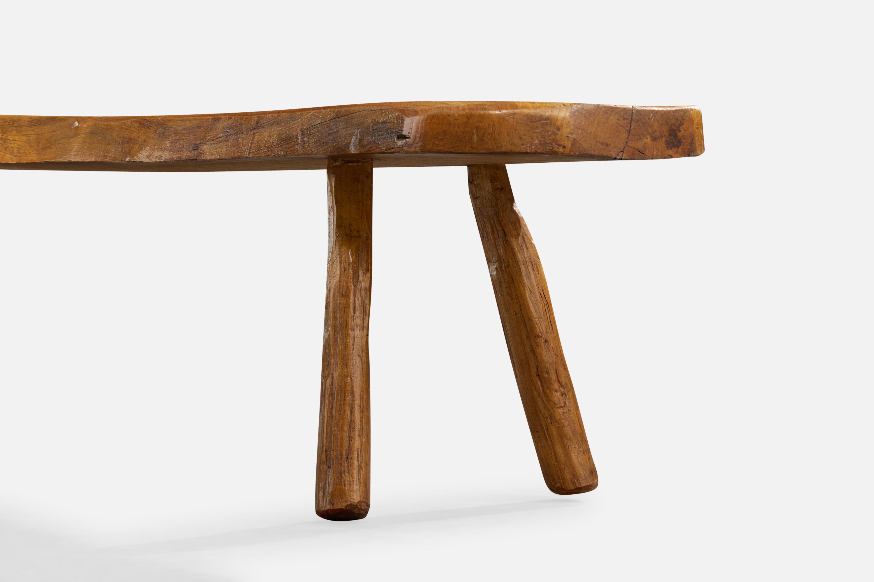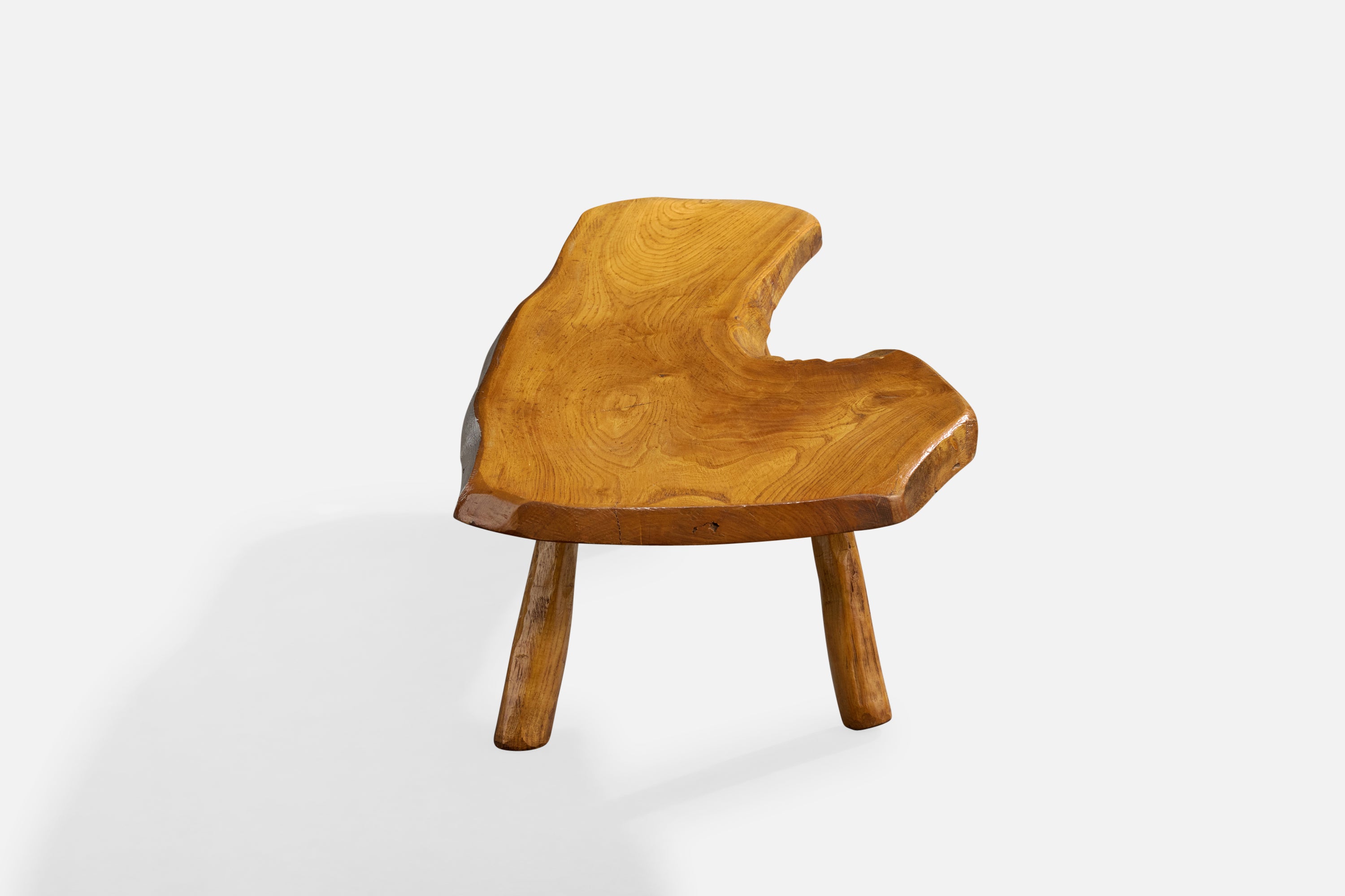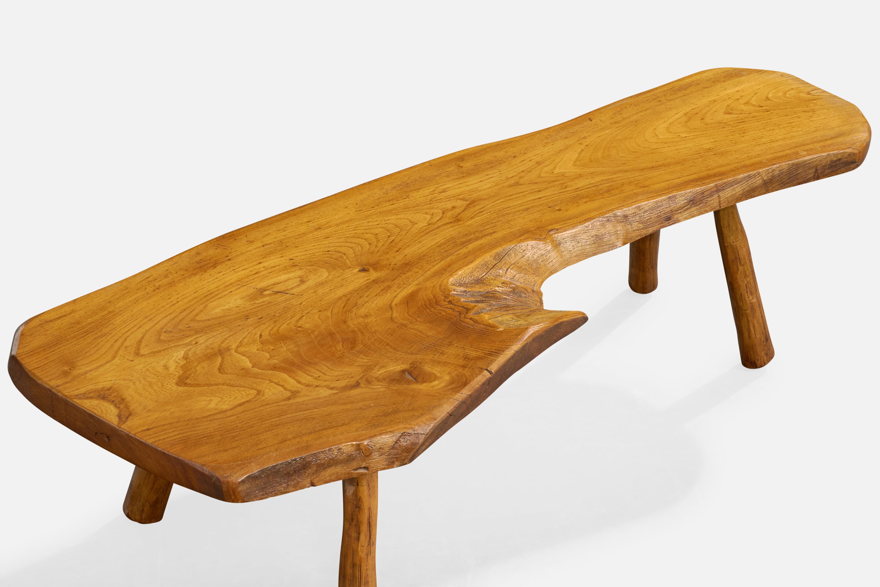 A freeform elm coffee table likely designed and produced in France, c. 1970s.