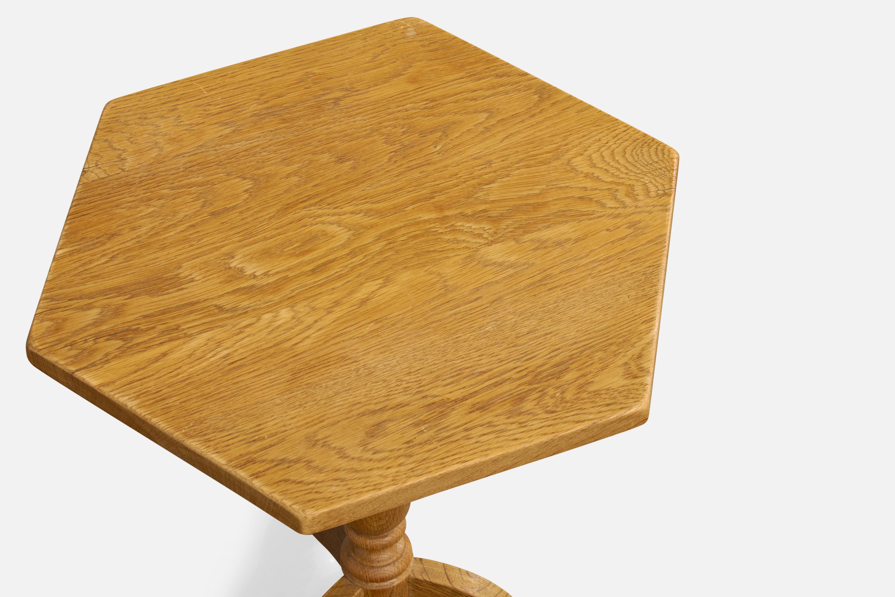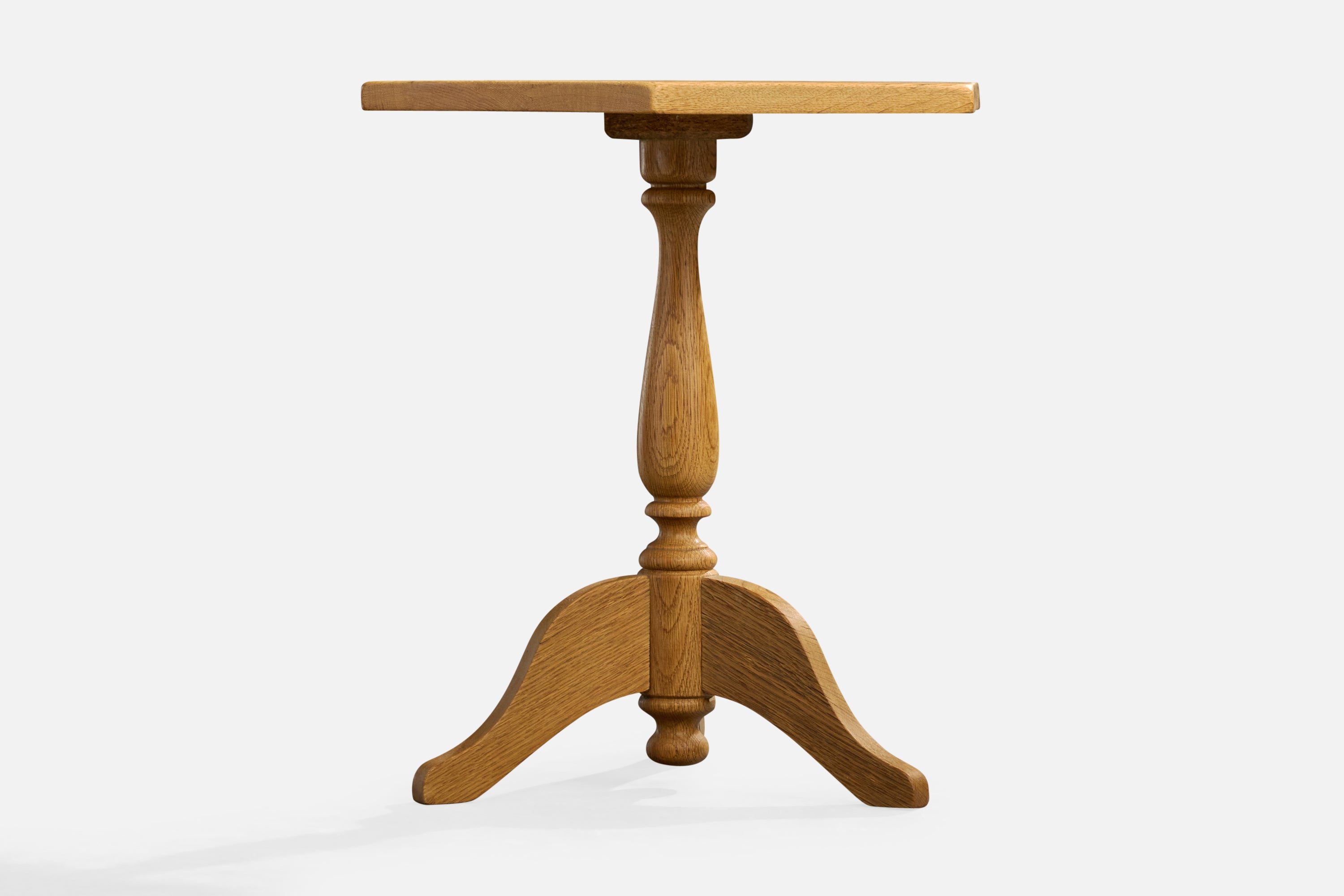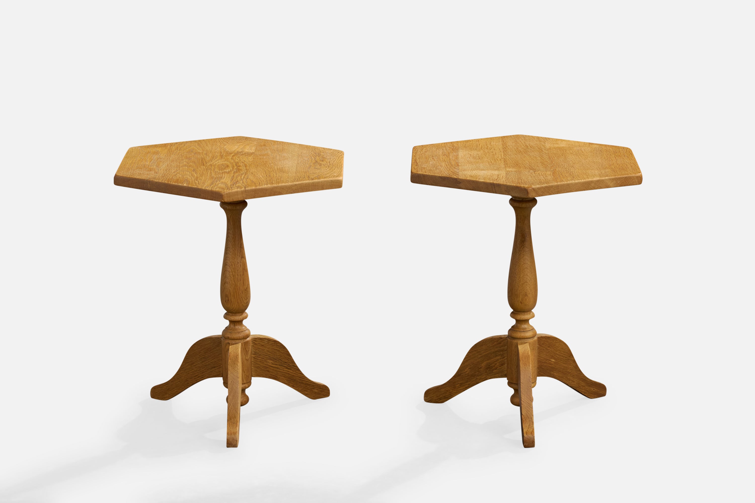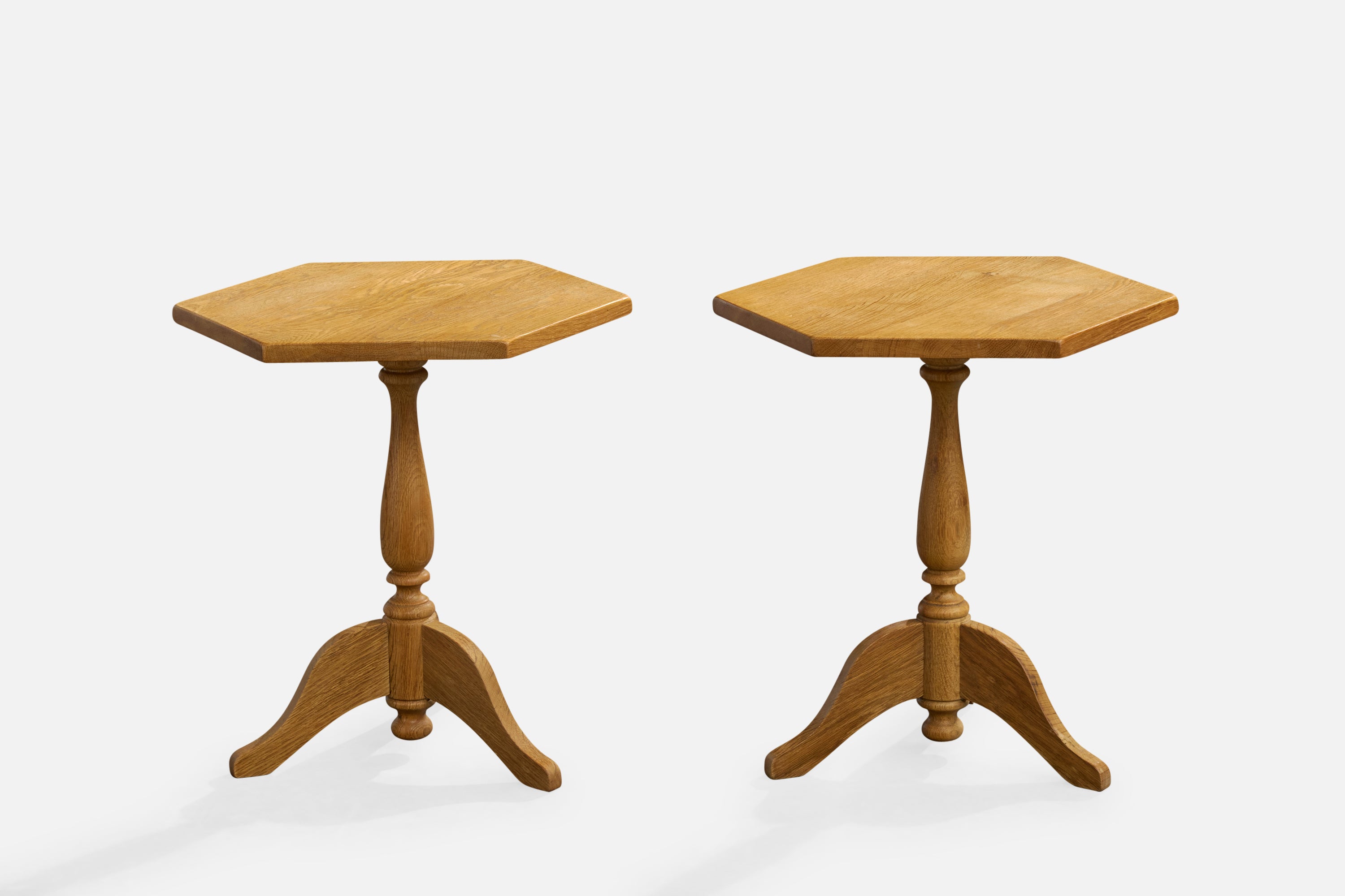 A pair of oak side tables or end tables designed and produced in Denmark, c. 1970s.