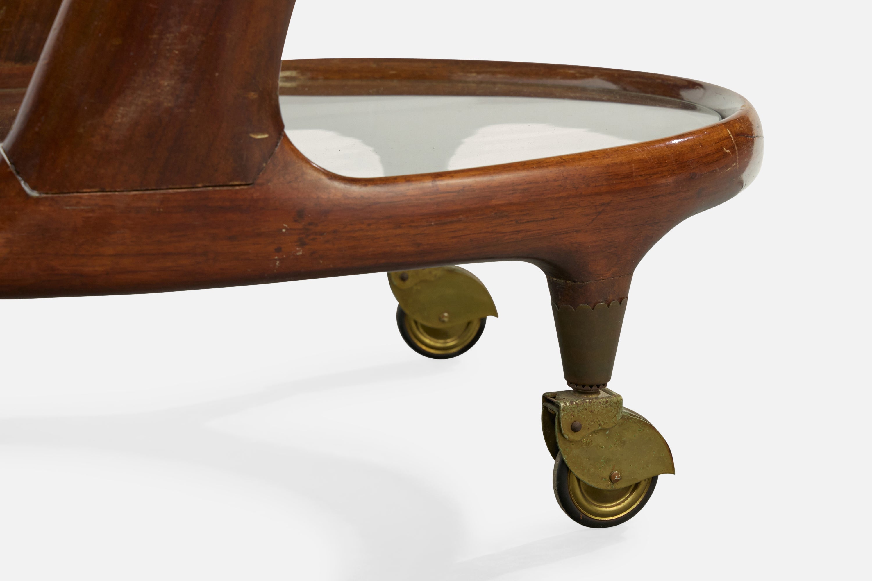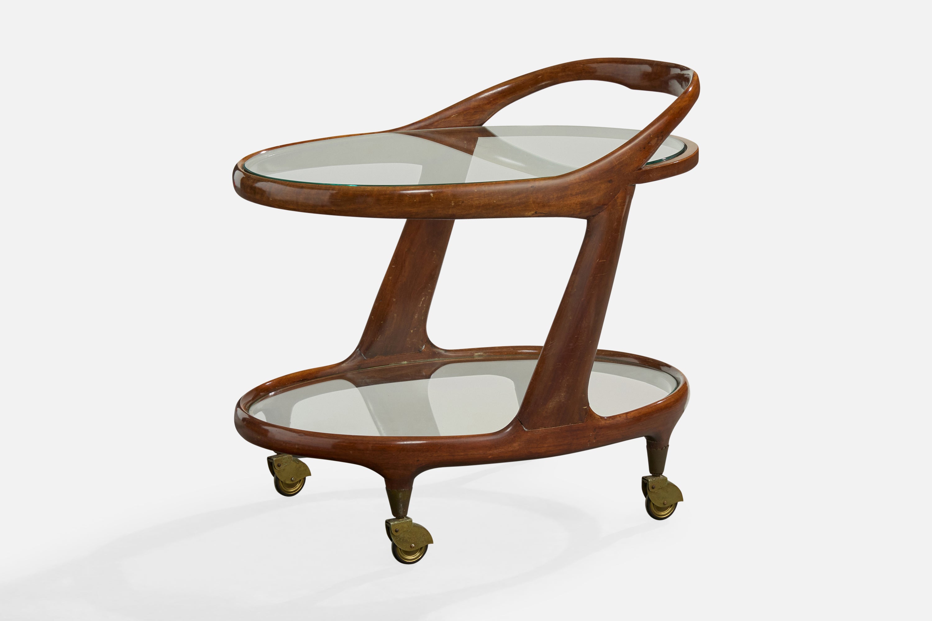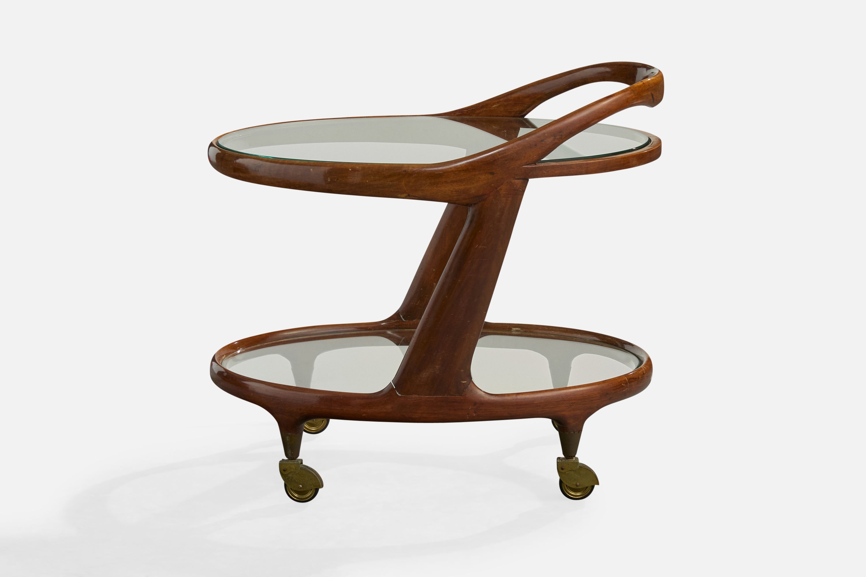 Cesare Lacca, Bar Cart, Wood, Glass, Brass, Italy, 1950s