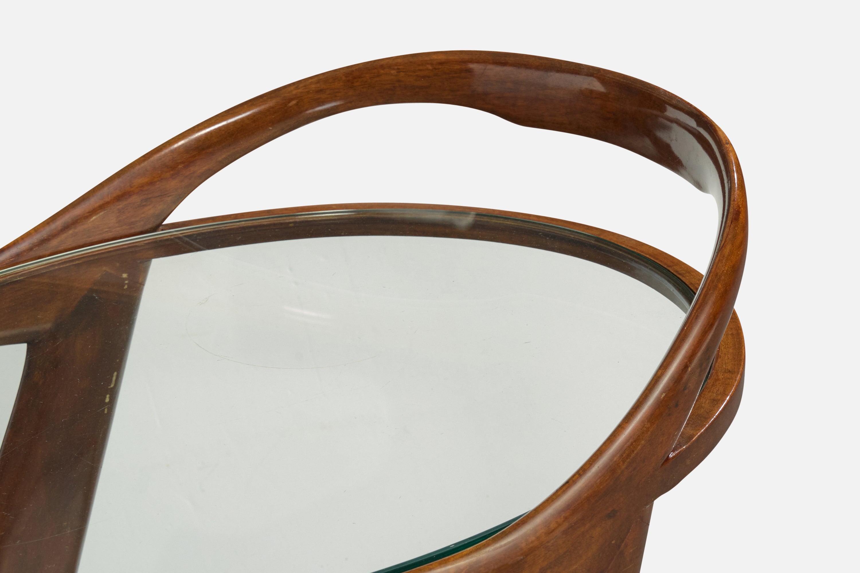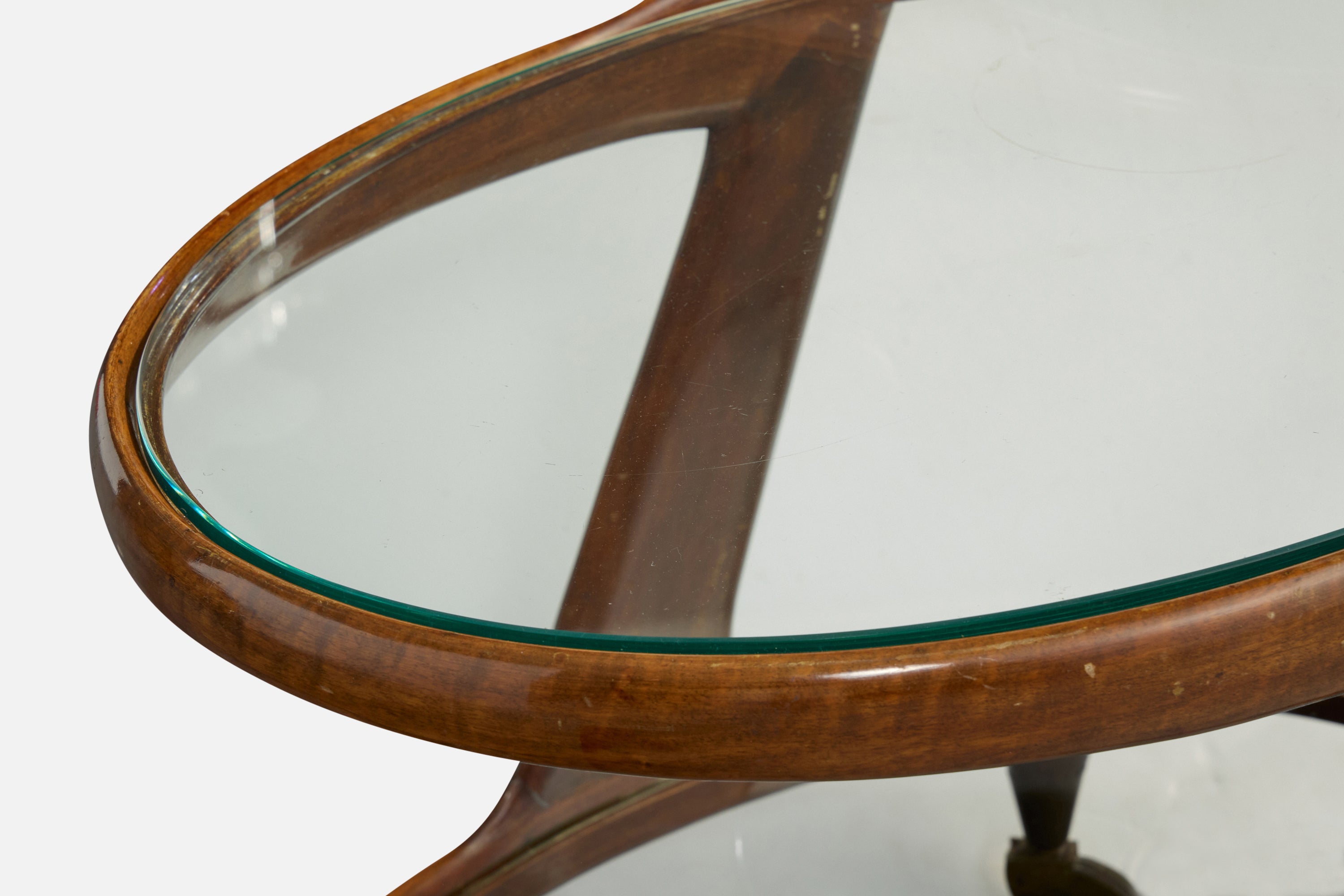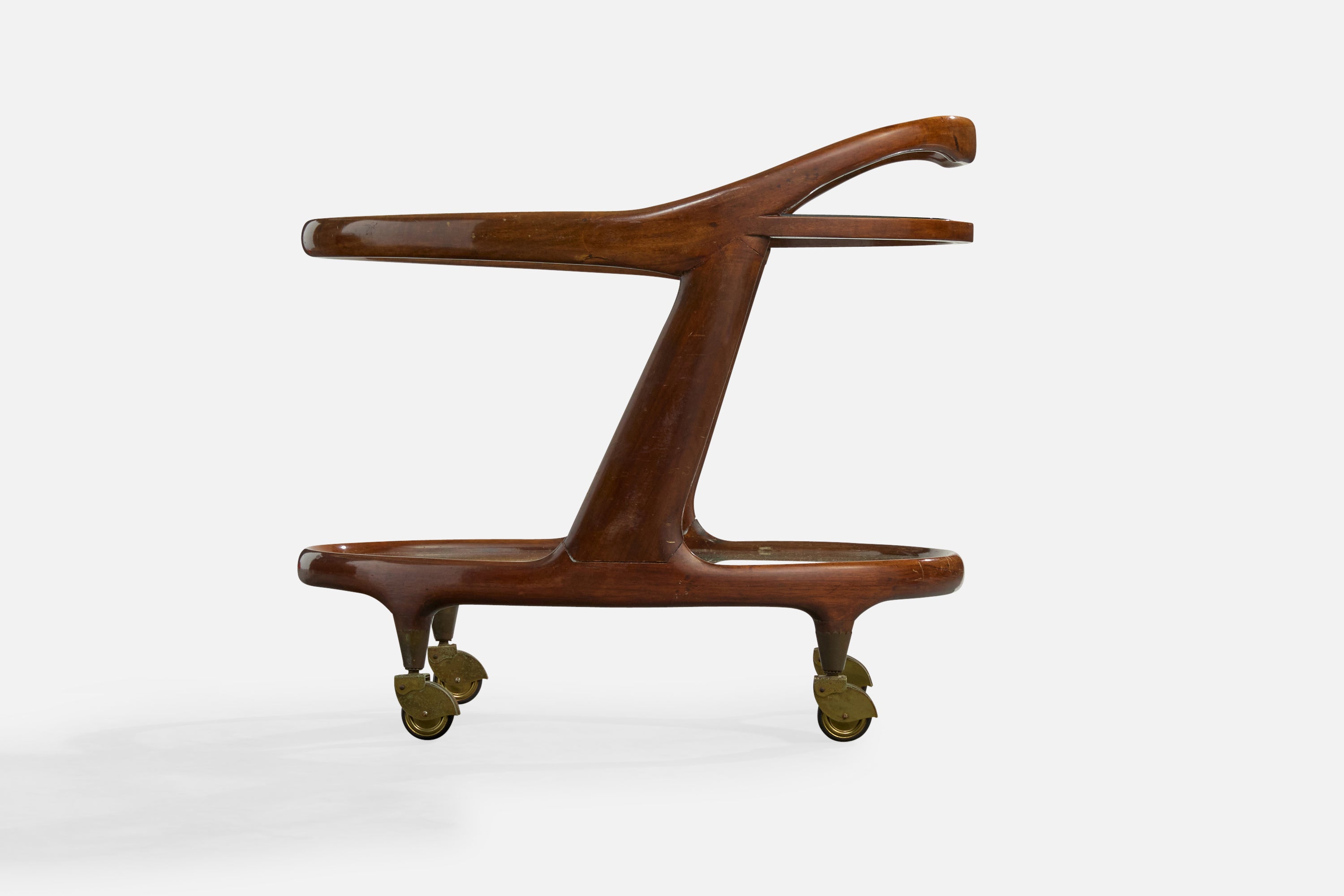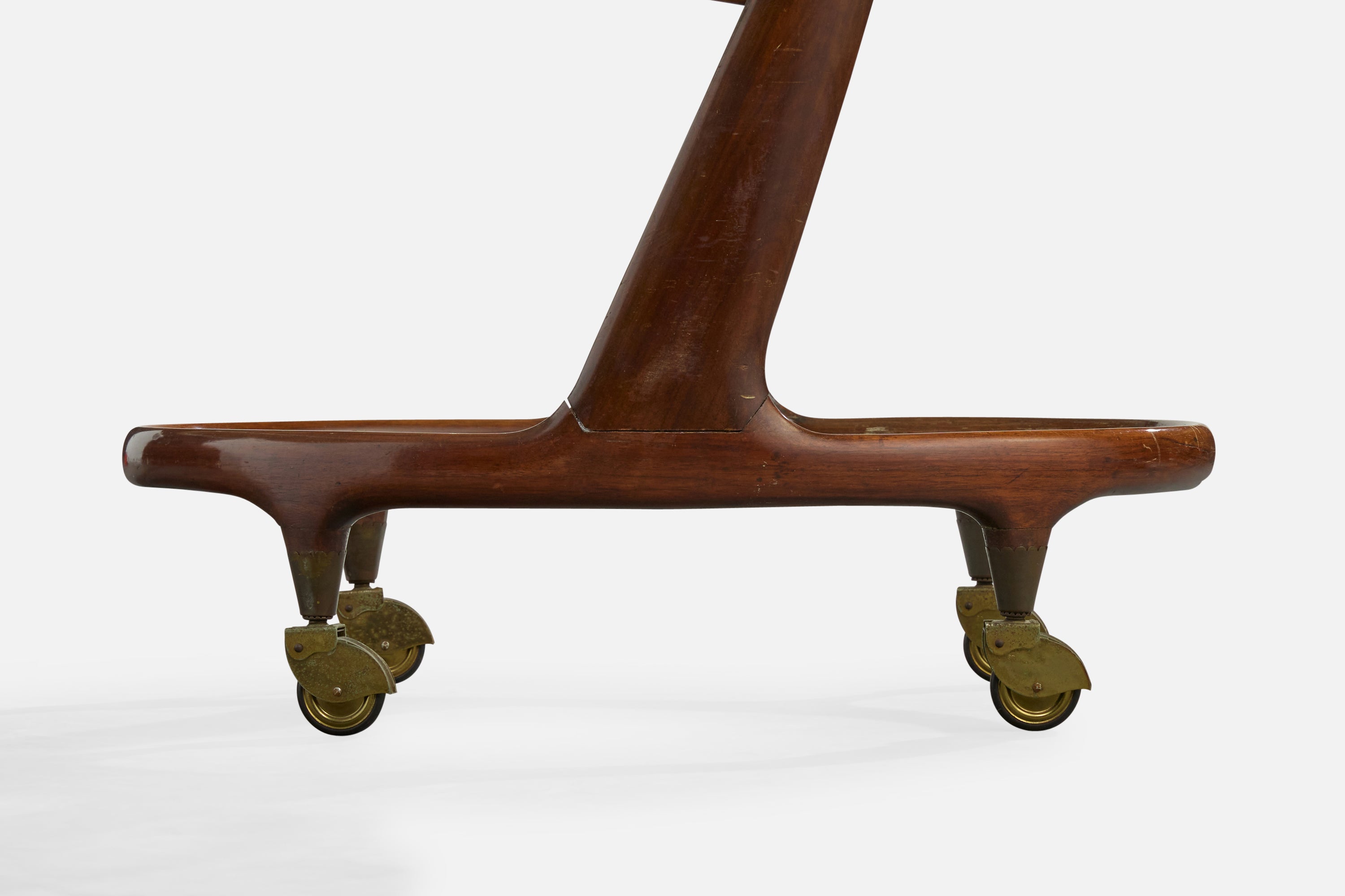 Cesare Lacca, Bar Cart, Wood, Glass, Brass, Italy, 1950s