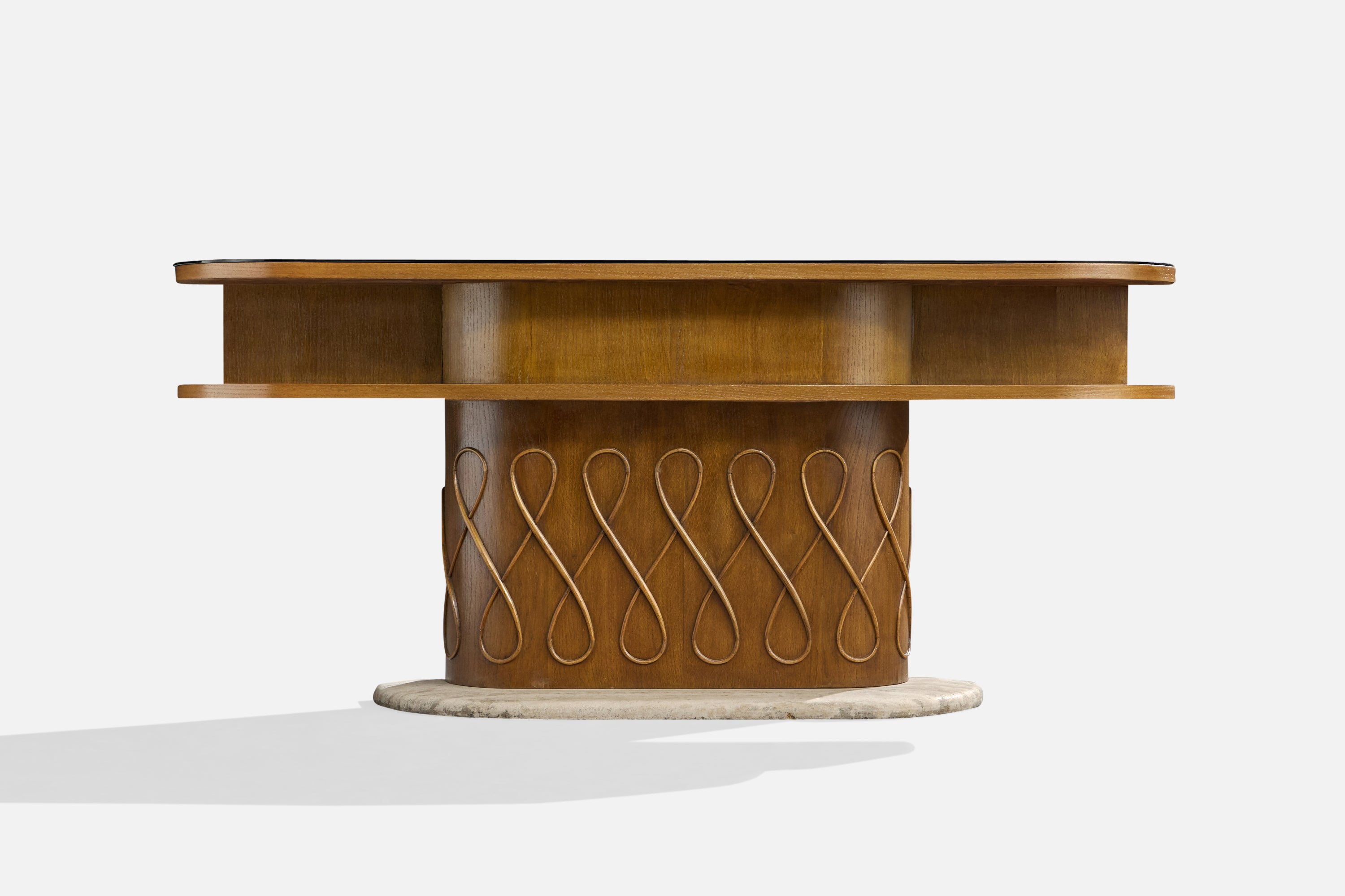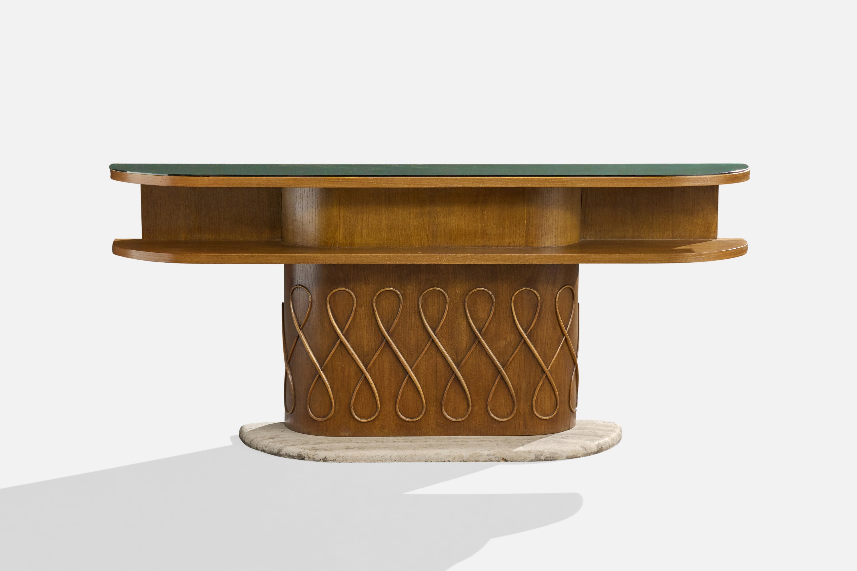 Italian Designer, Console Table, Wood, Glass, Marble, Italy, 1940s