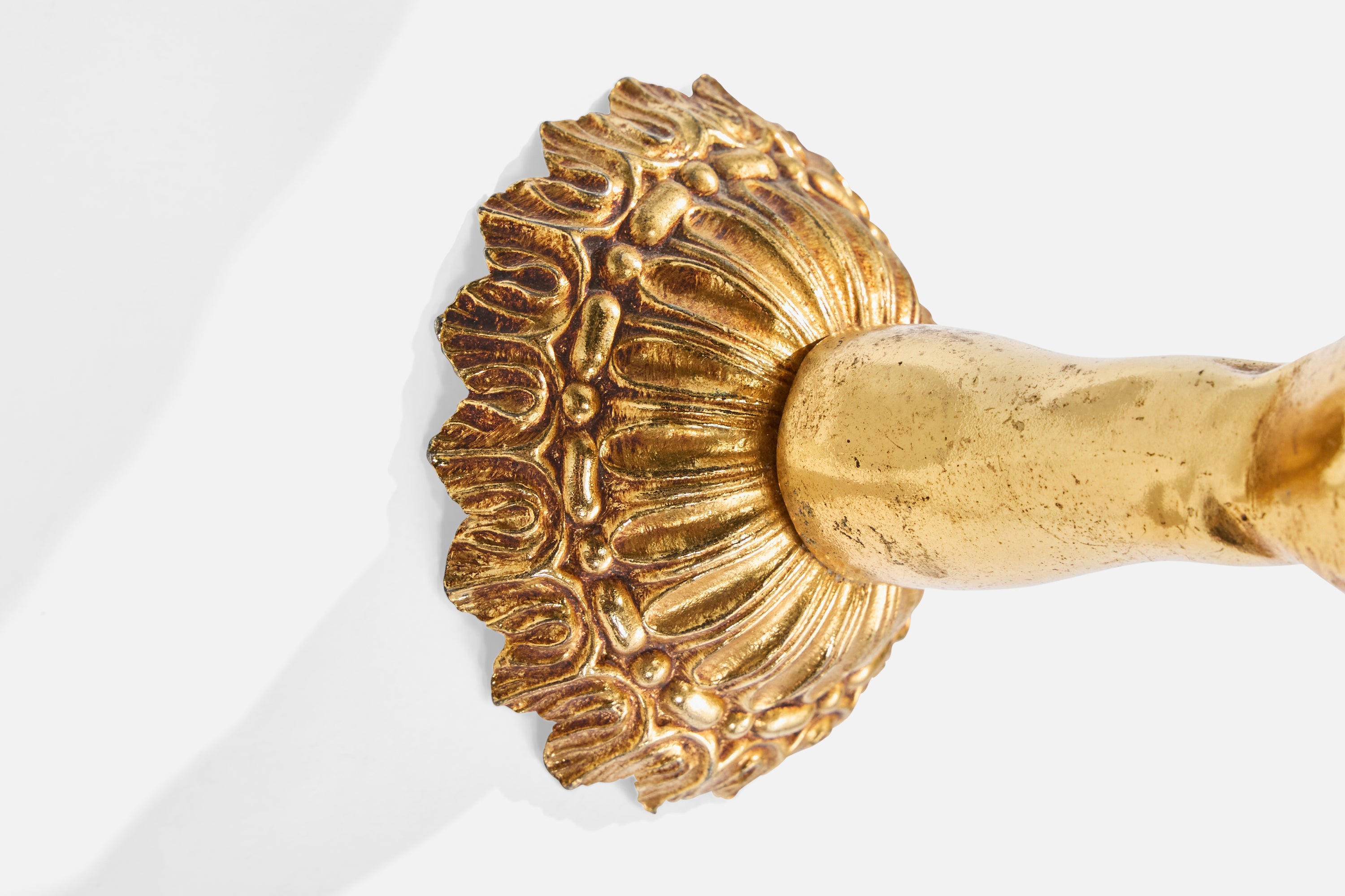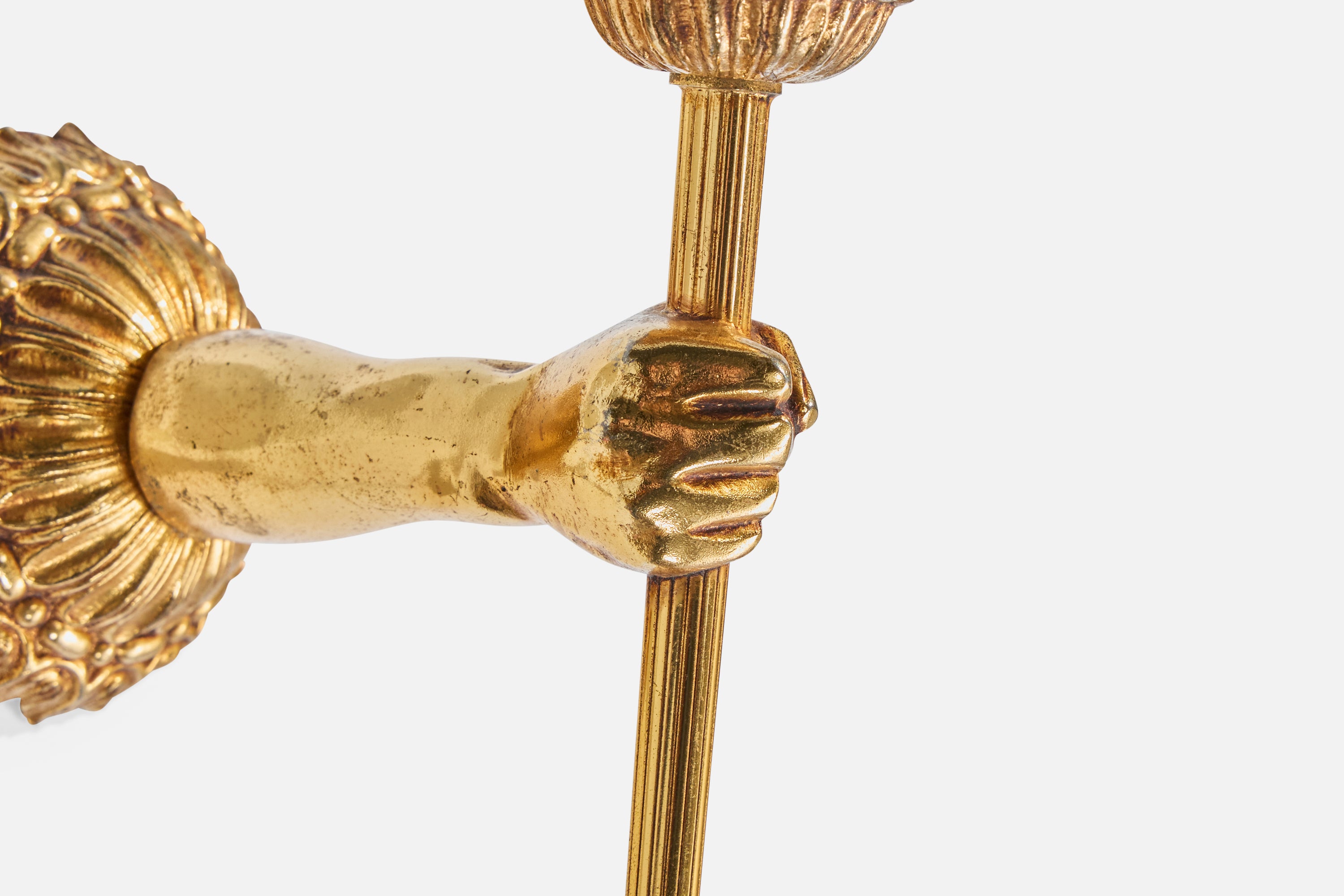 French Designer, Wall Light, Brass, Glass, France, 1950s
