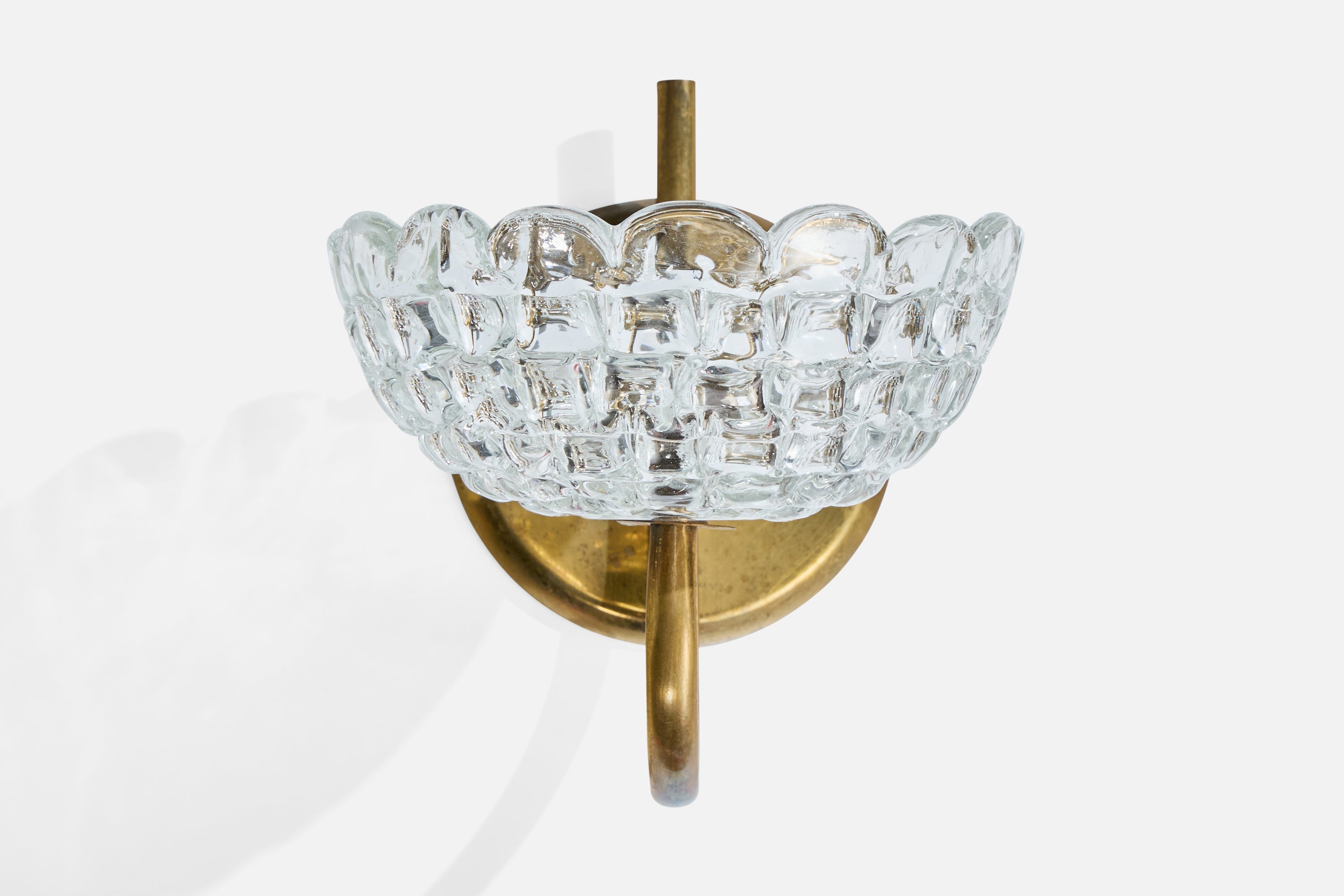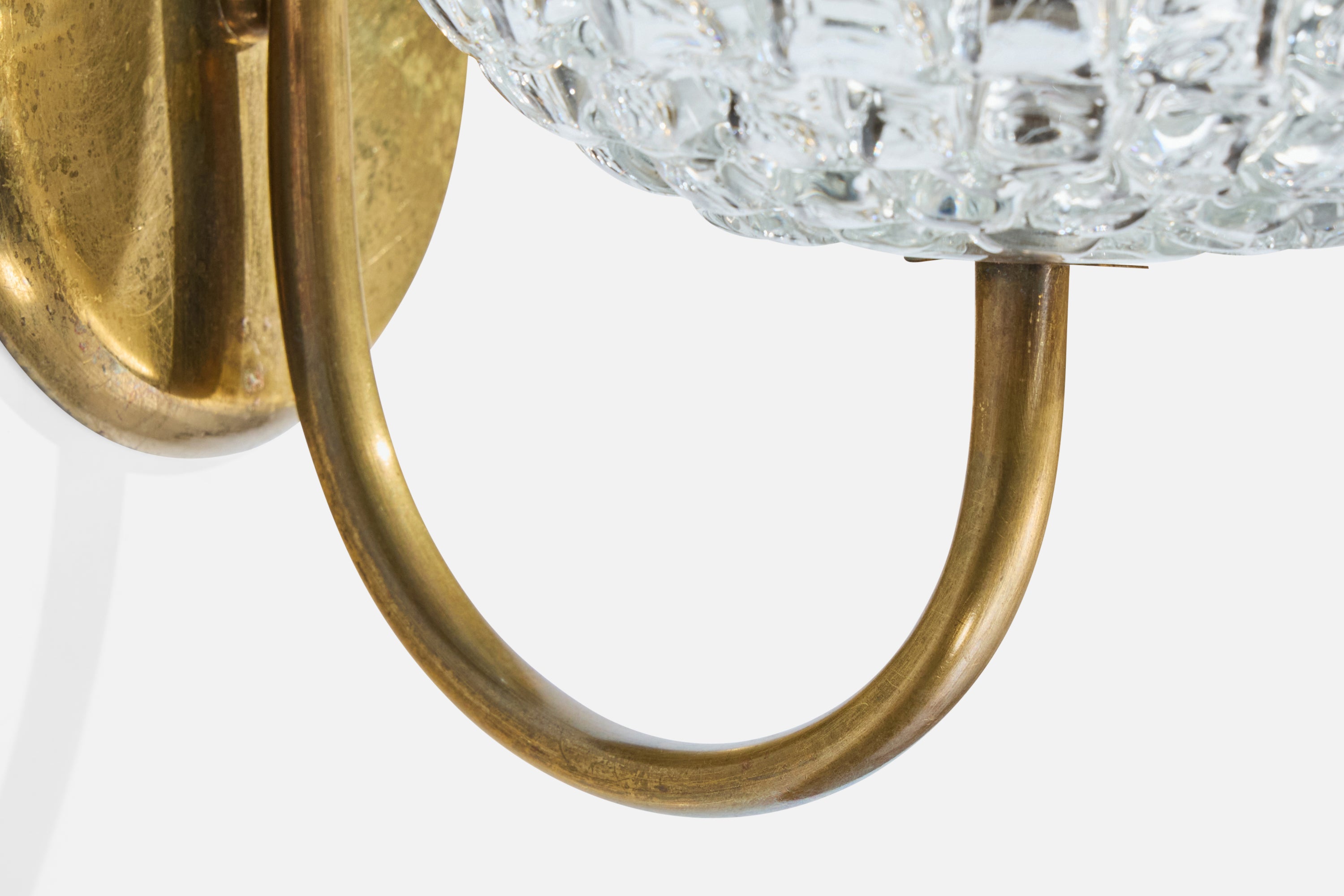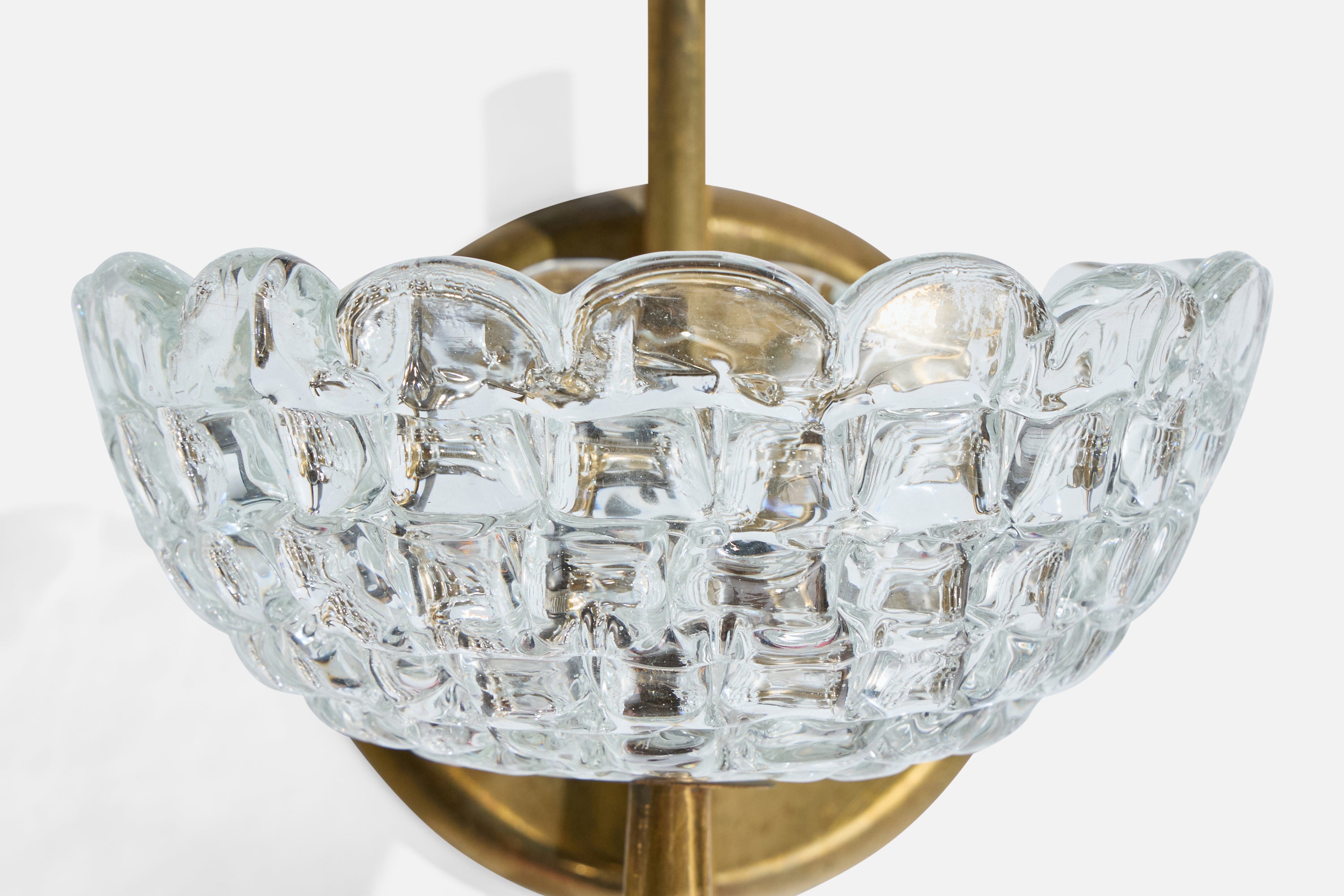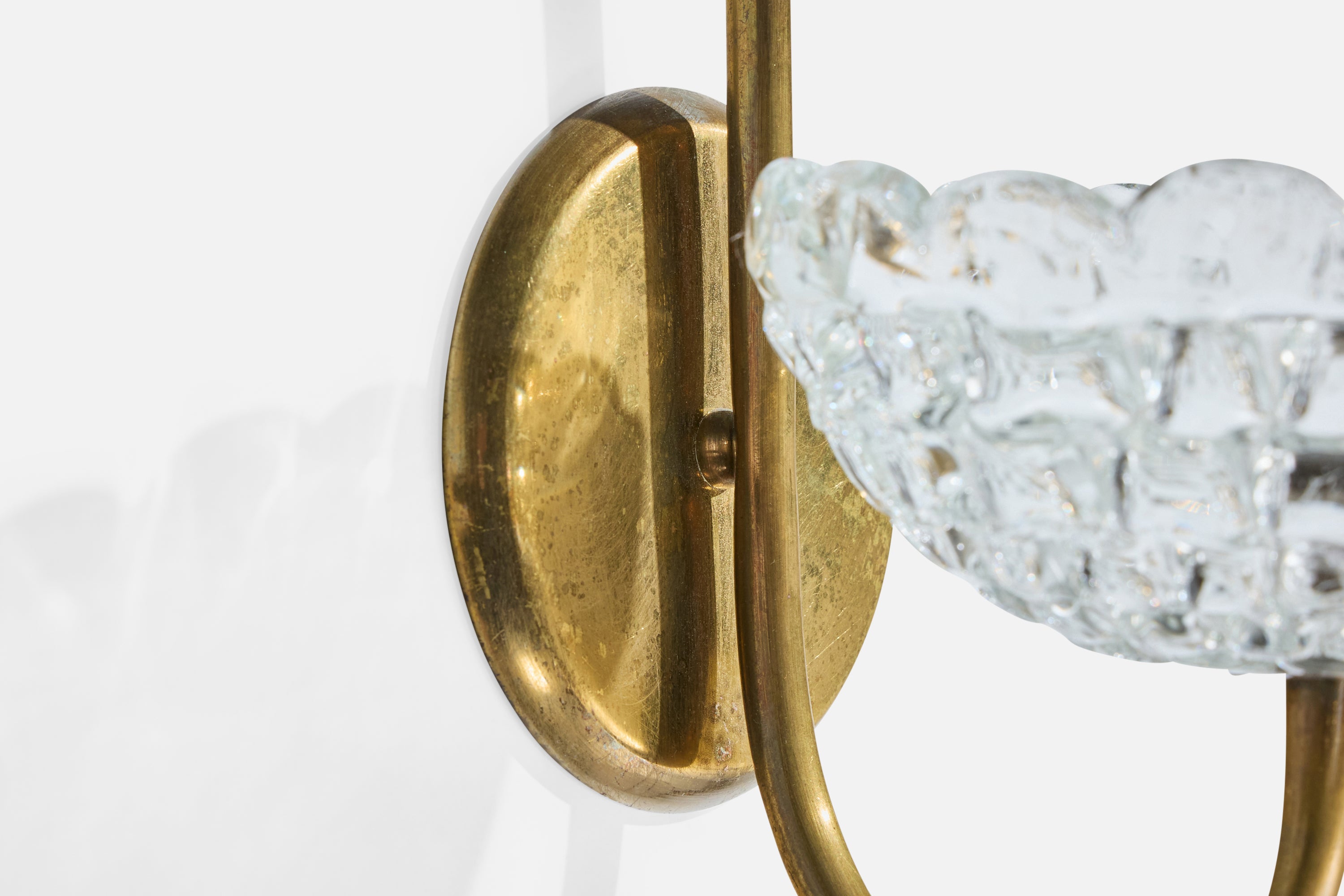 A brass and Murano glass wall light designed and produced in Italy, c. 1950s.