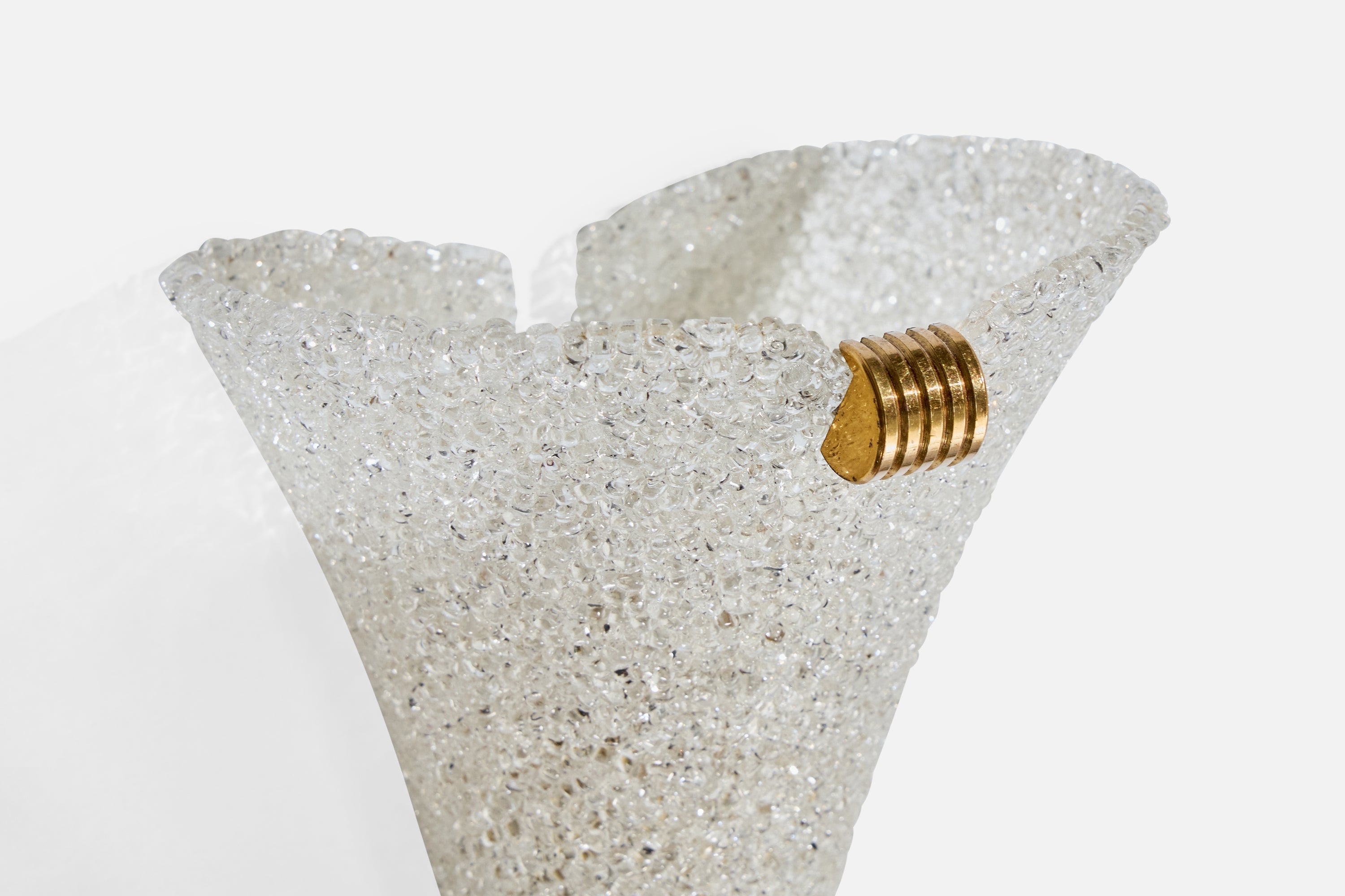 A pair of plastic resin and brass wall lights likely designed and produced in France, c. 1960s.