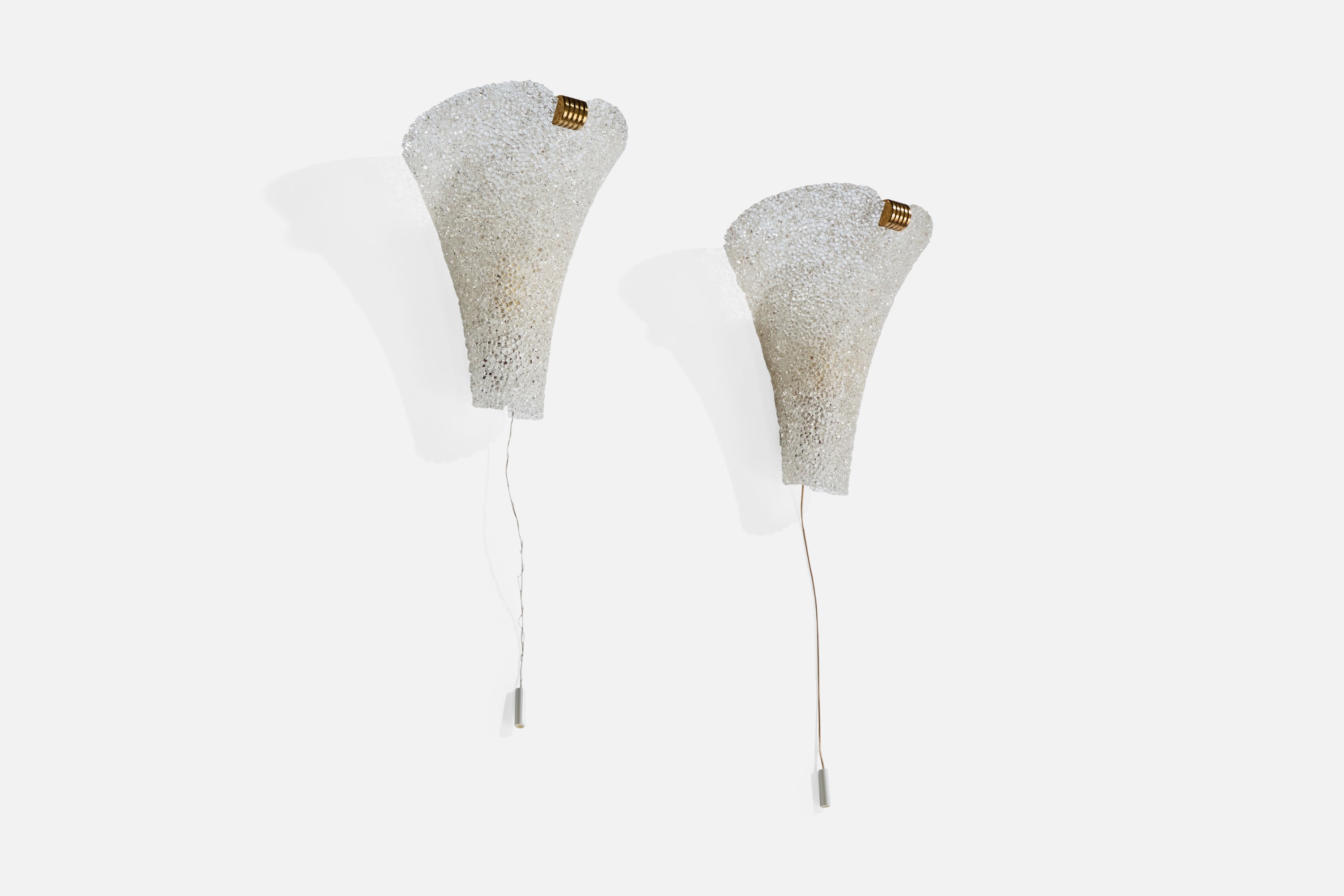 French Designer, Wall Lights, Plastic Resin, Brass, France, 1960s
