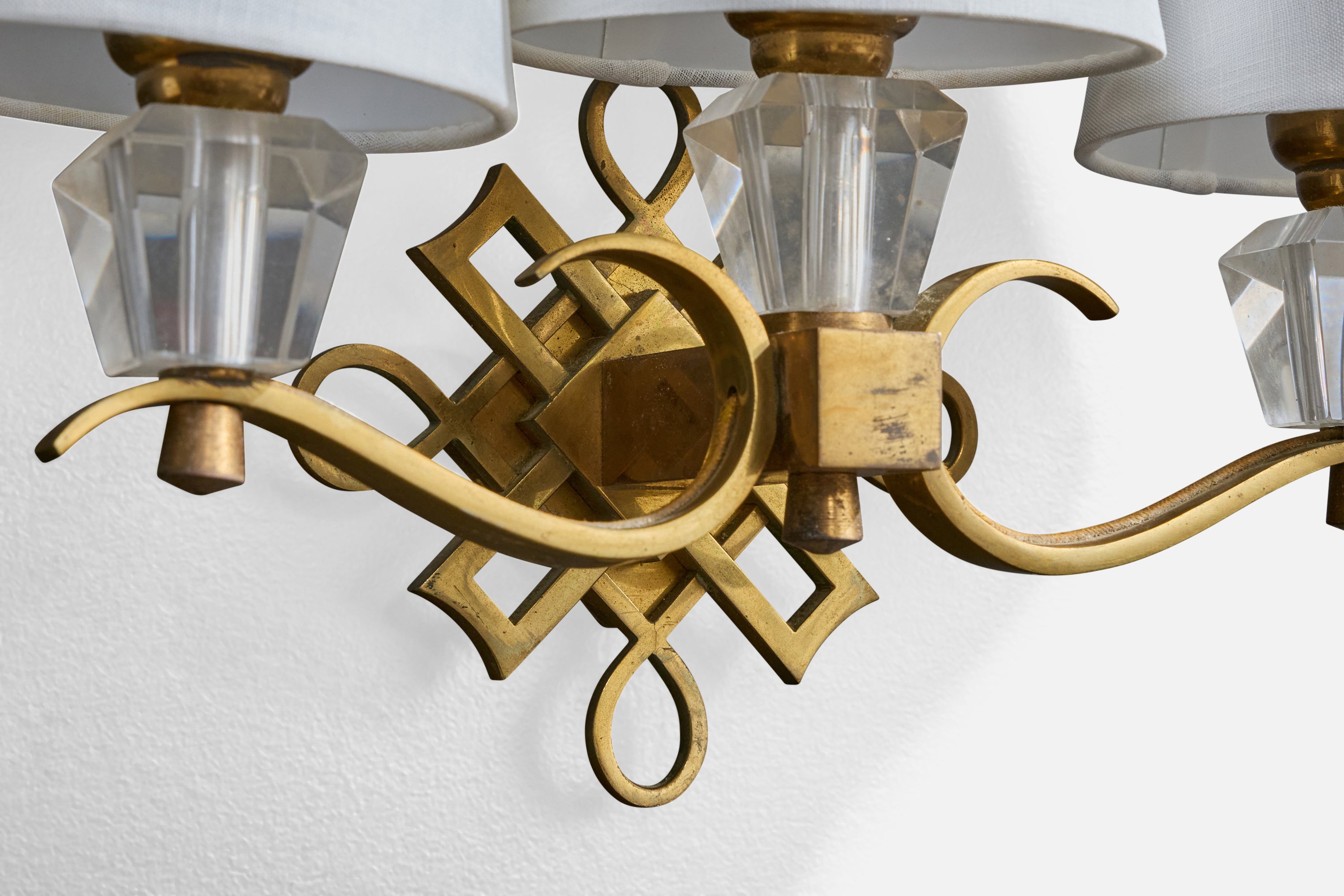 French Designer, Wall Light, Brass, Acrylic, Fabric, France, 1950s