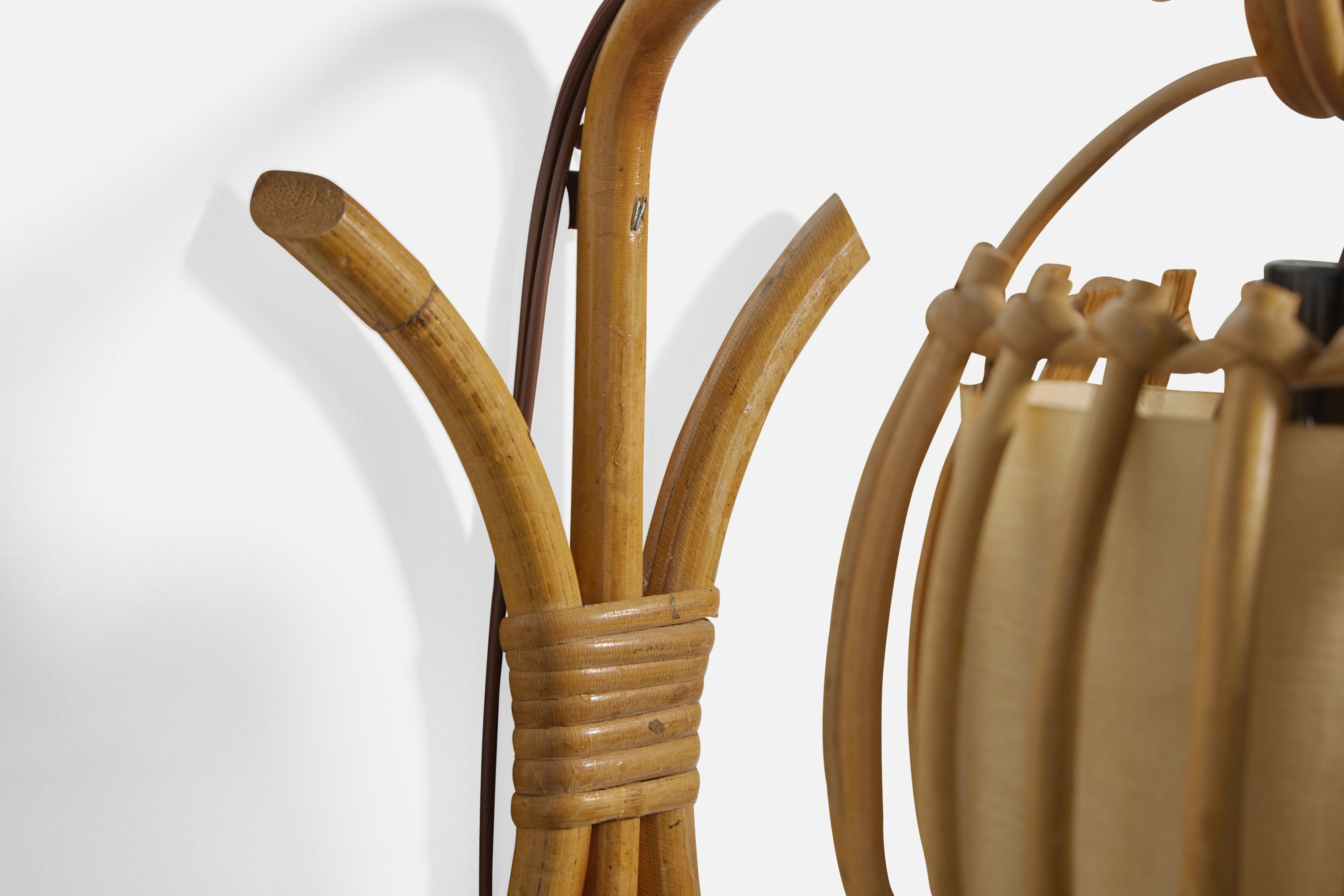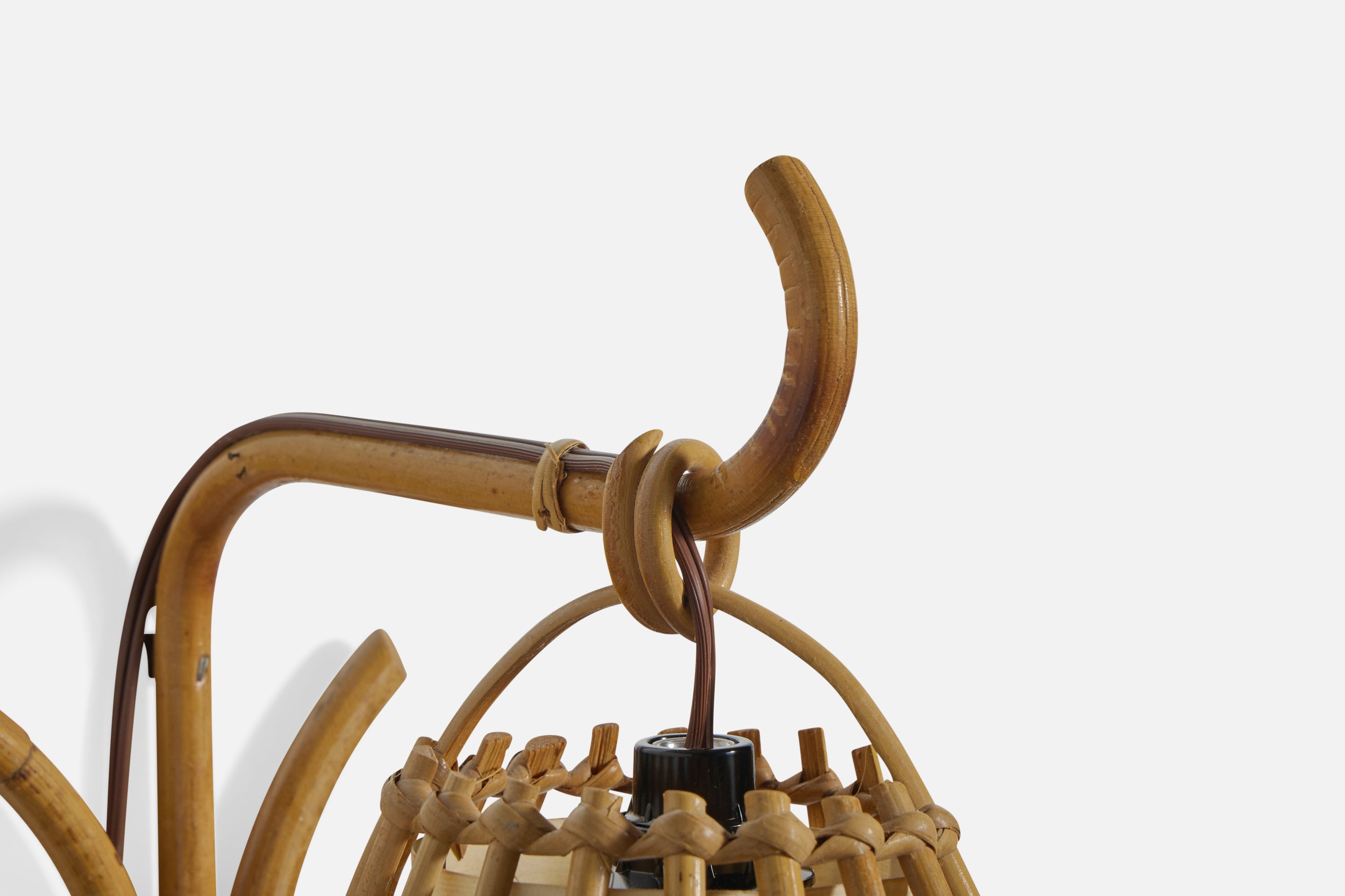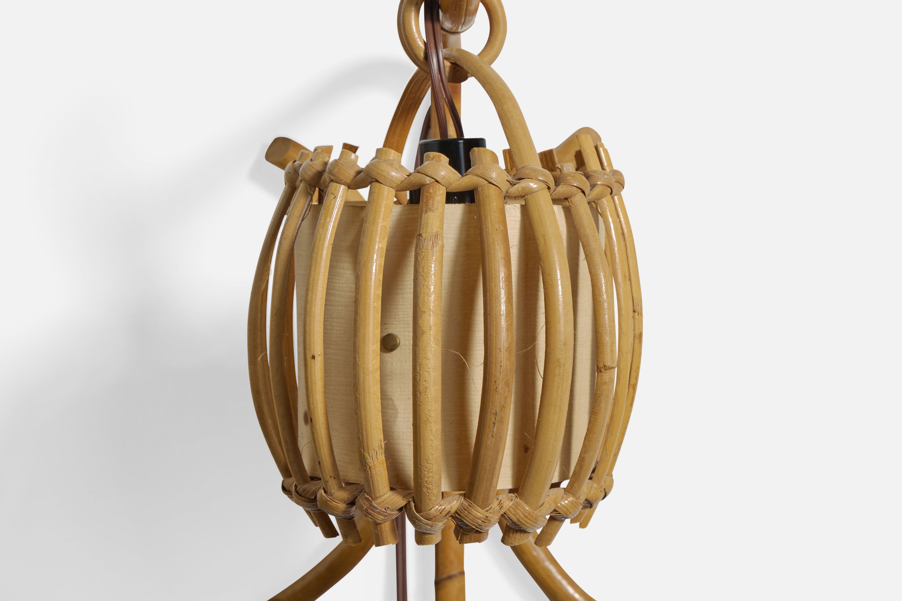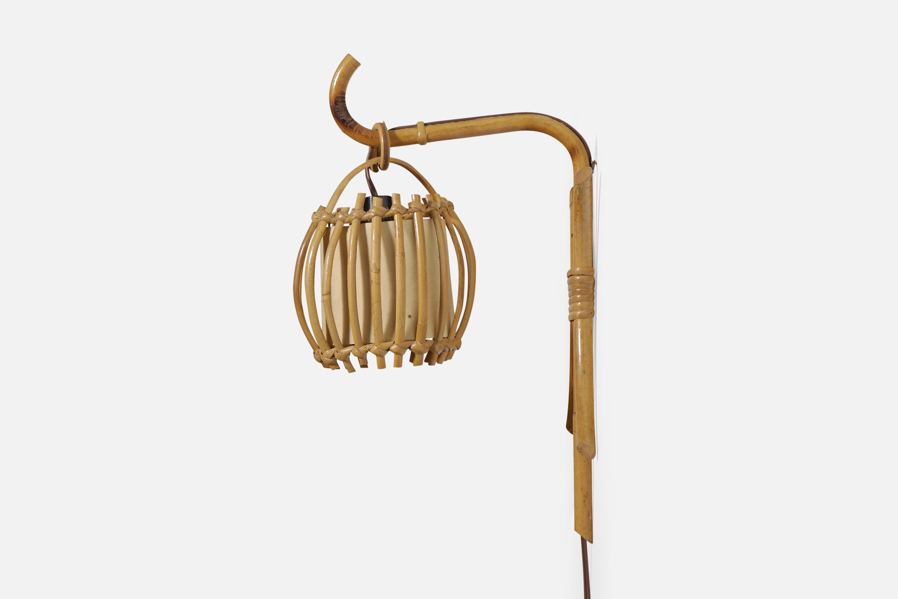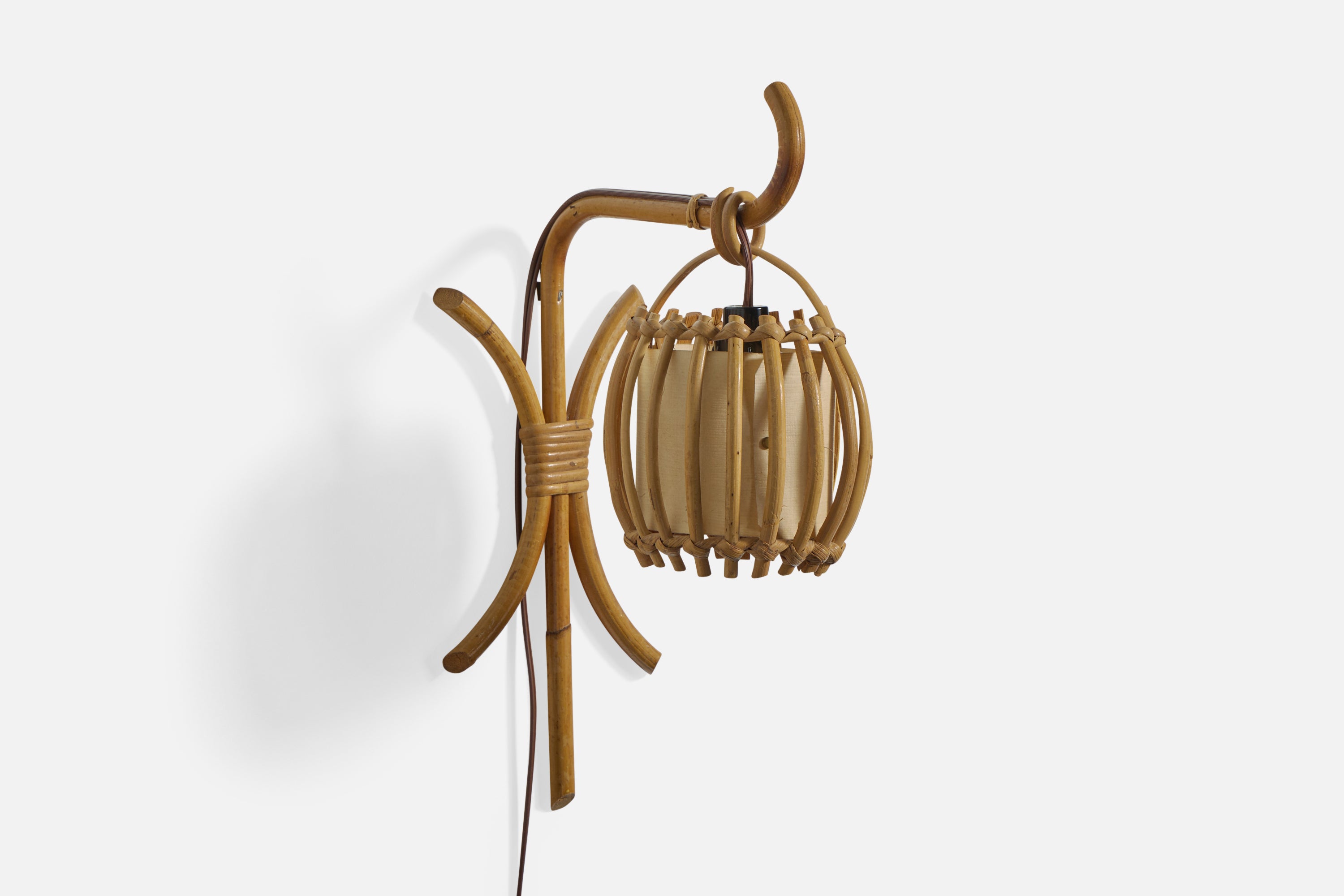 French Designer, Wall Light, Bamboo, Rattan, Paper France, 1970s
