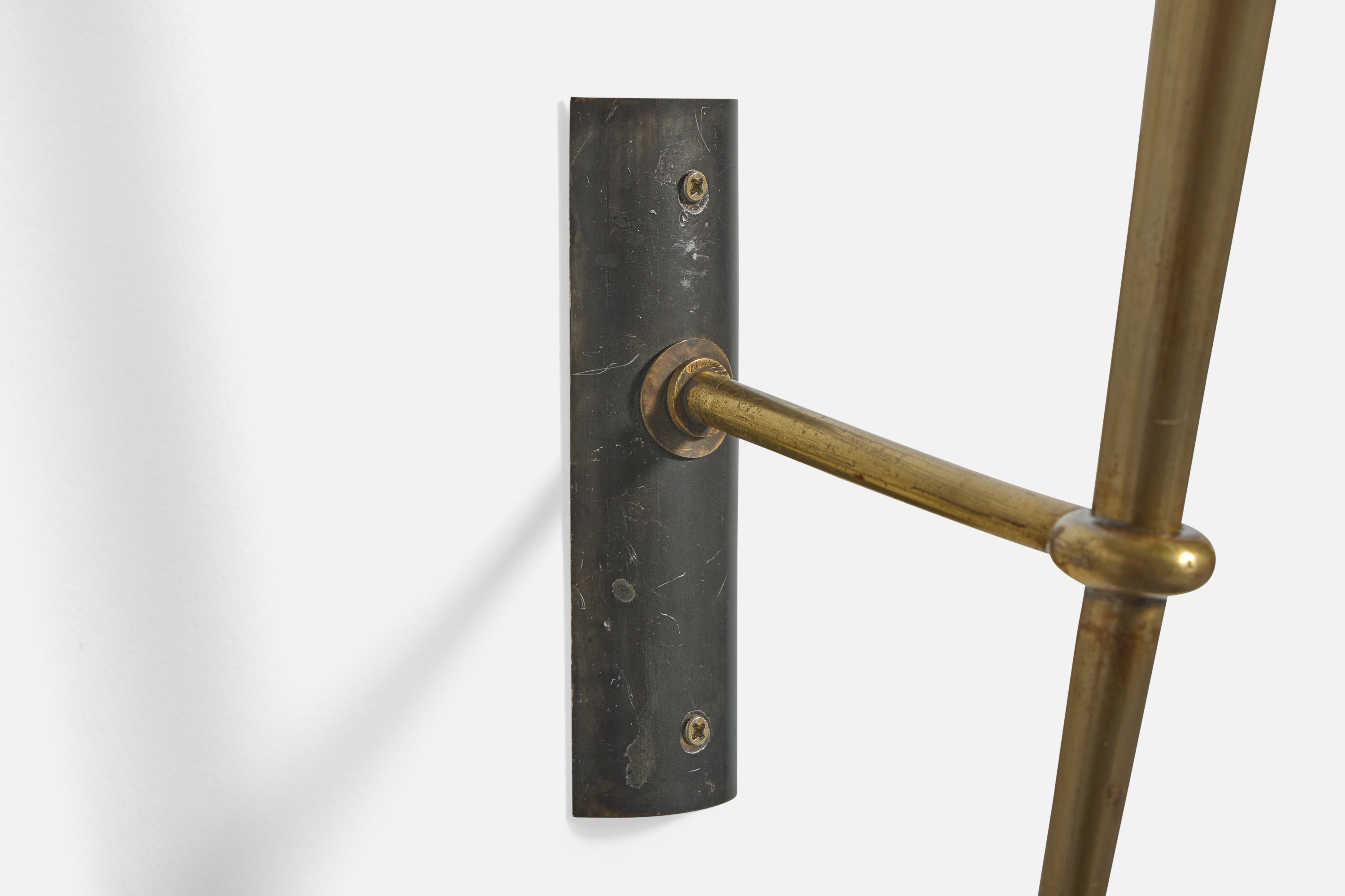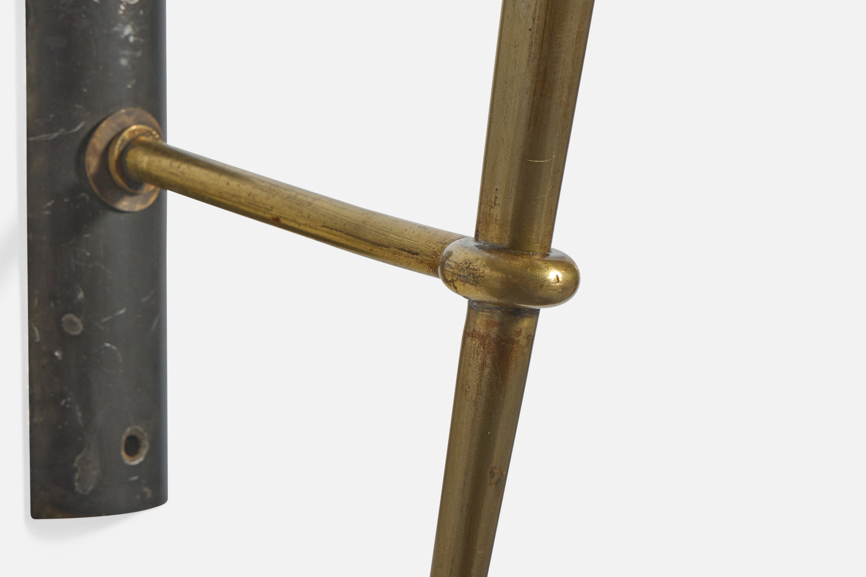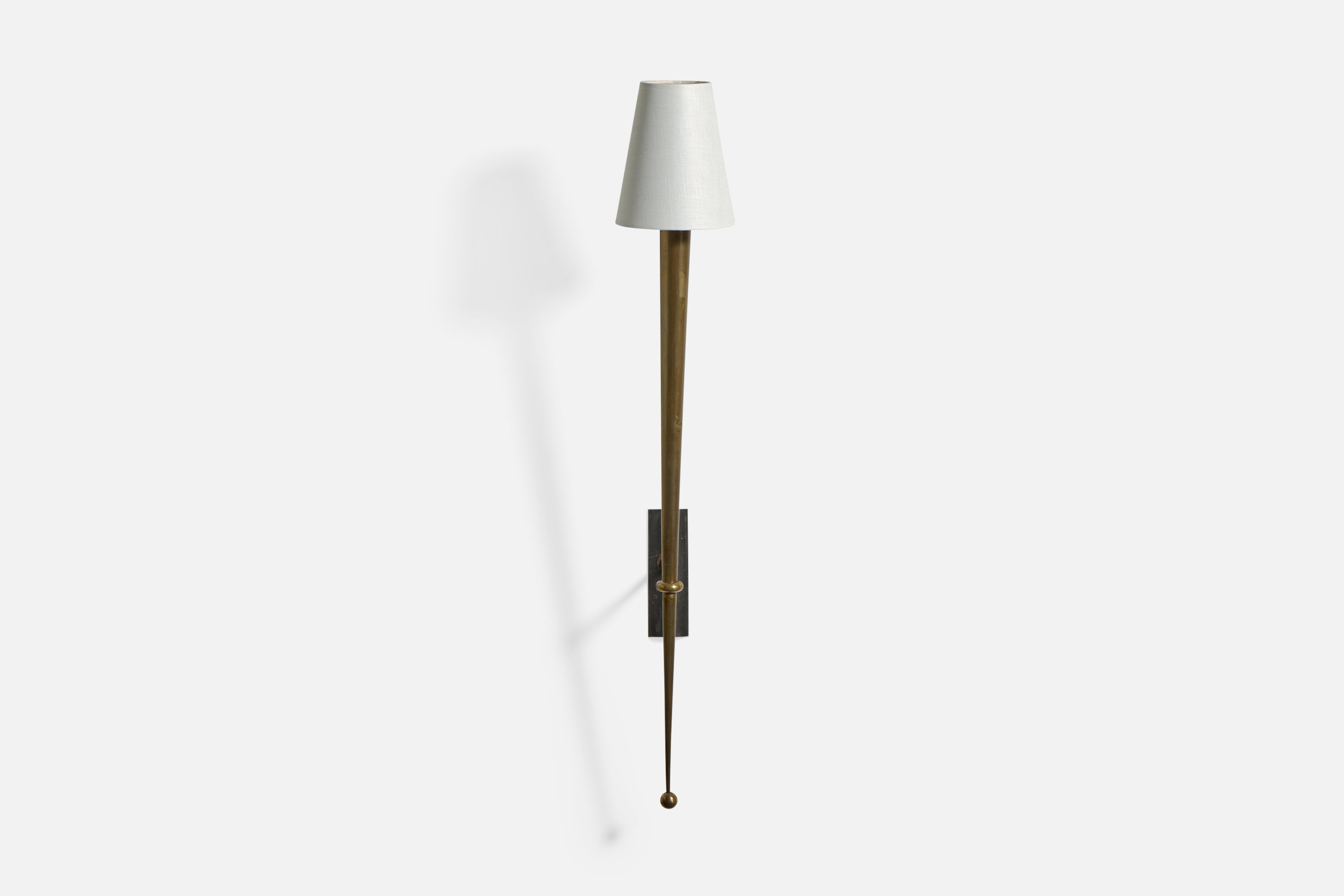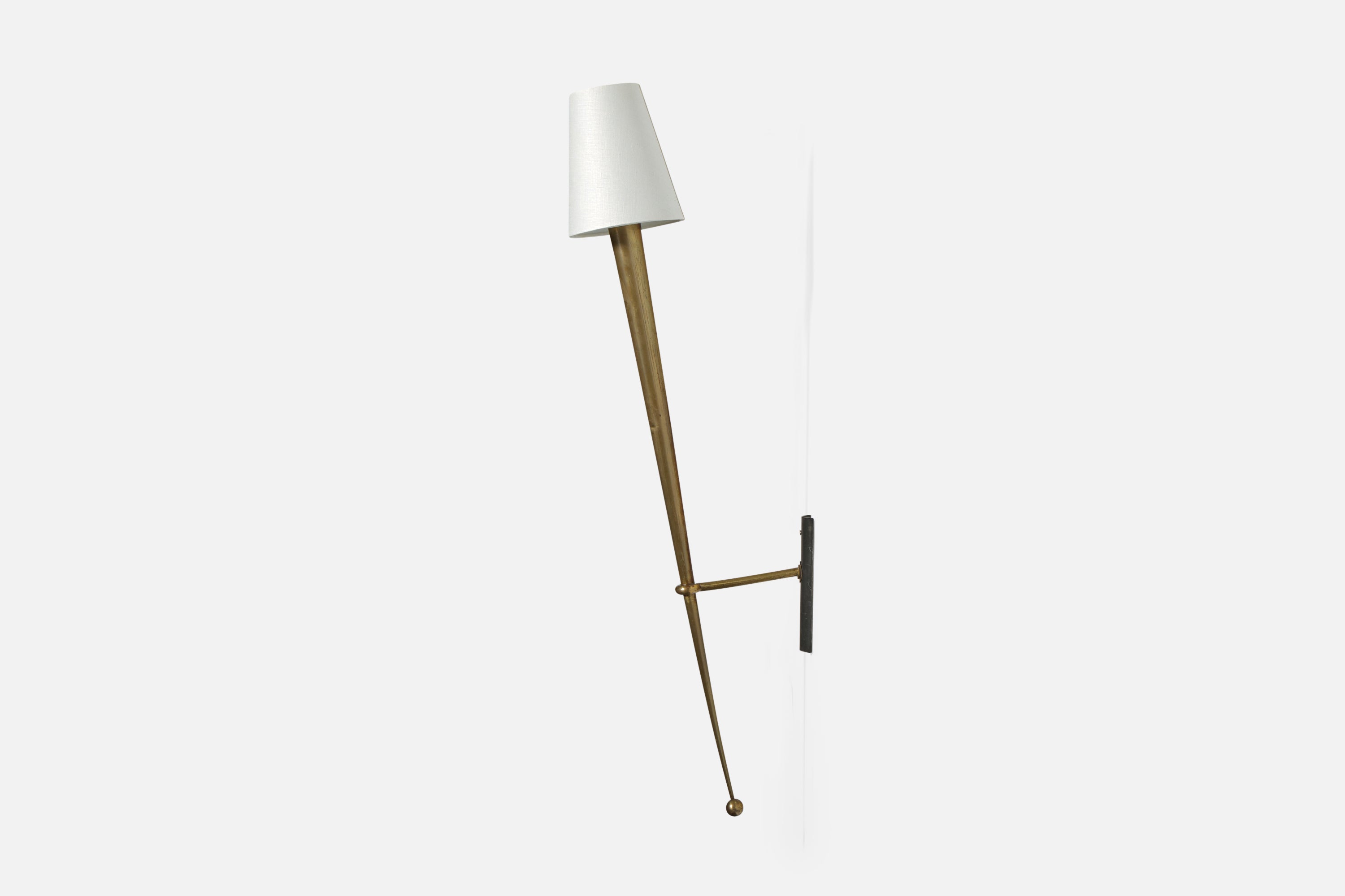 French Designer, Wall Light, Brass, Metal, Fabric, France, 1950s