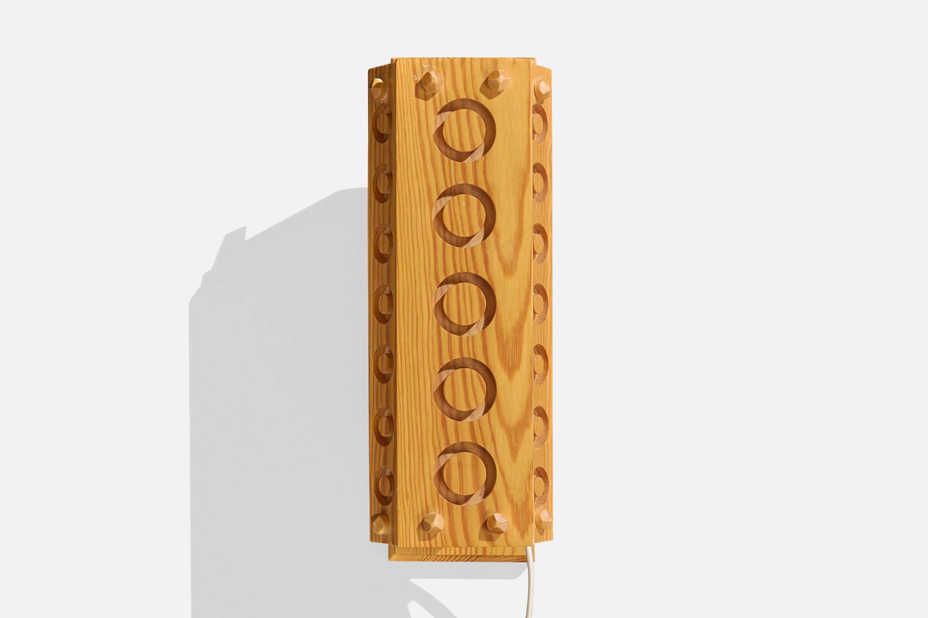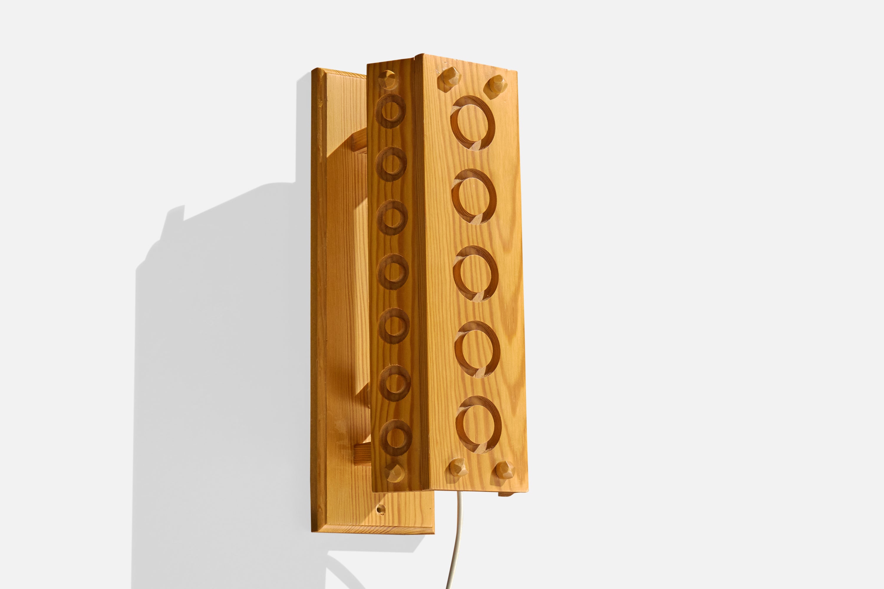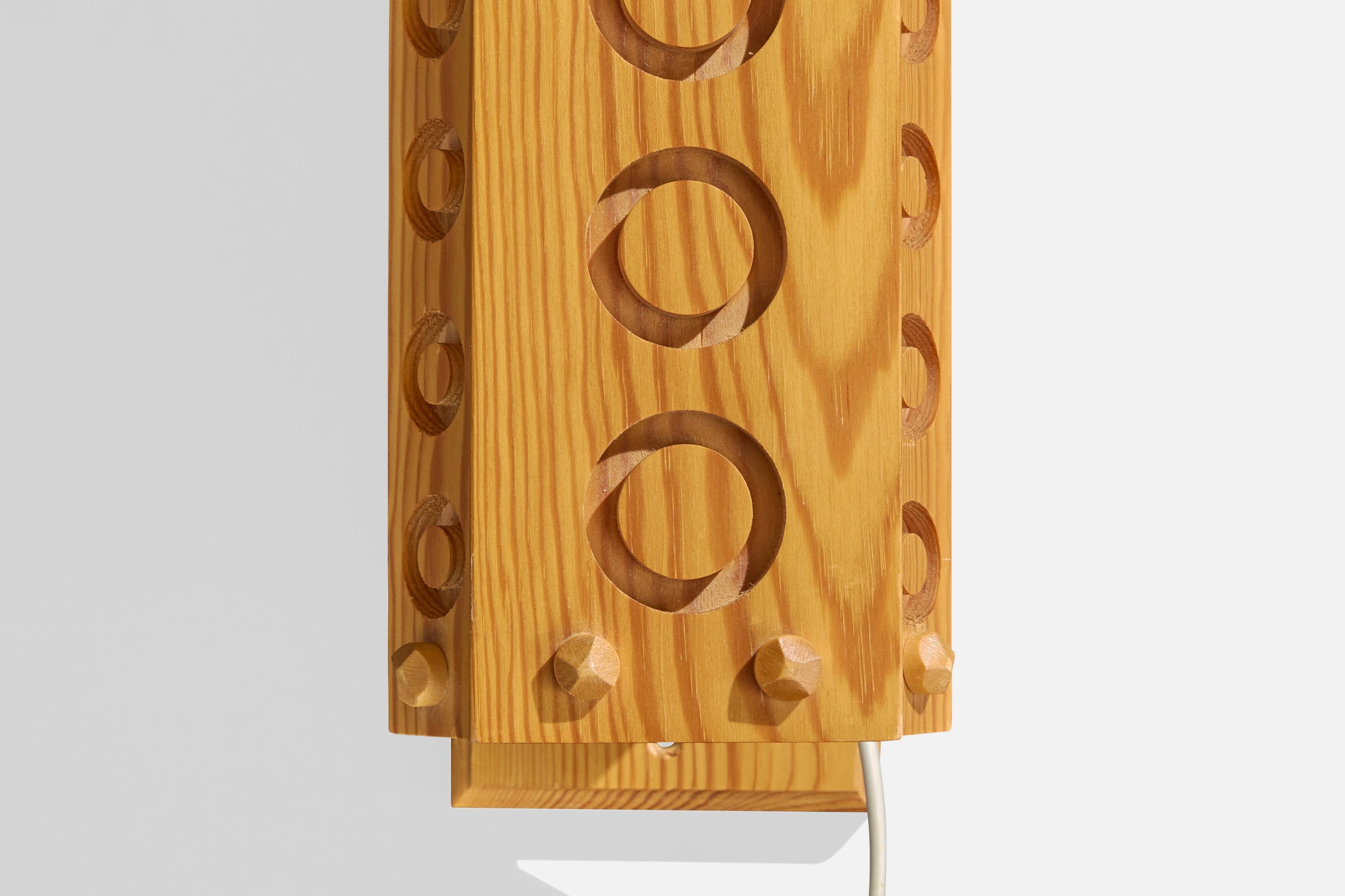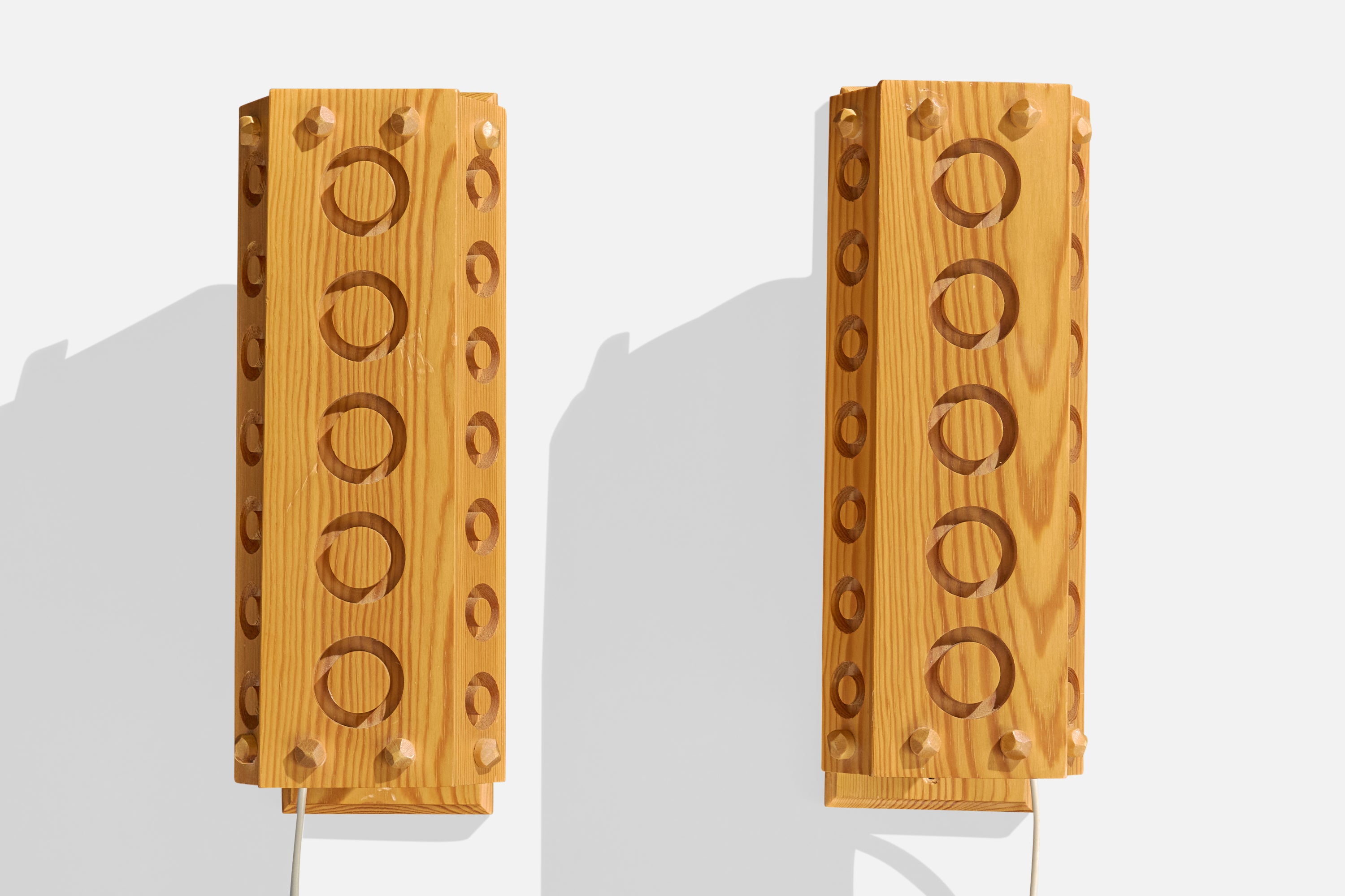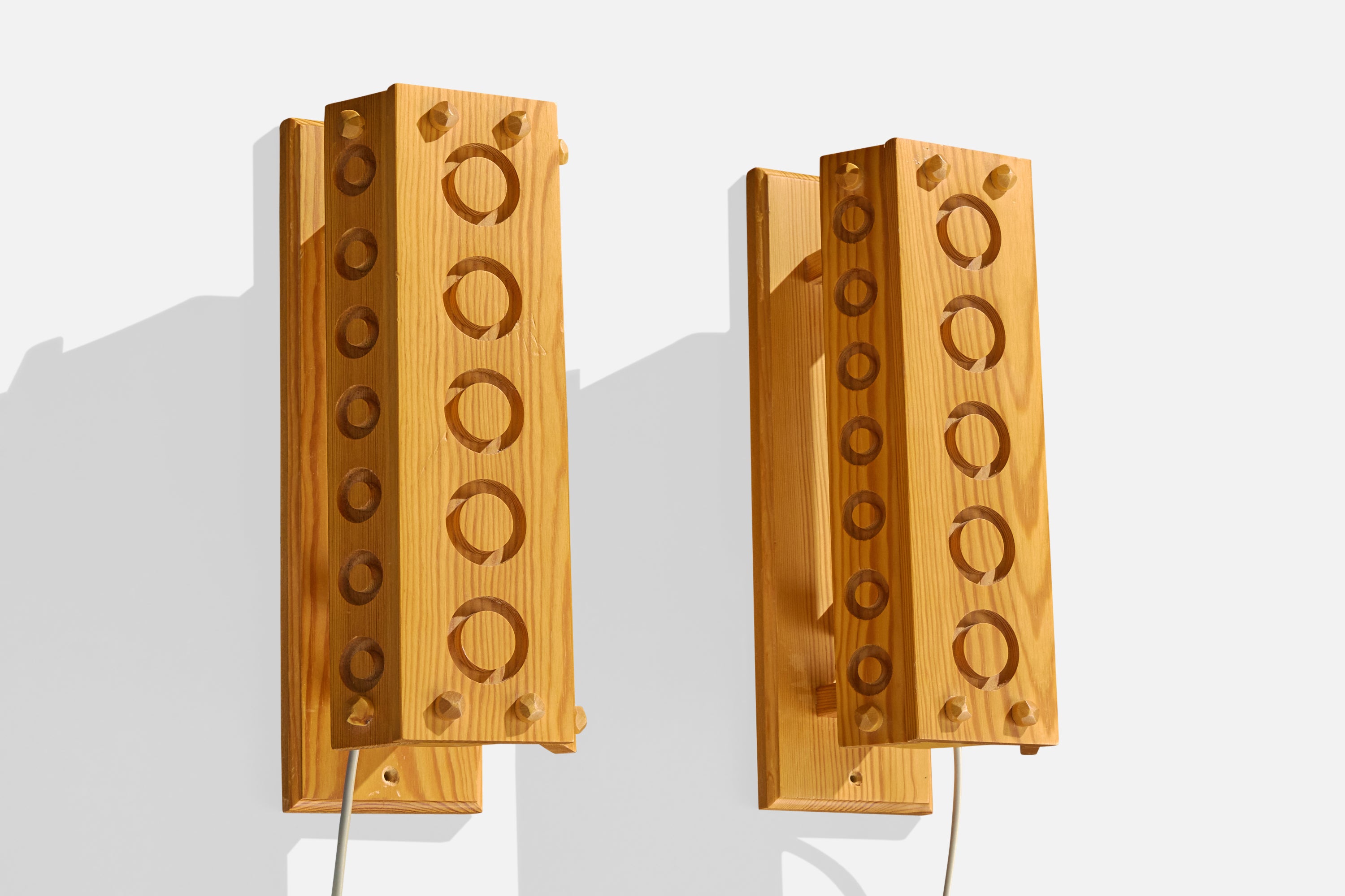 A pair of pine wall lights designed and produced in Sweden, c. 1980s.