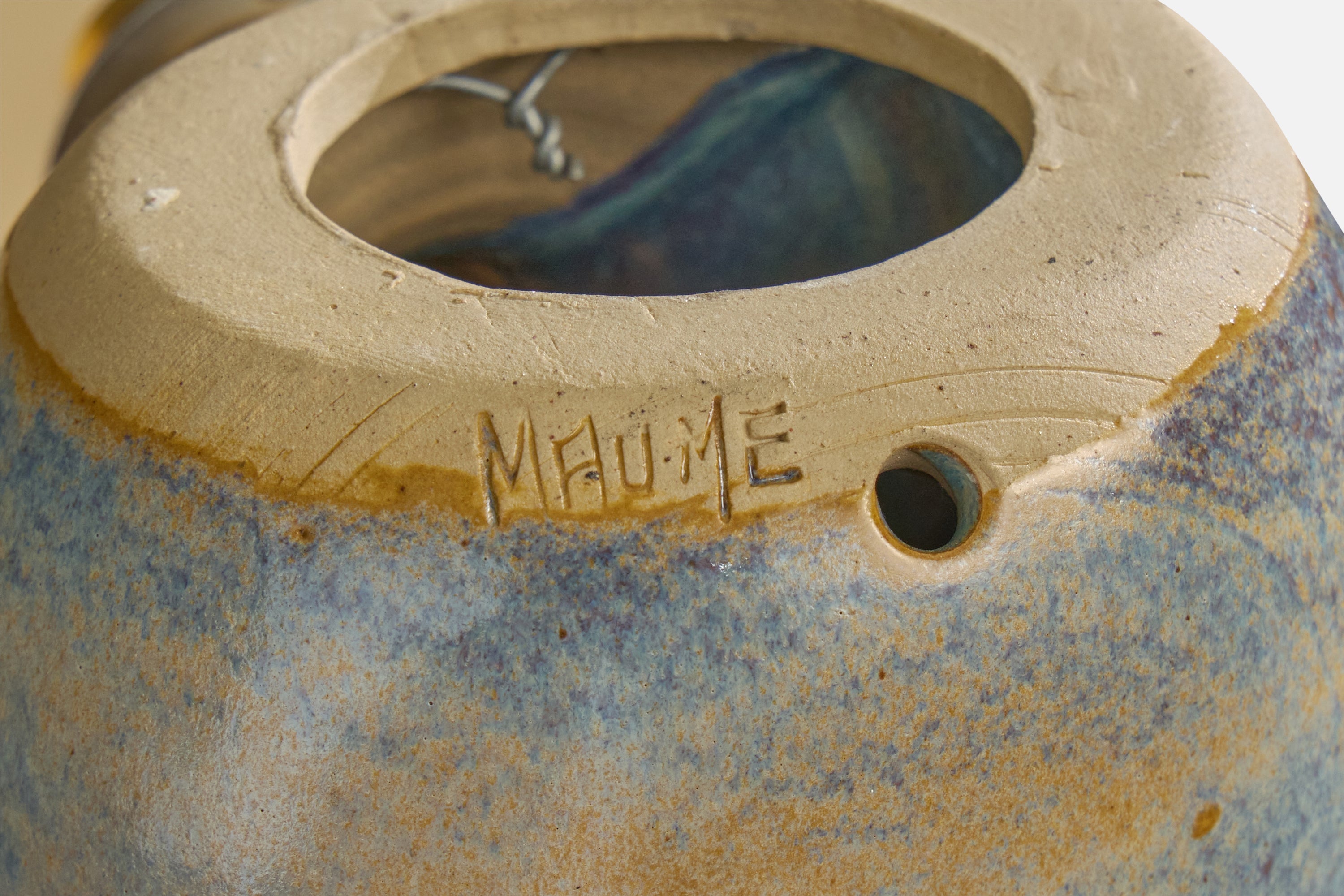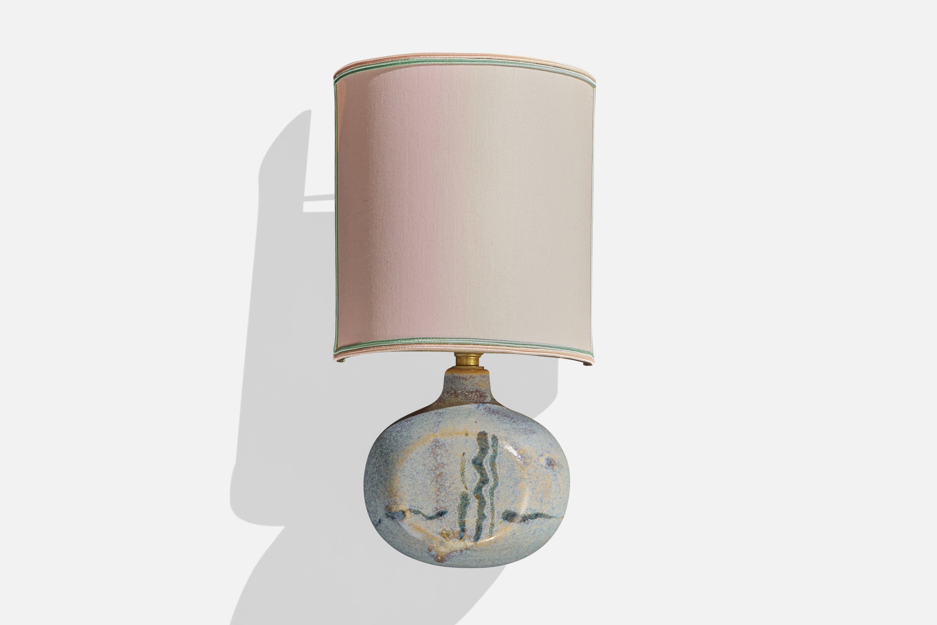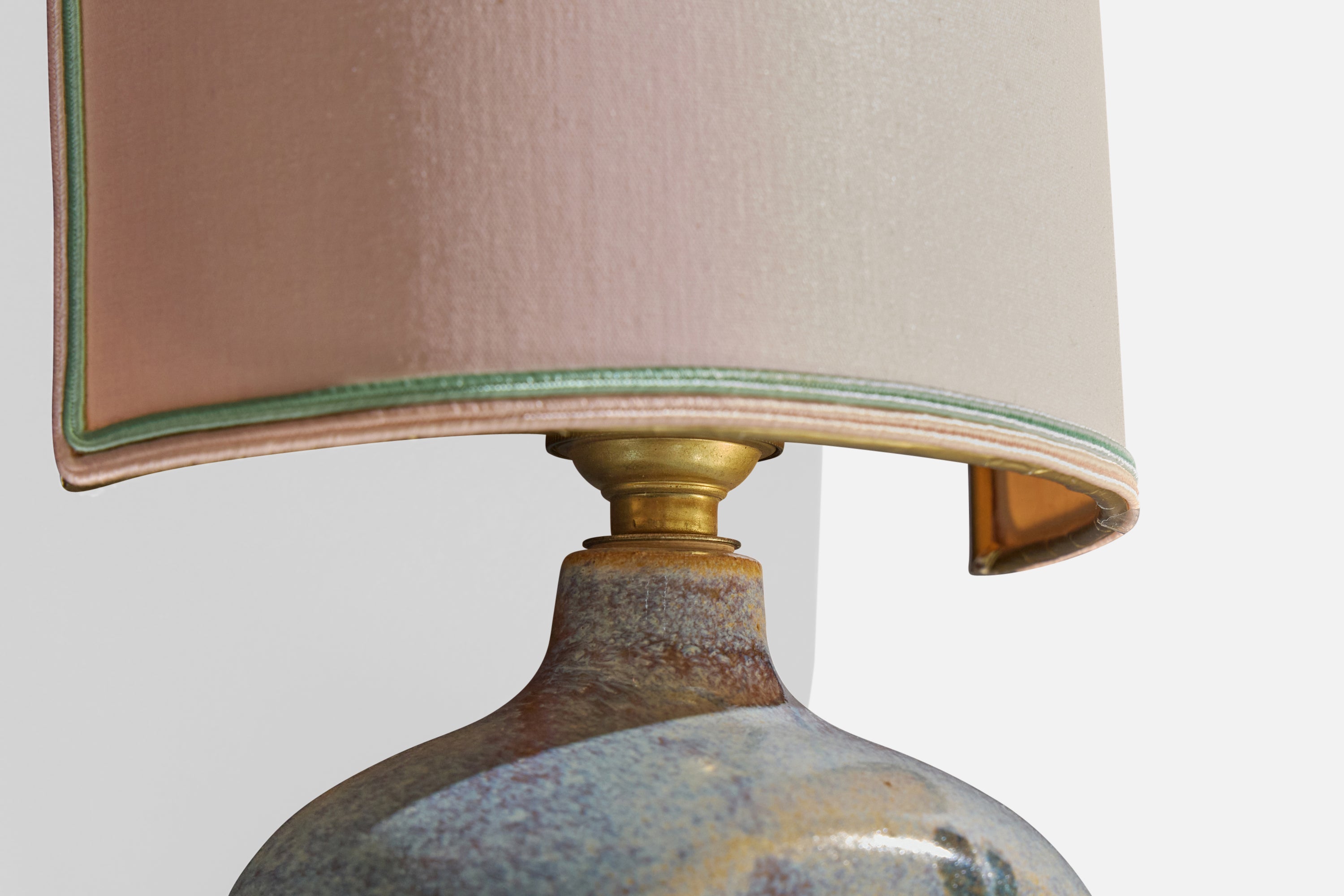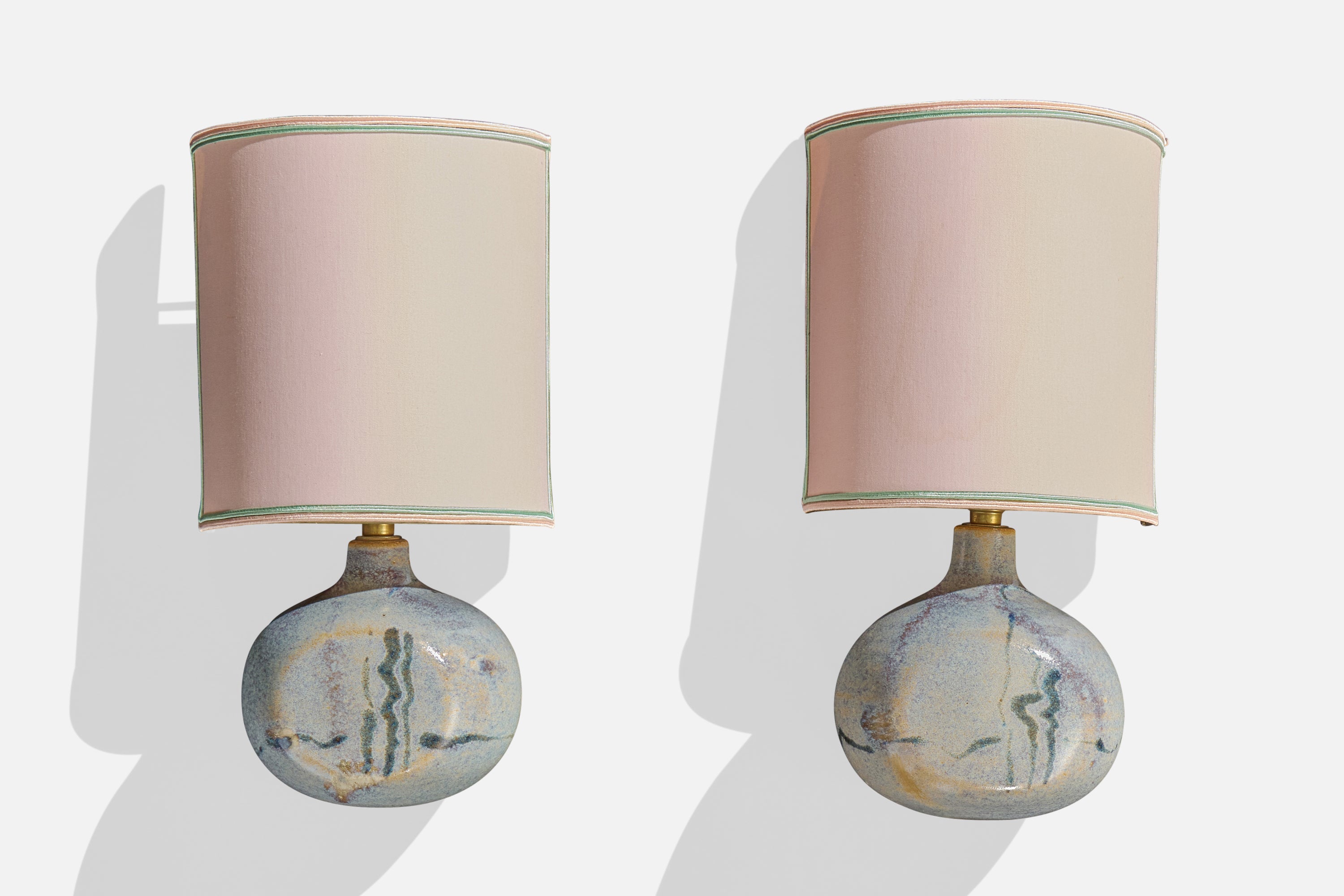 French Designer, Wall Lights, Ceramic, Brass, Fabric, France, 1950s