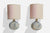 A pair of hand-painted ceramic, brass and pink fabric wall lights designed and produced in France, c. 1950s.