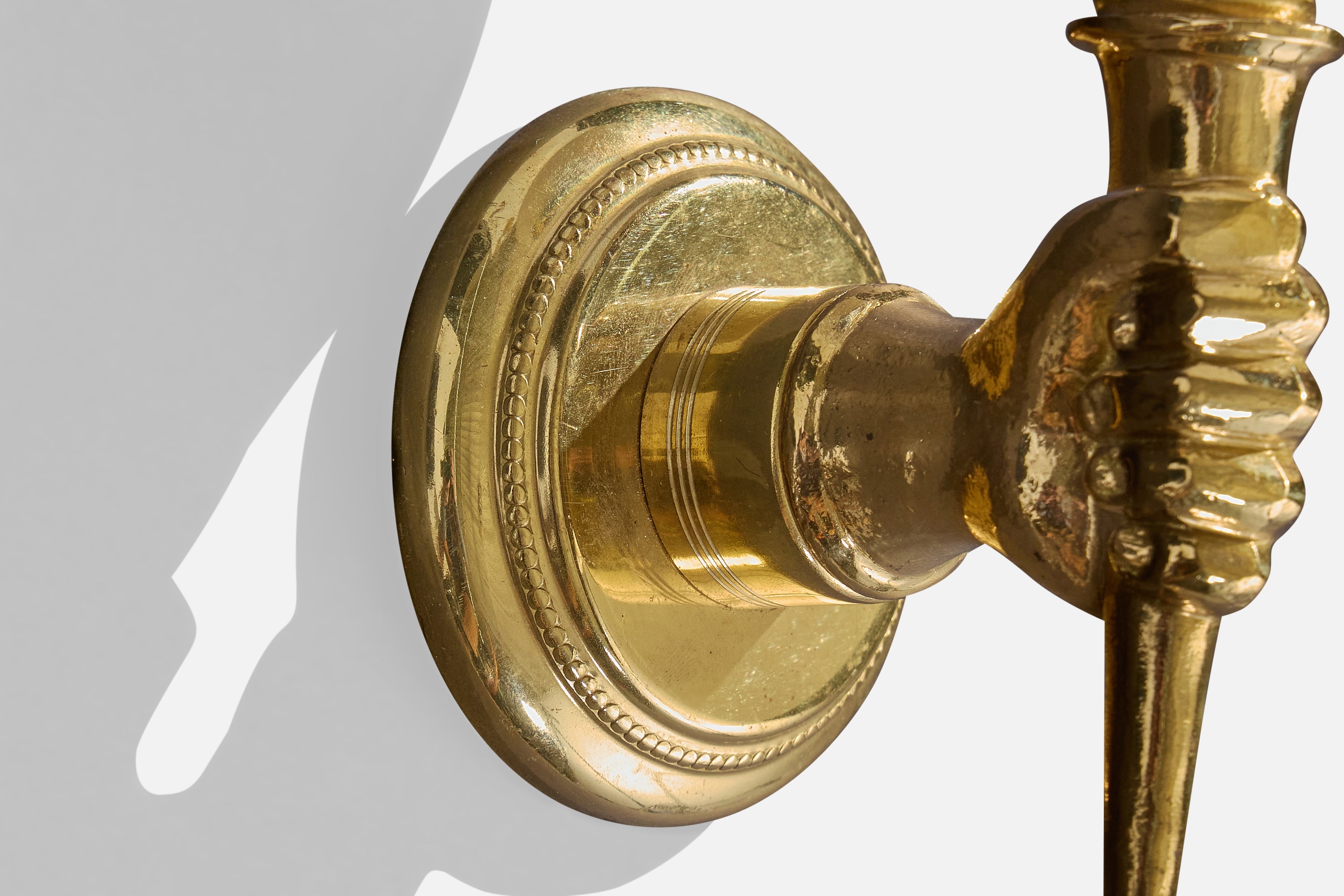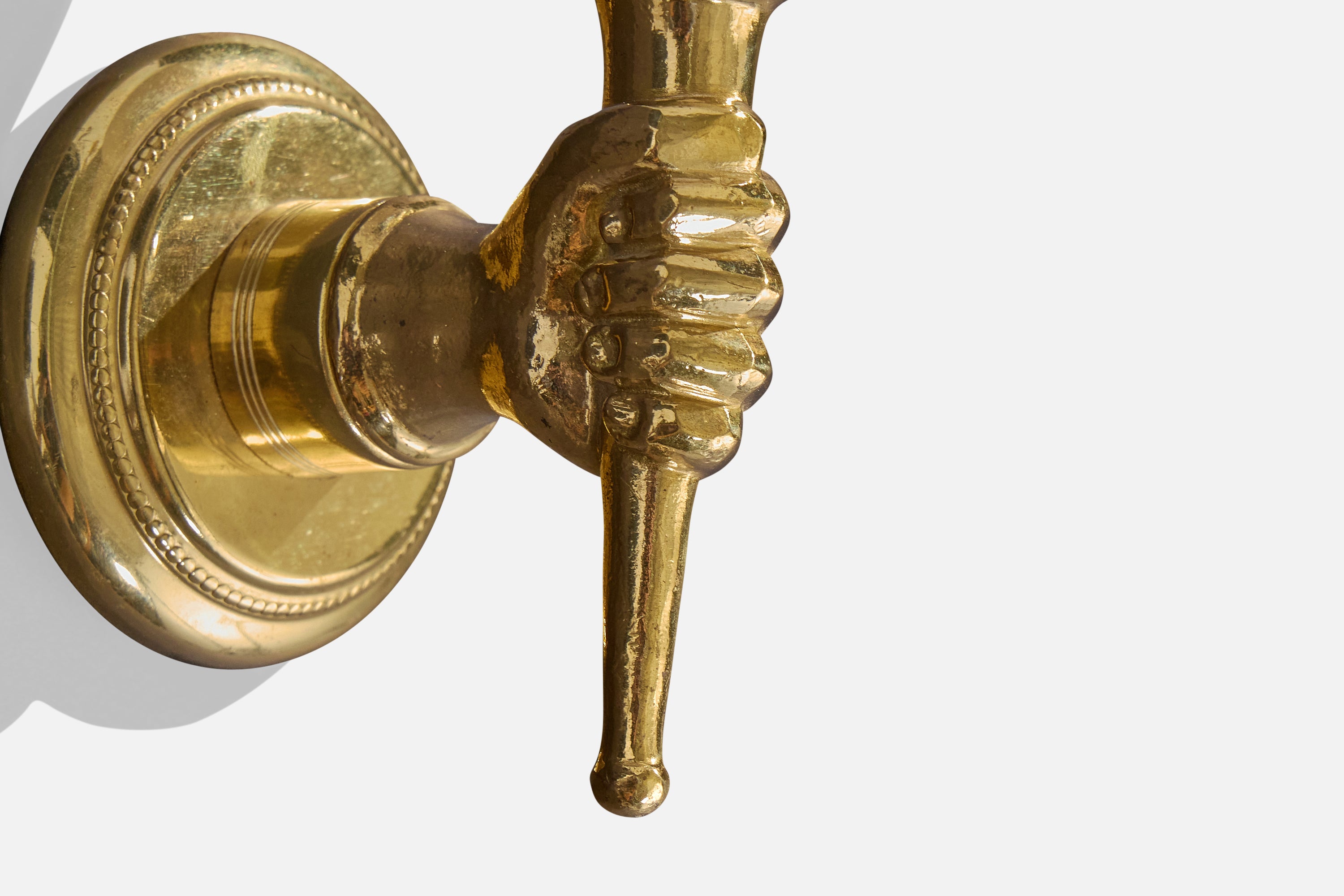 French Designer, Wall Lights, Brass, Glass, France, 1950s