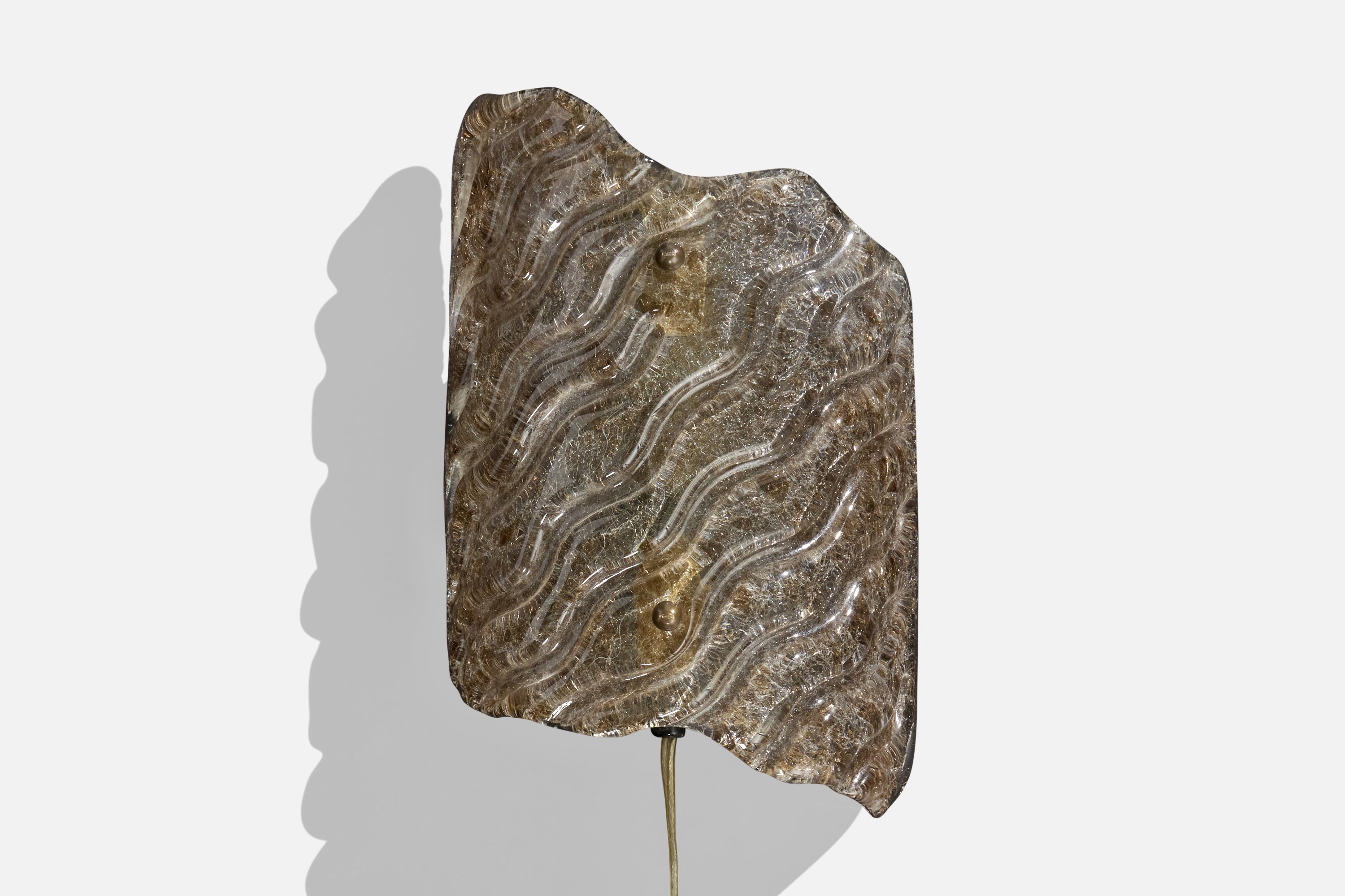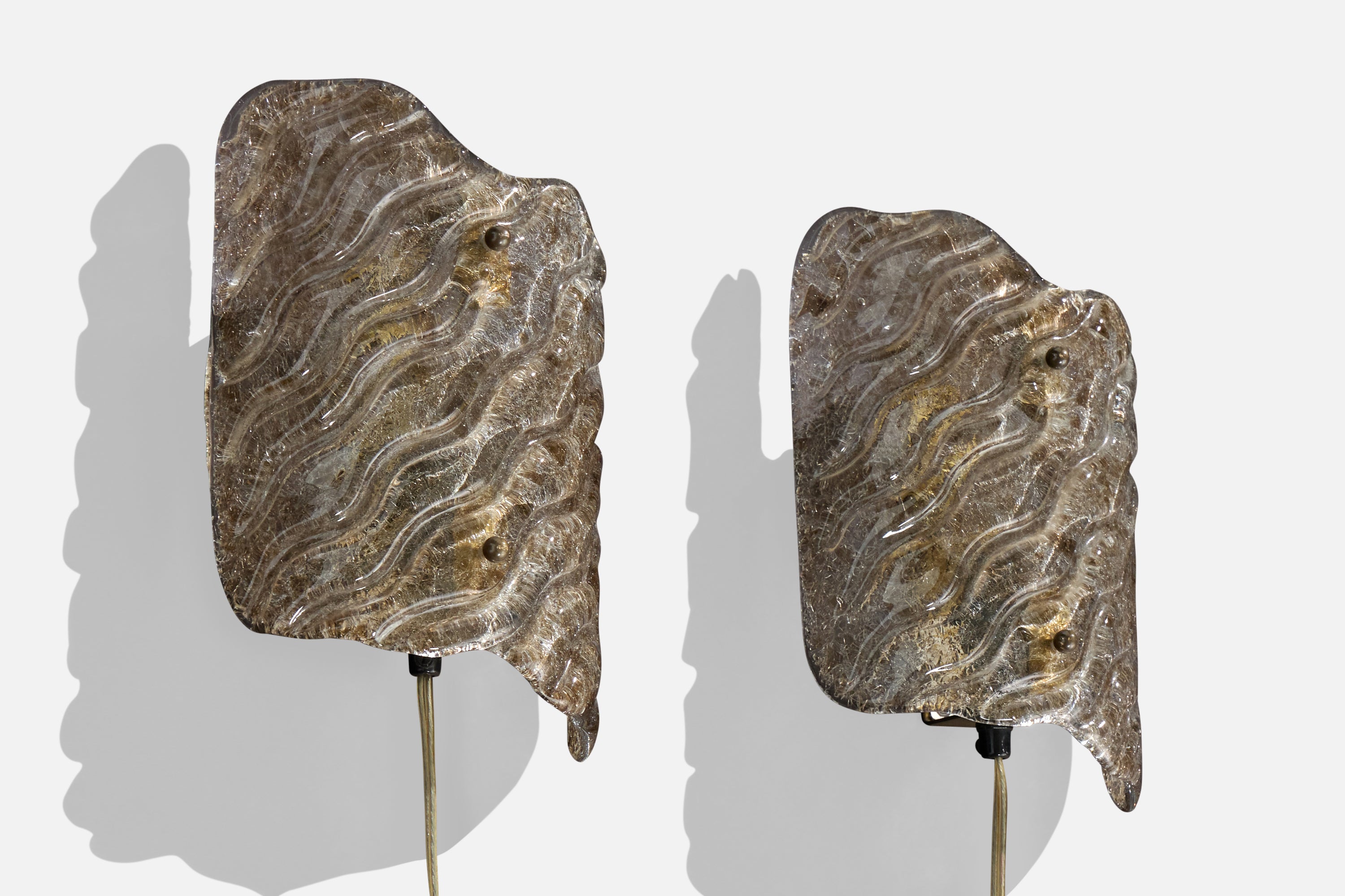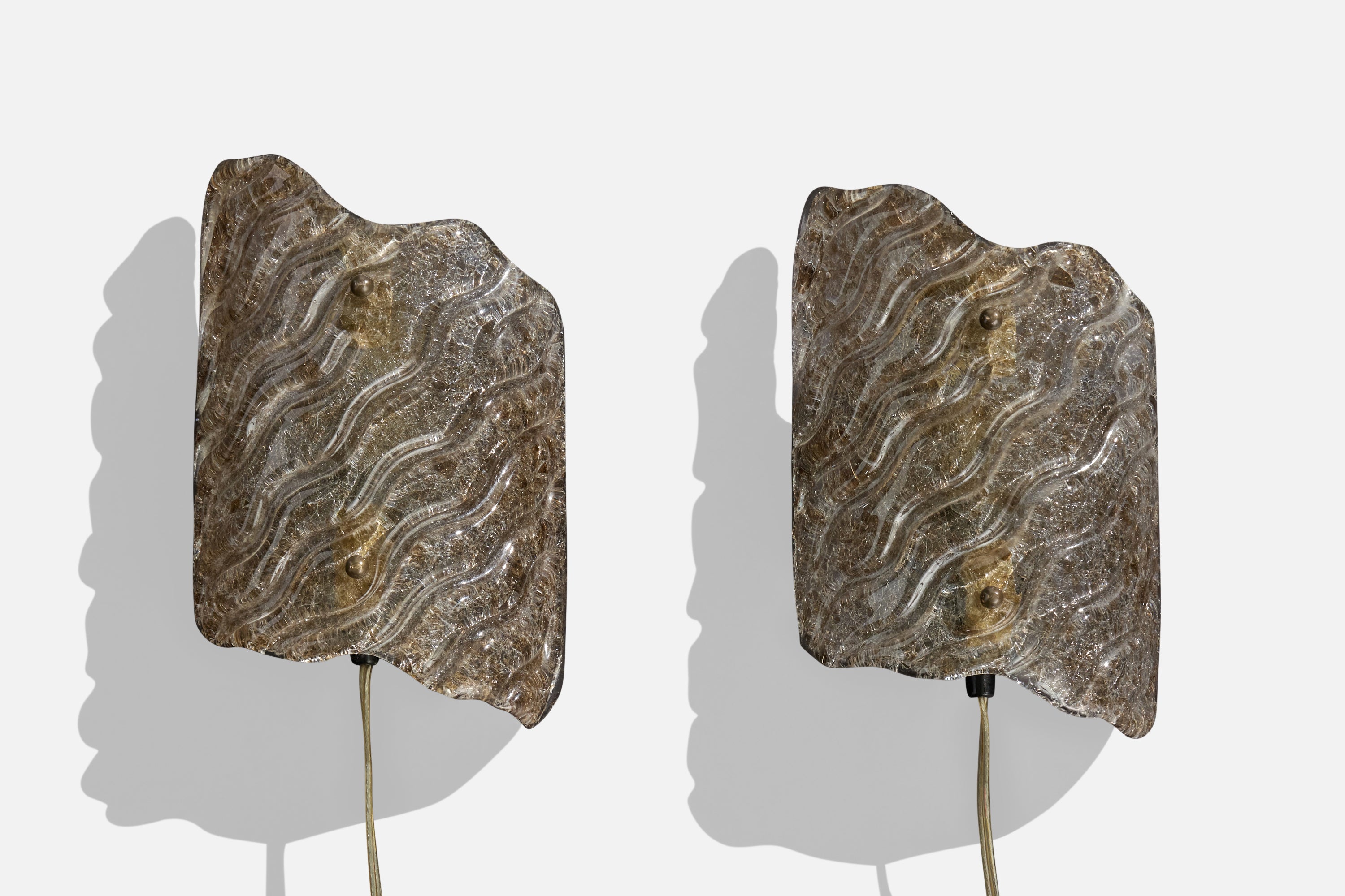 Italian Designer, Wall Lights, Glass, Brass, Italy, 1960s