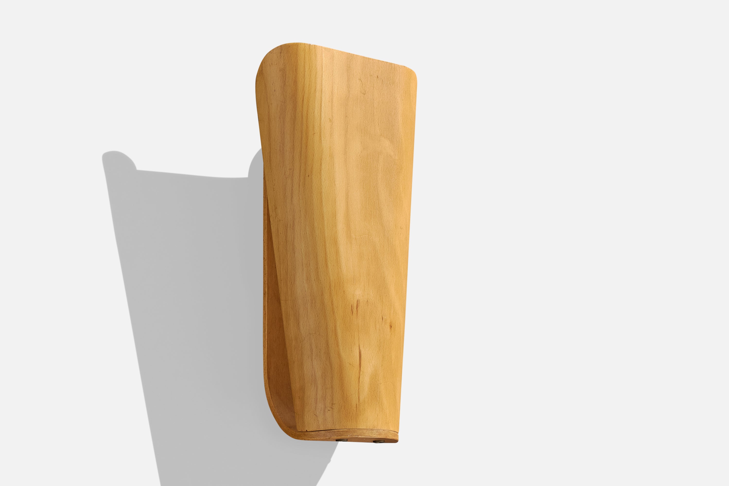 A pair of moulded bentwood wall lights likely designed and produced in Denmark, c. 1970s.
