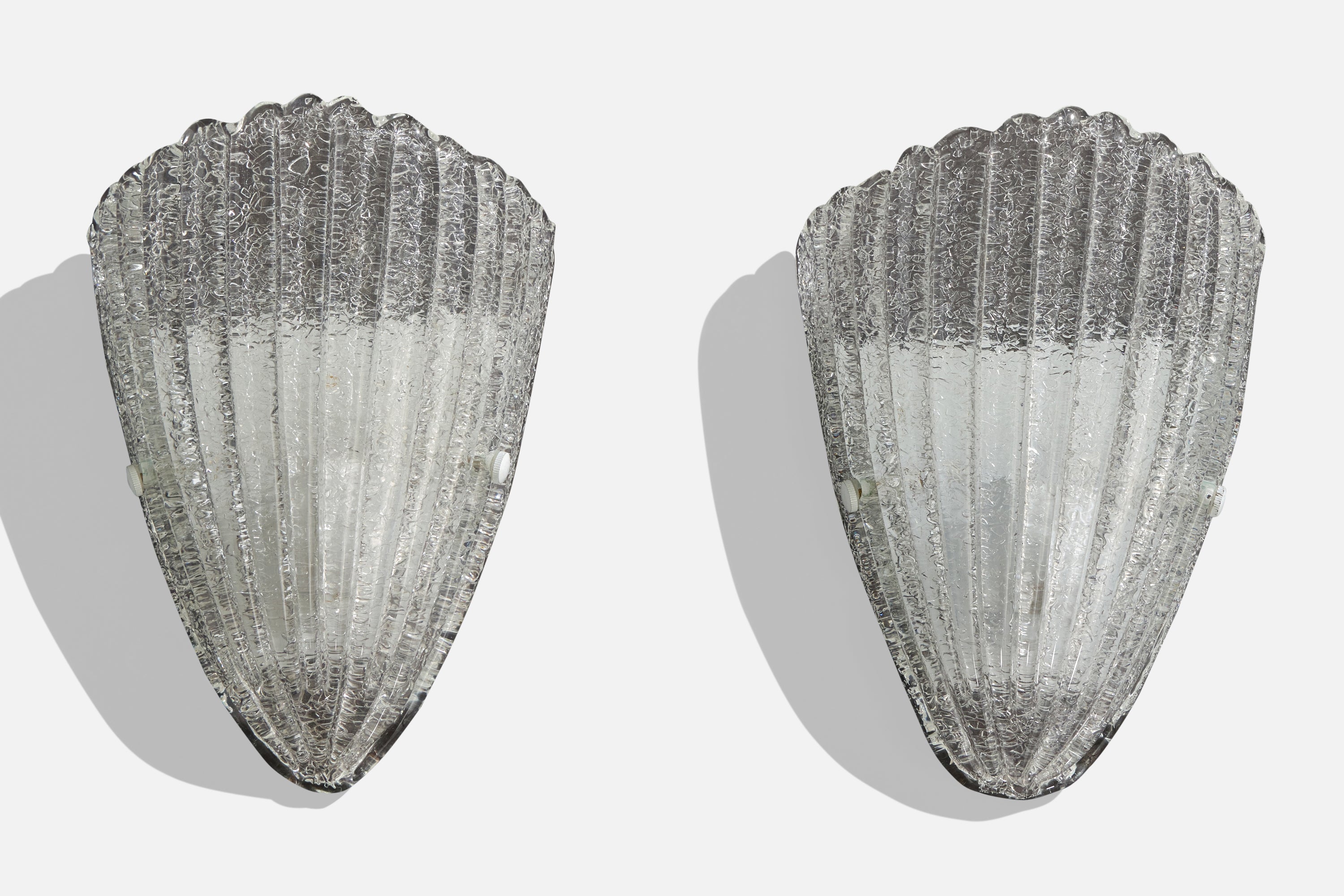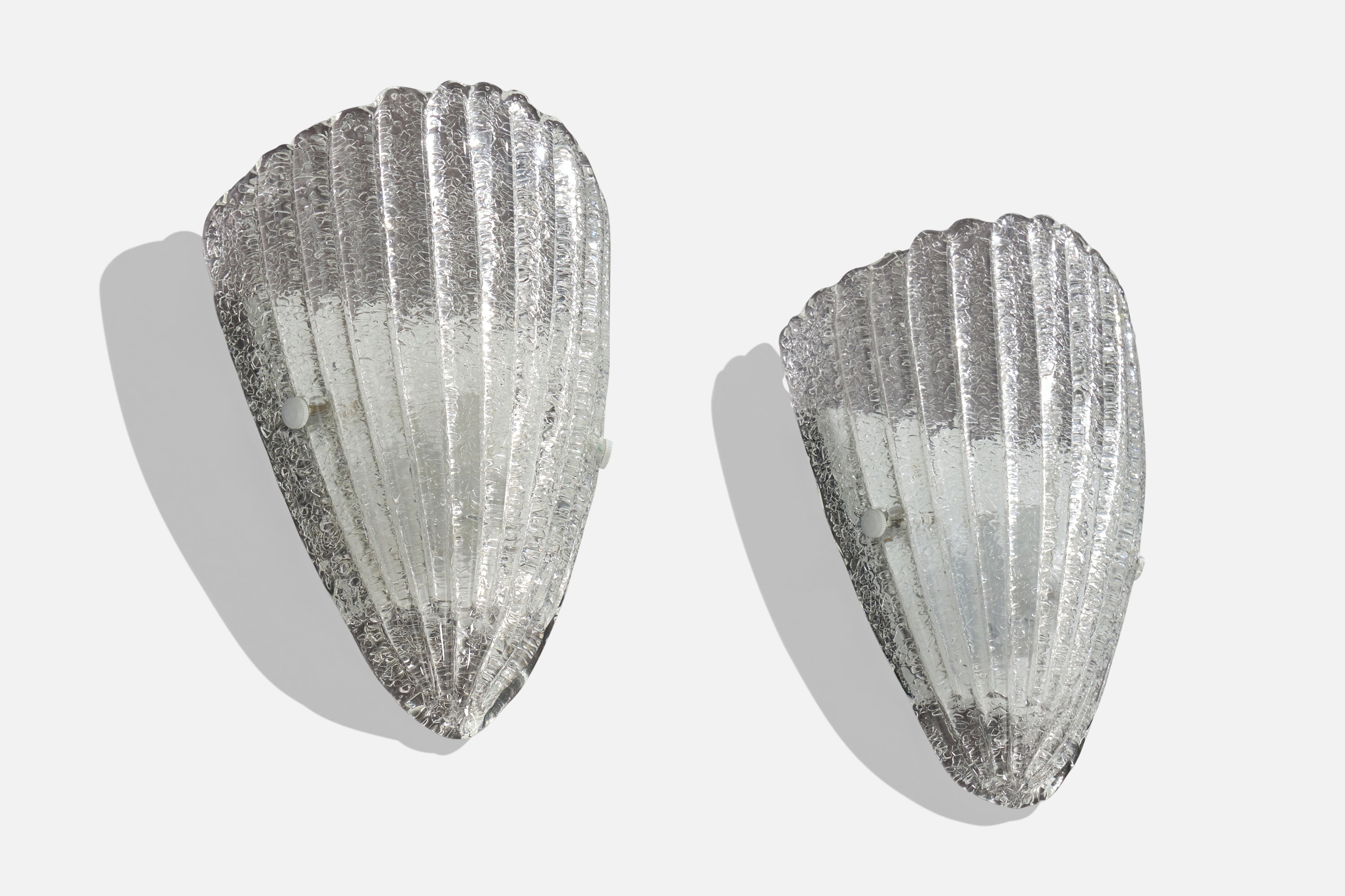 Italian Designer, Wall Lights, Glass, Metal, Italy, 1970s