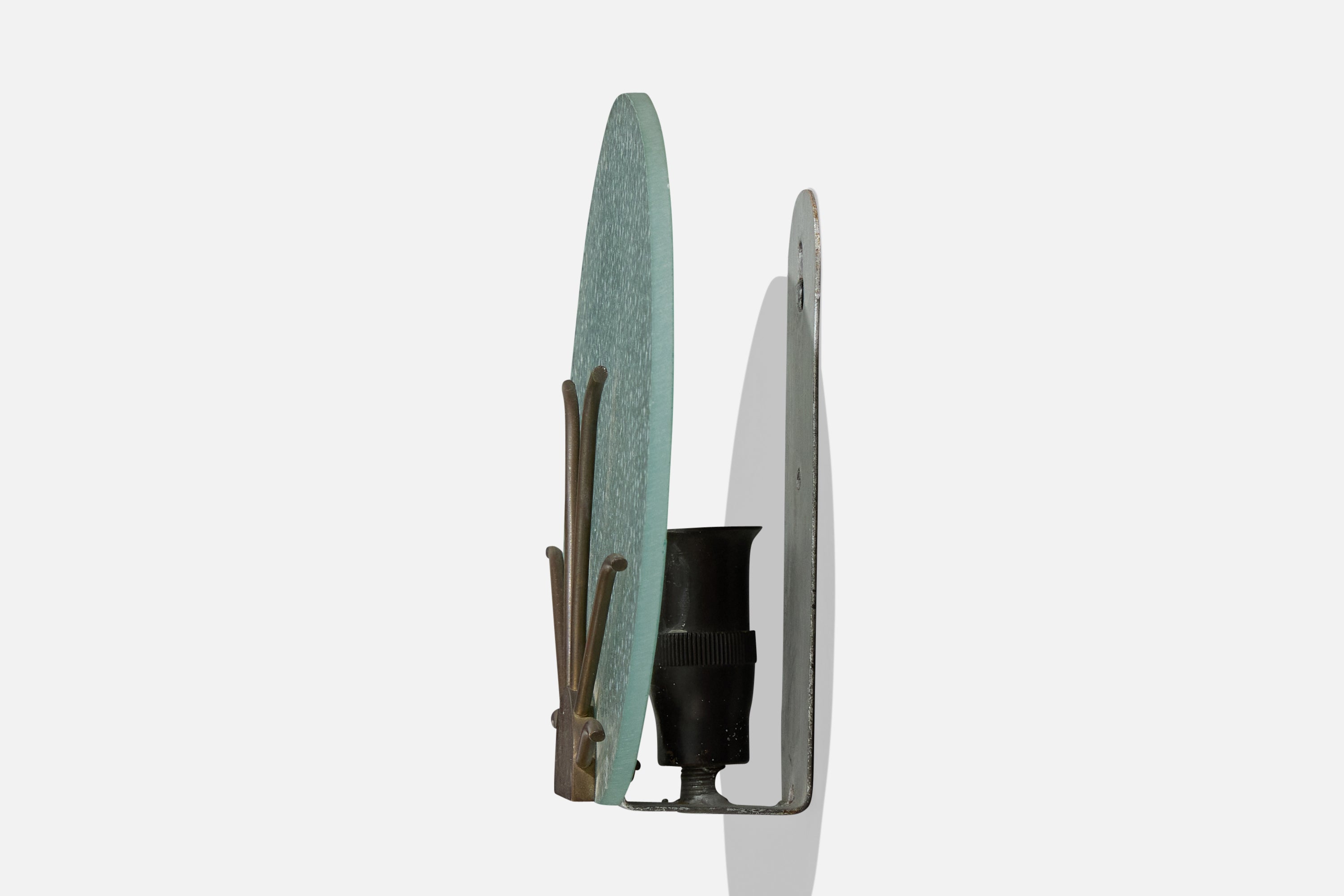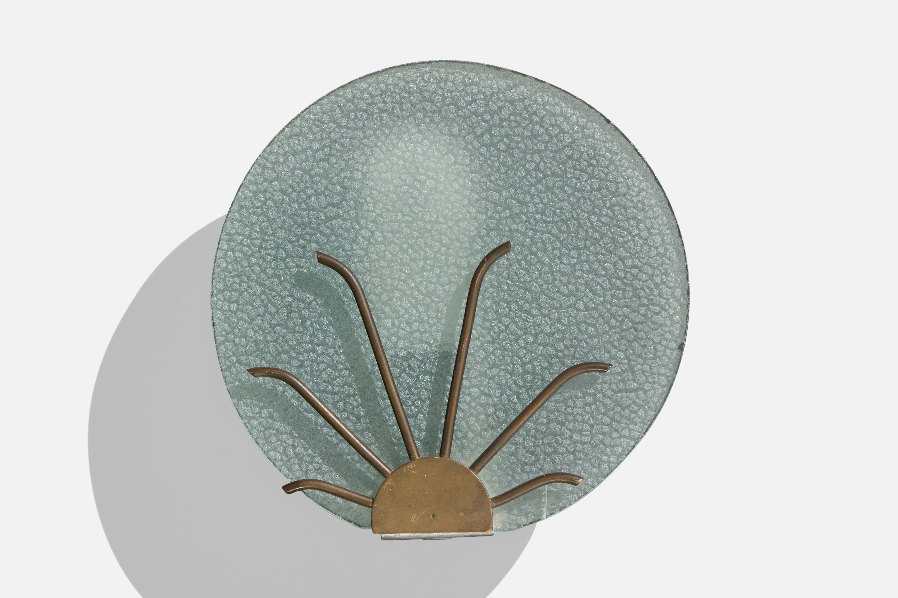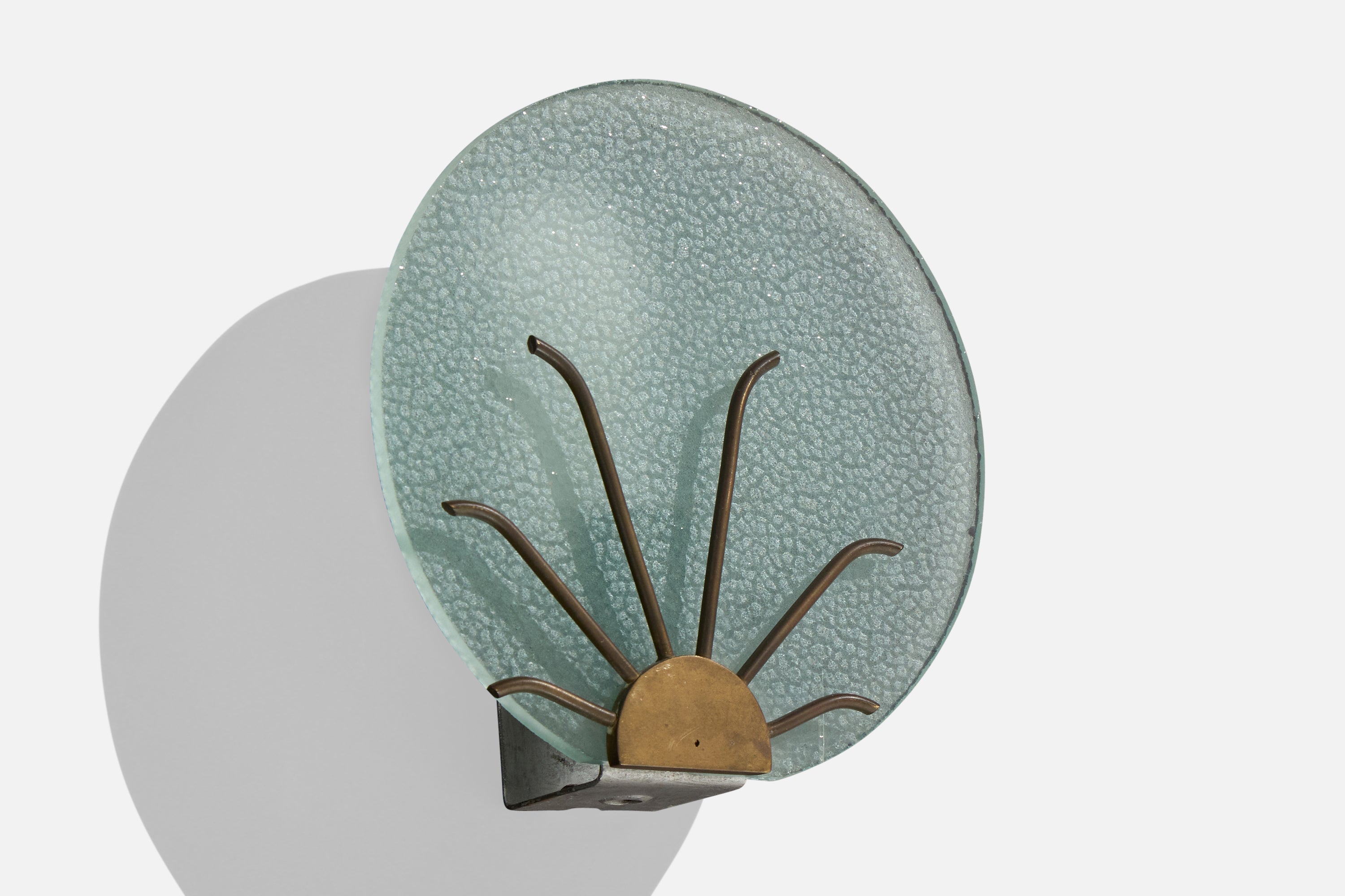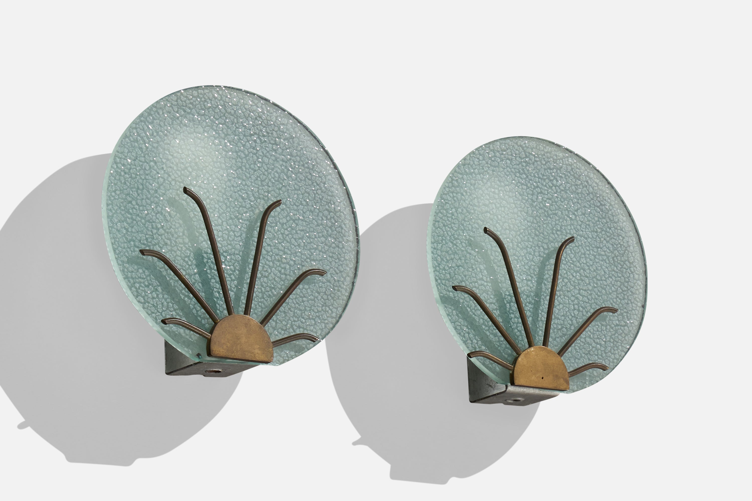 Danish Designer, Wall Lights, Glass, Brass, Denmark, 1940s