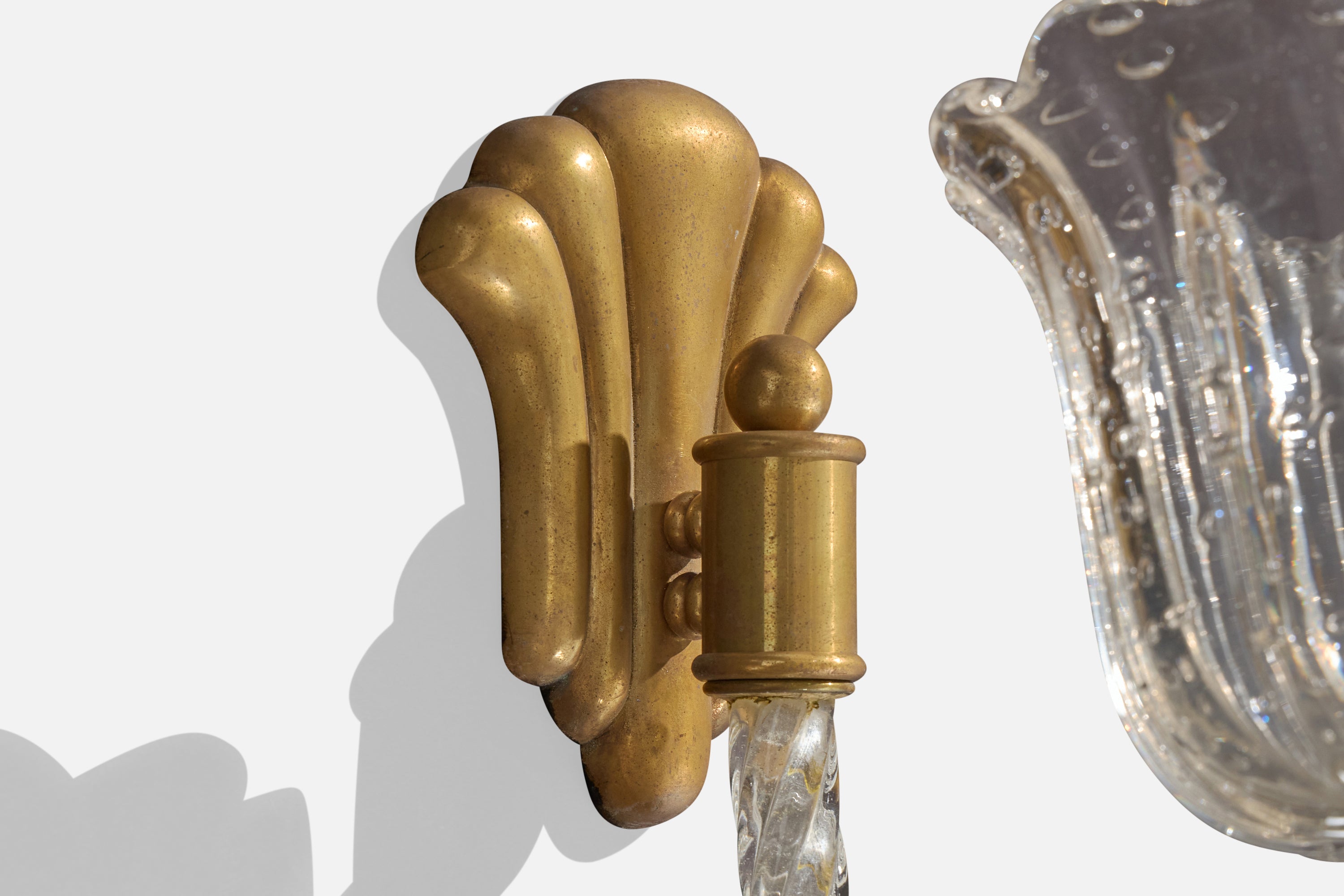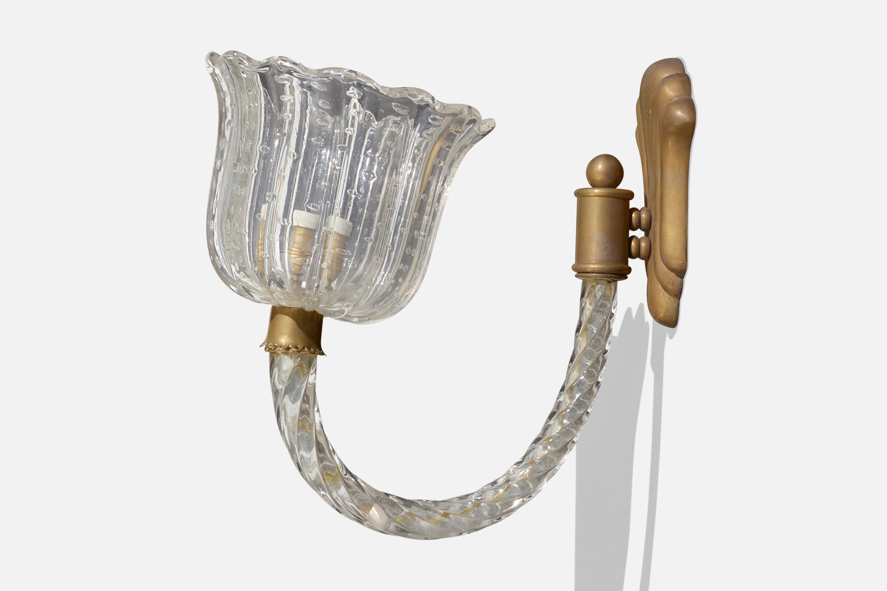 A Murano glass and brass wall light designed and produced in Italy, c. 1940s.