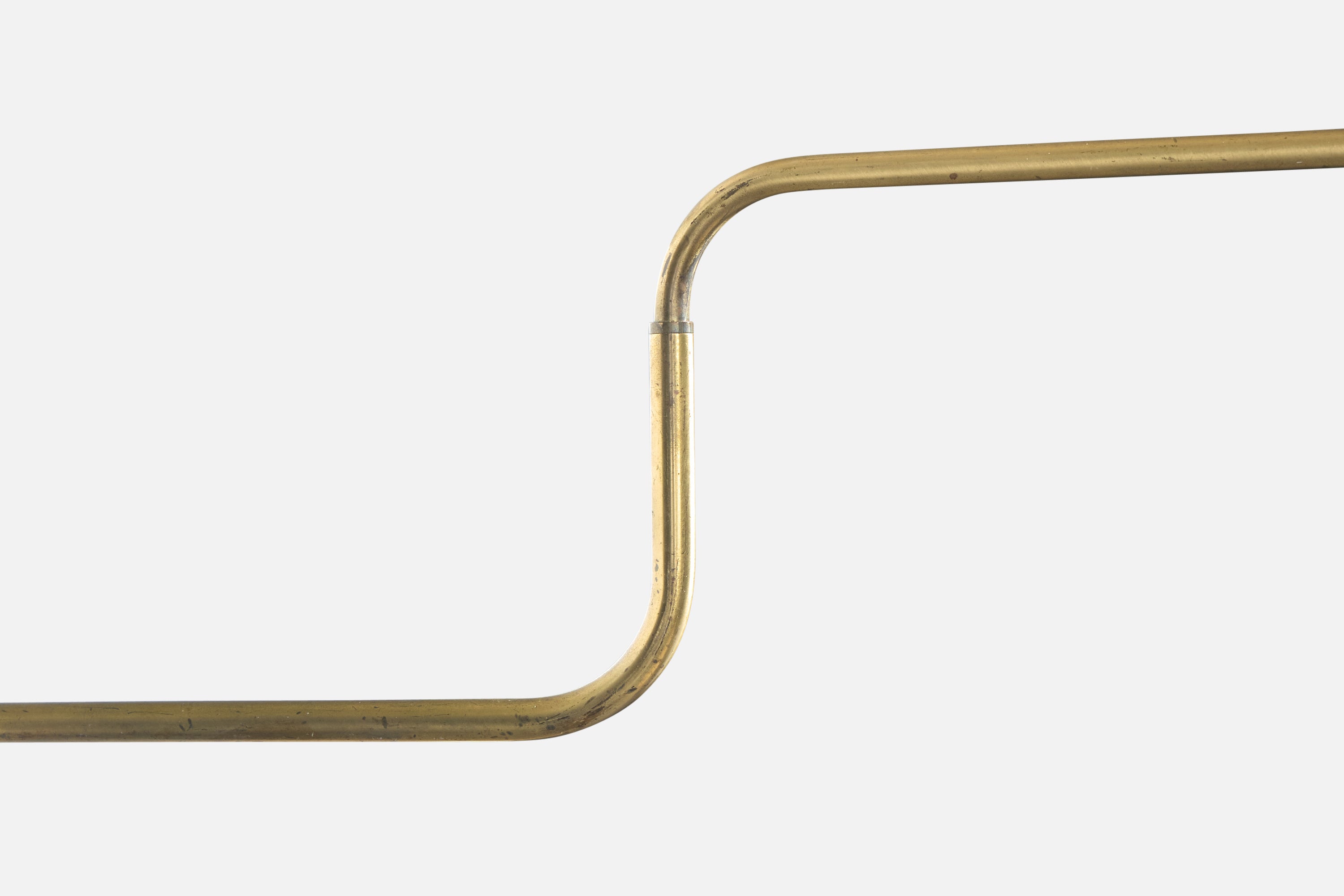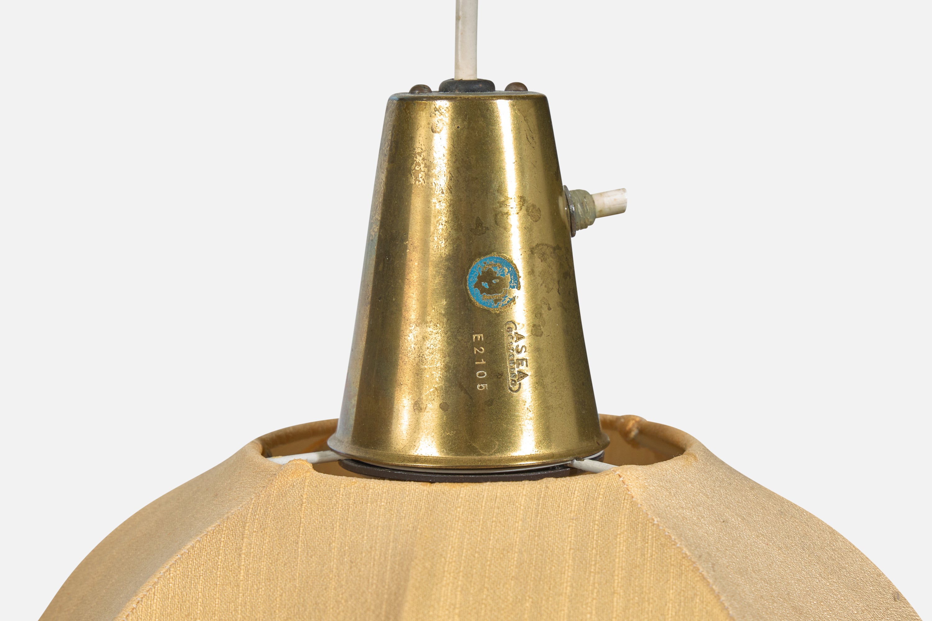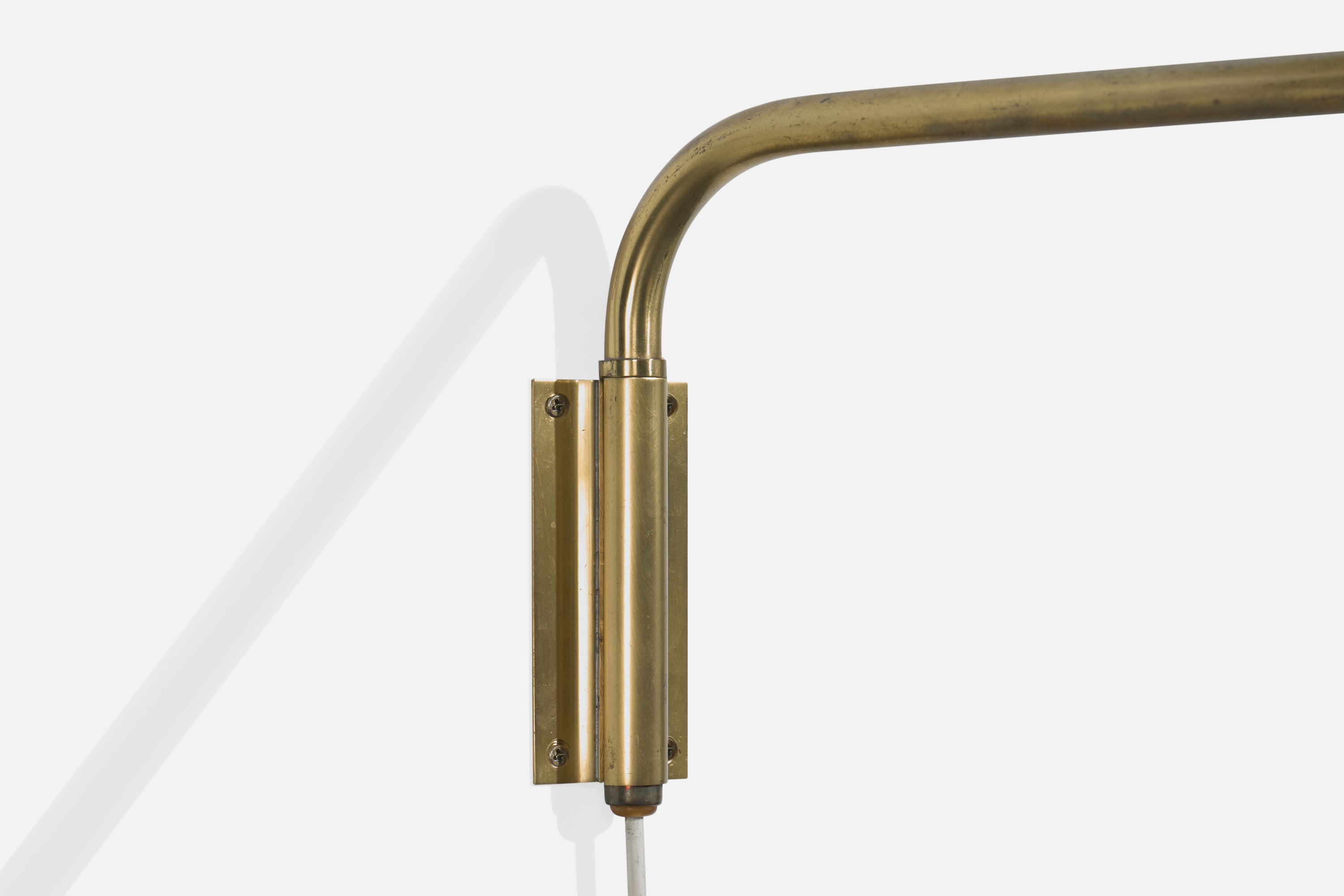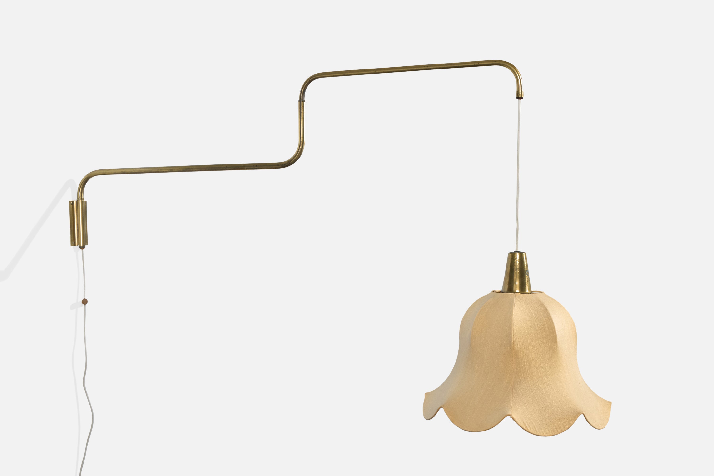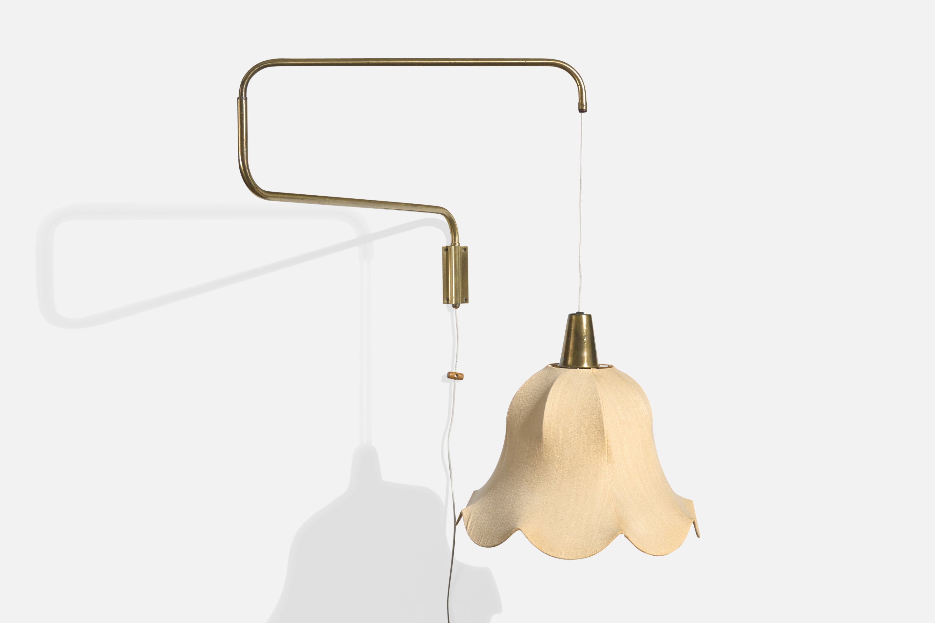An adjustable brass and beige fabric wall light produced by ASEA, Sweden, c. 1950s.