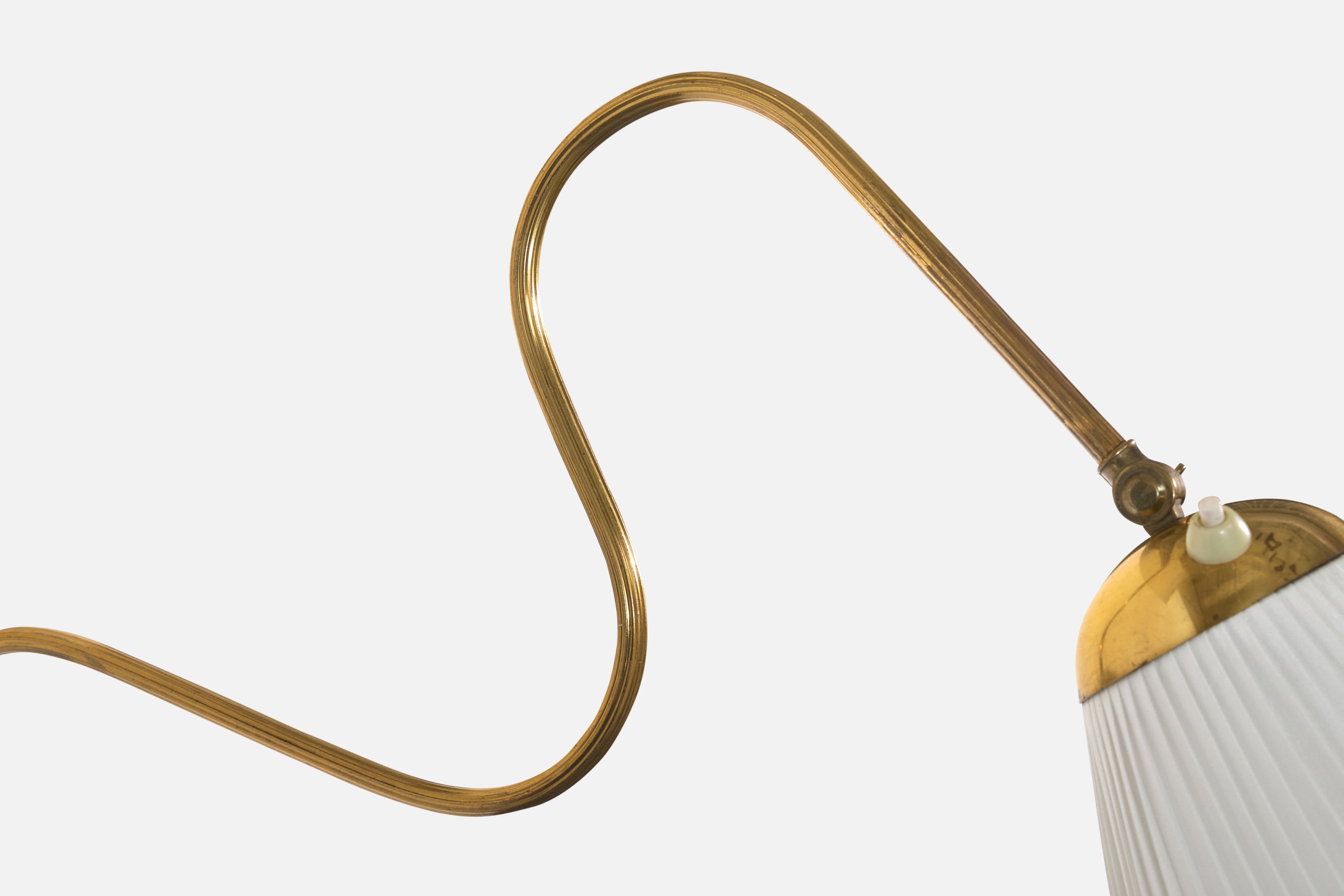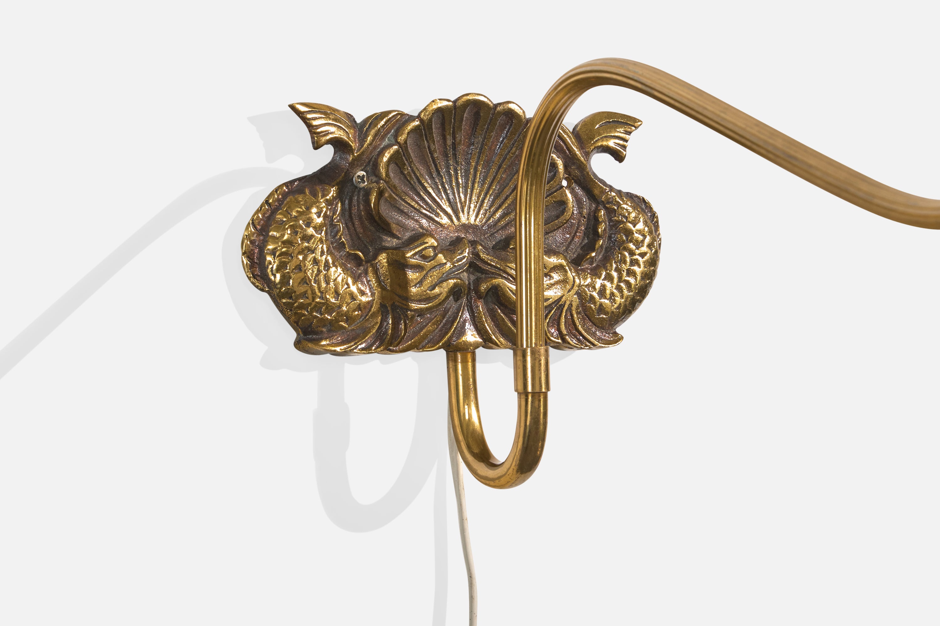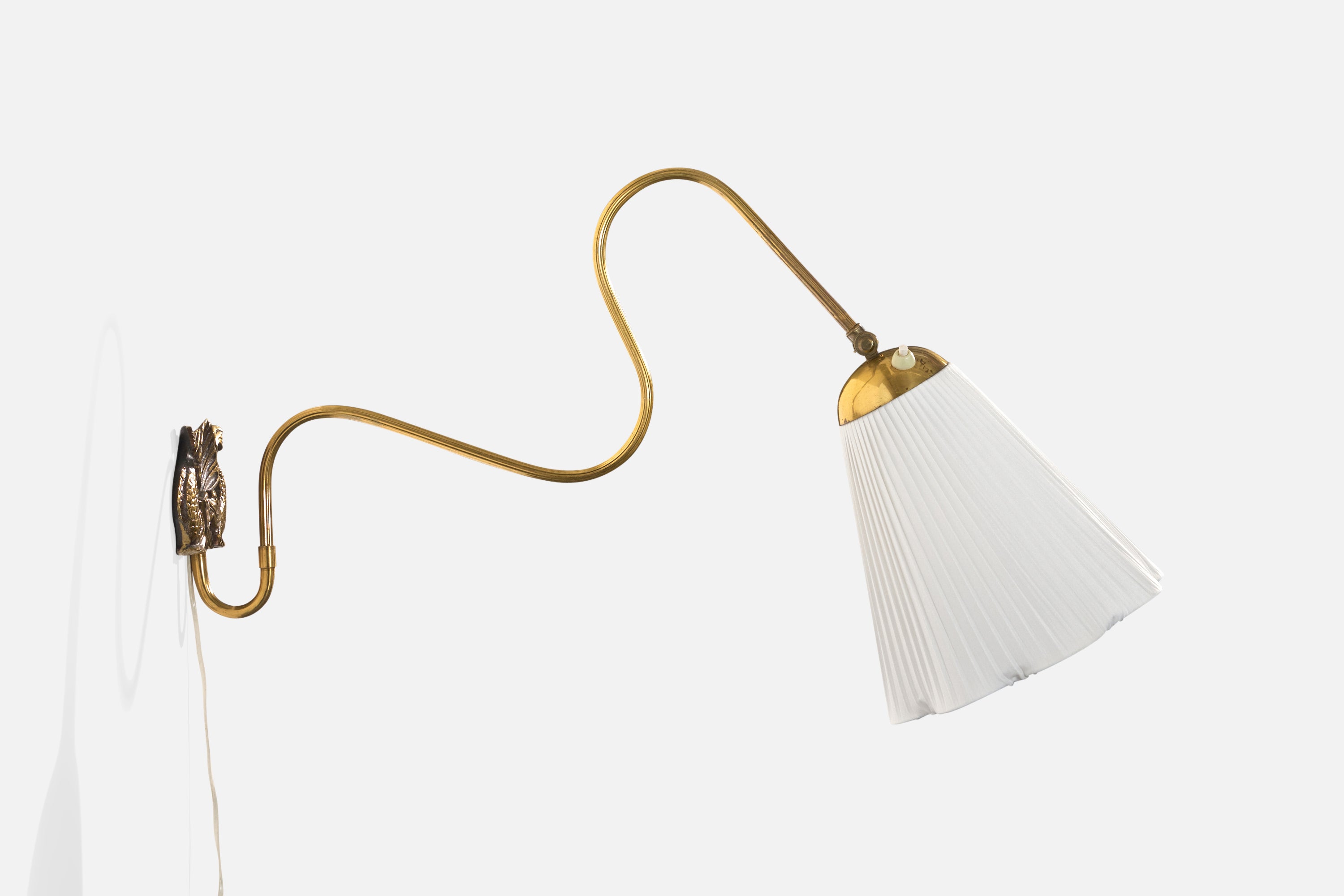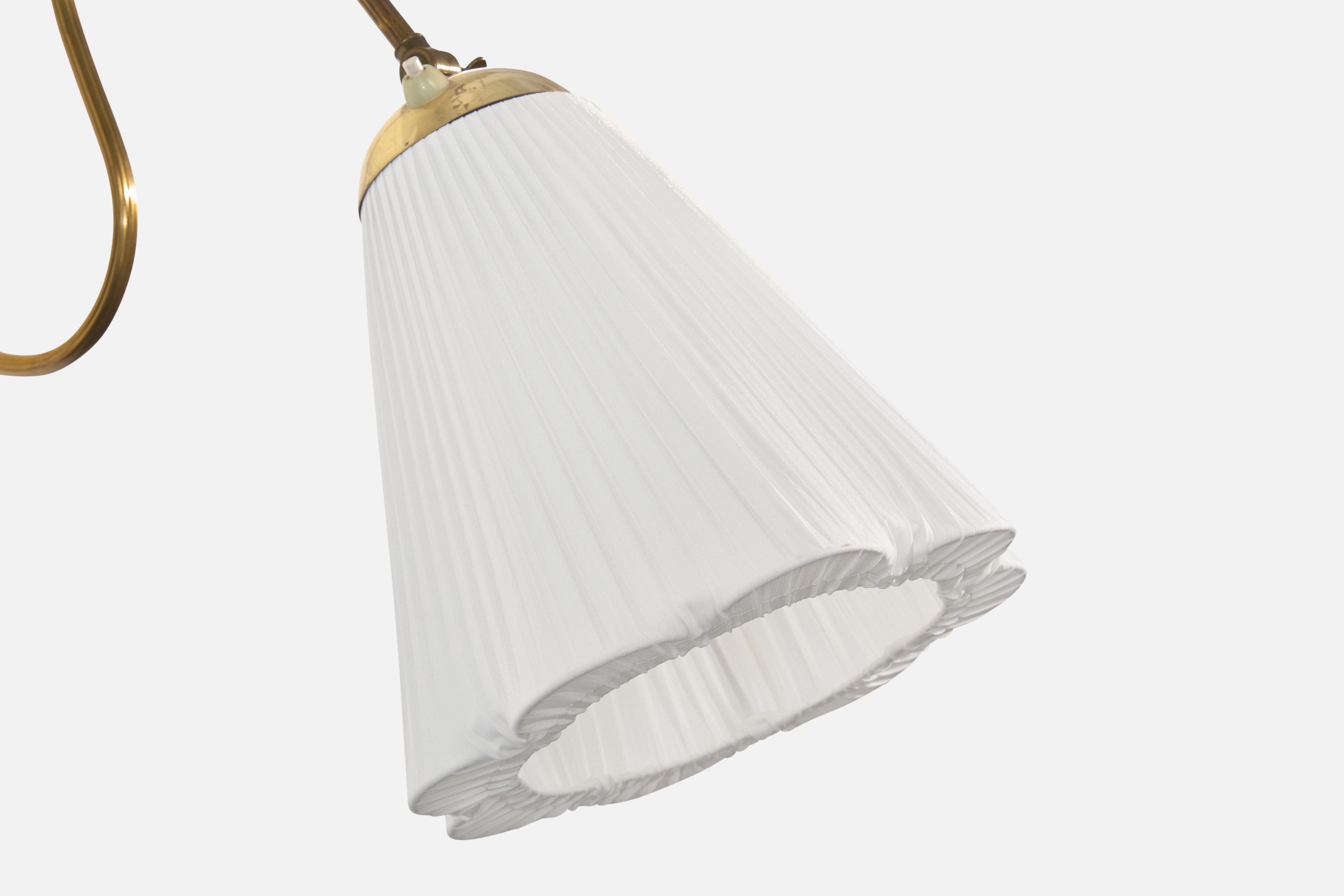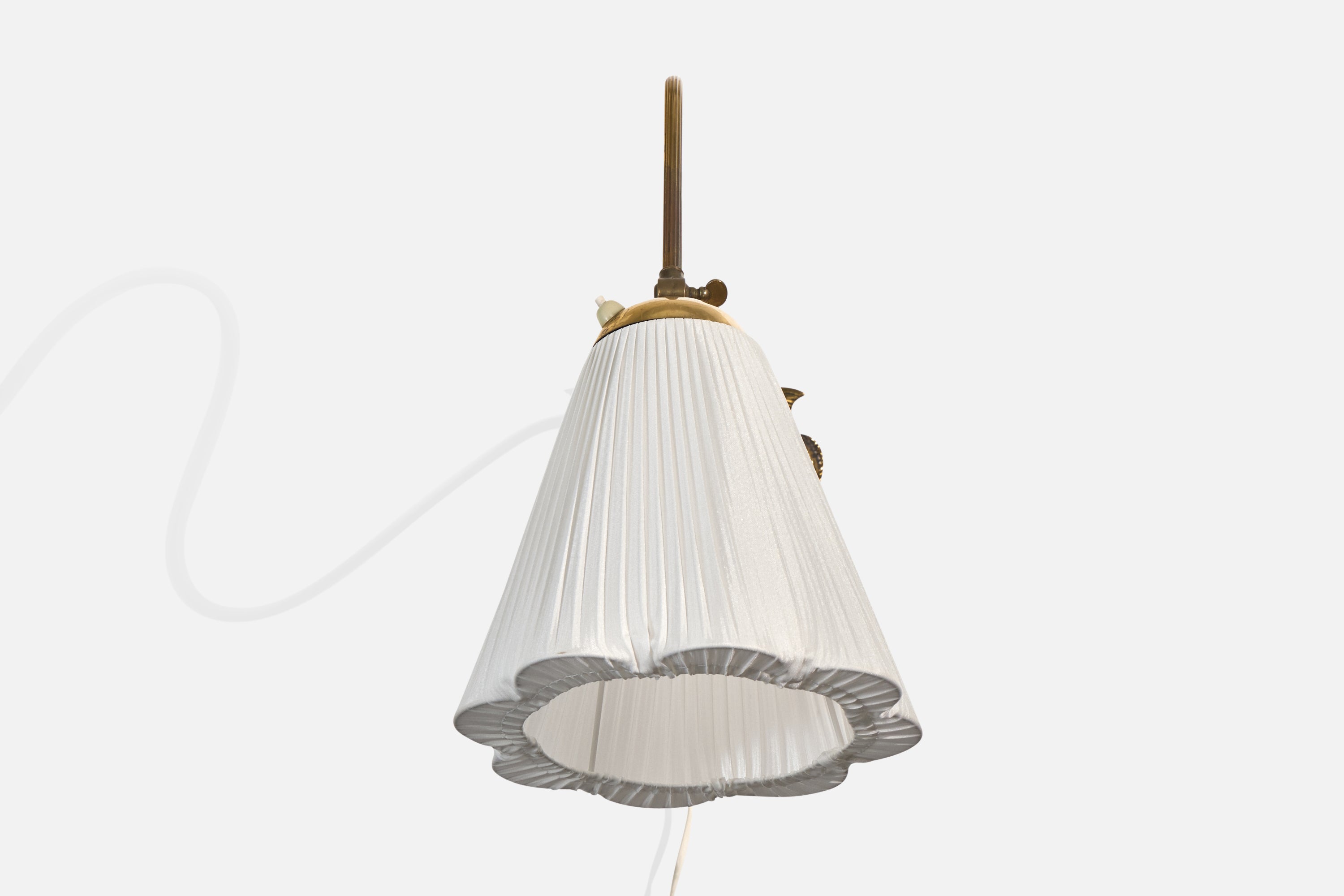 Swedish Designer, Wall Light, Brass, Fabric, Sweden, 1950s