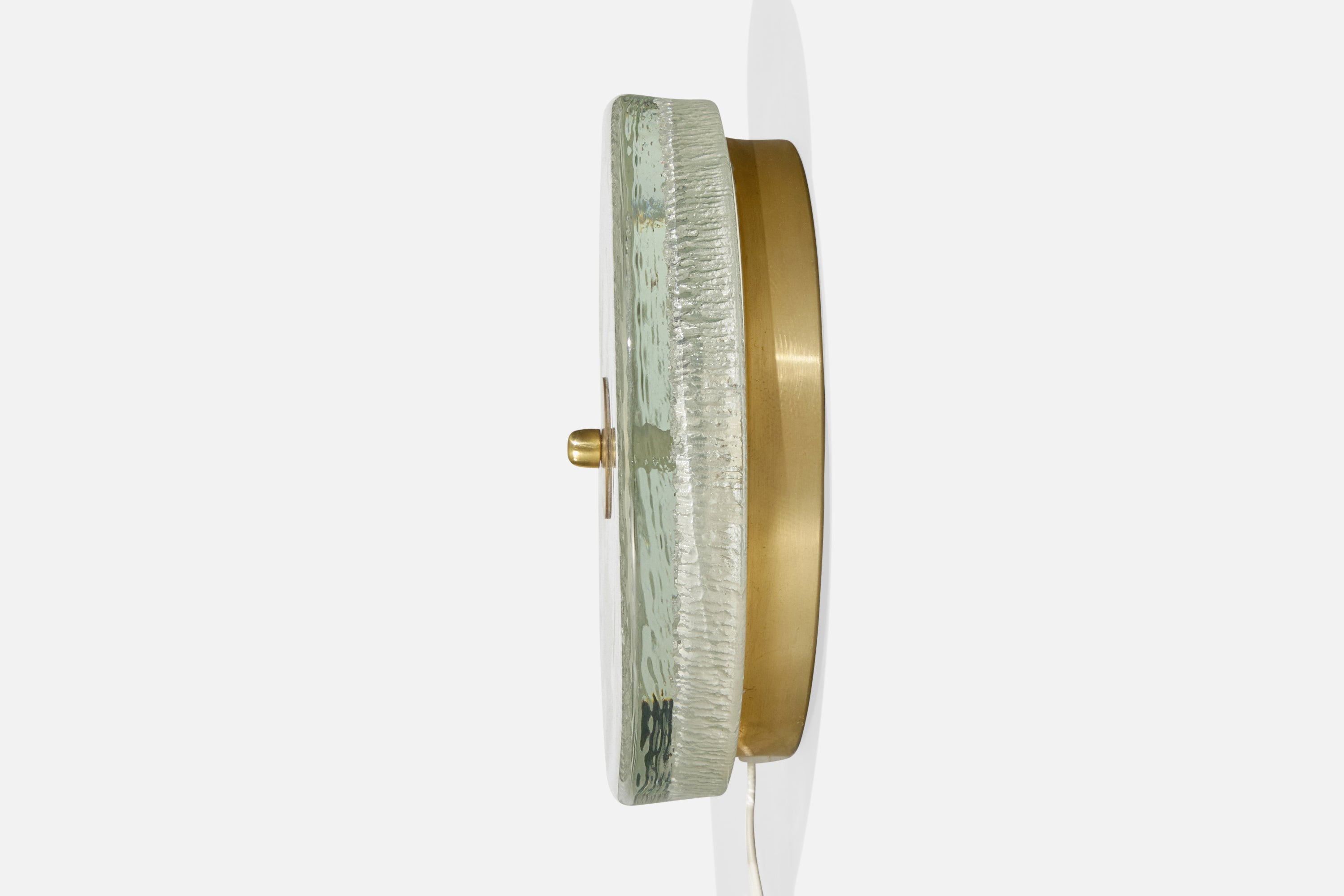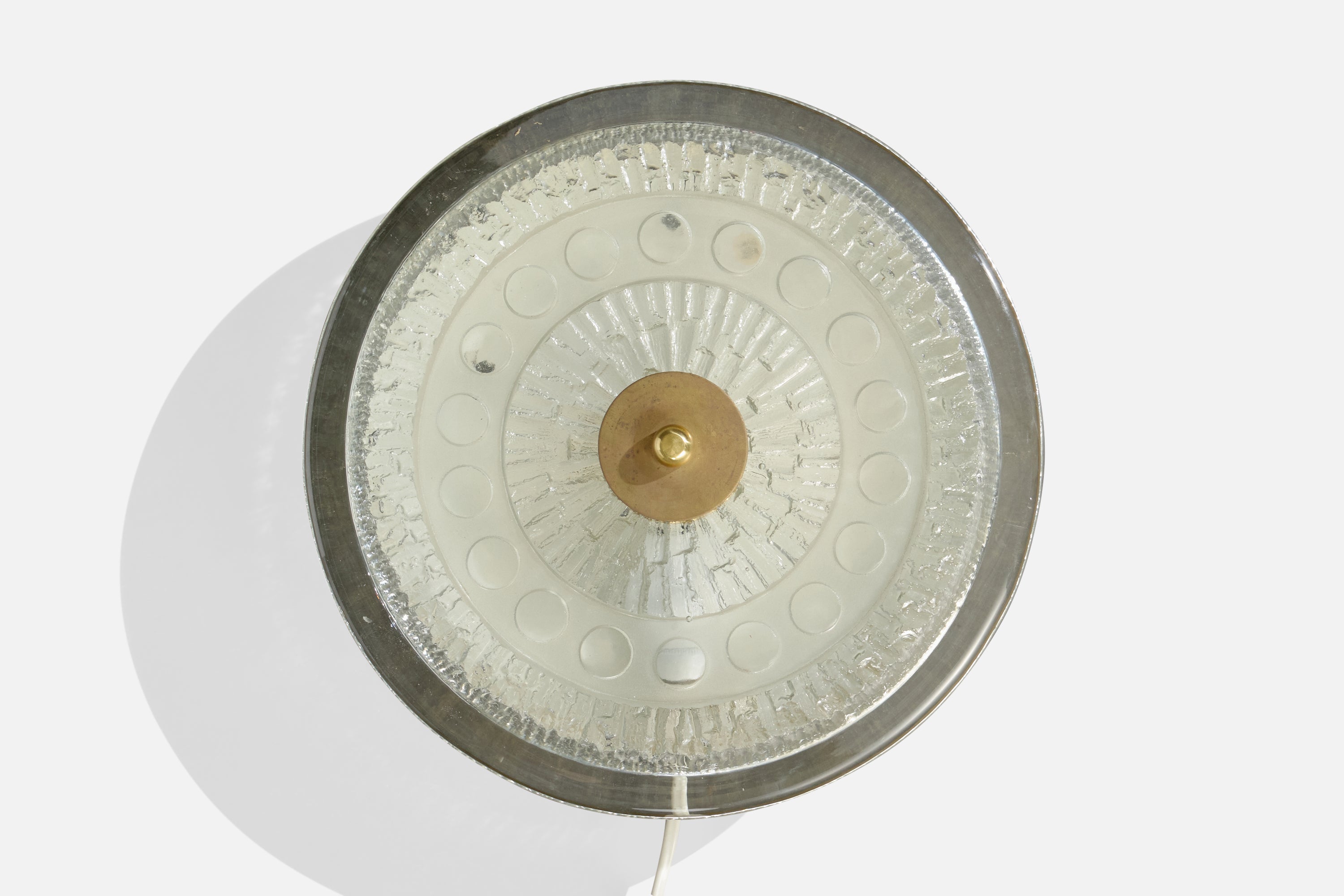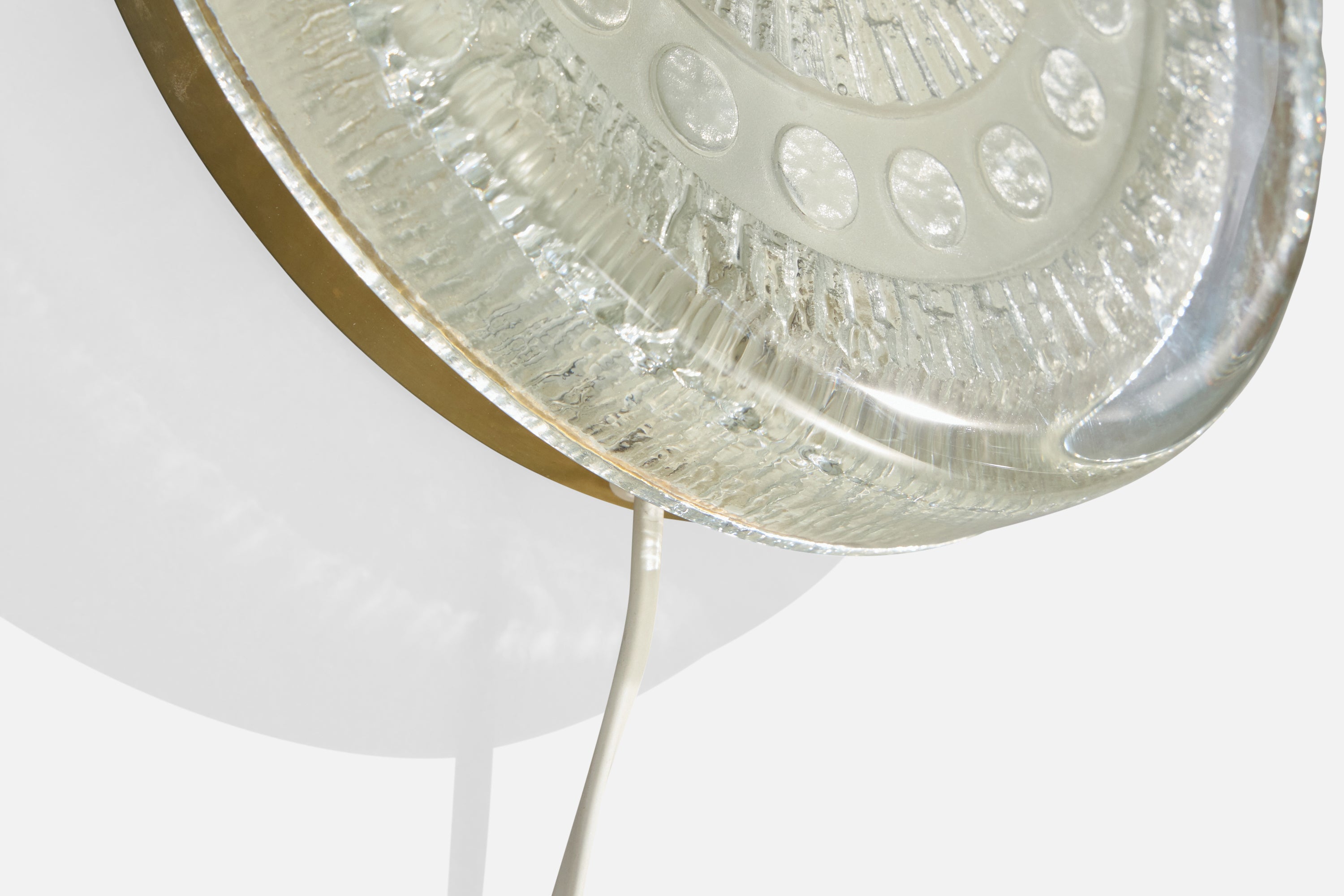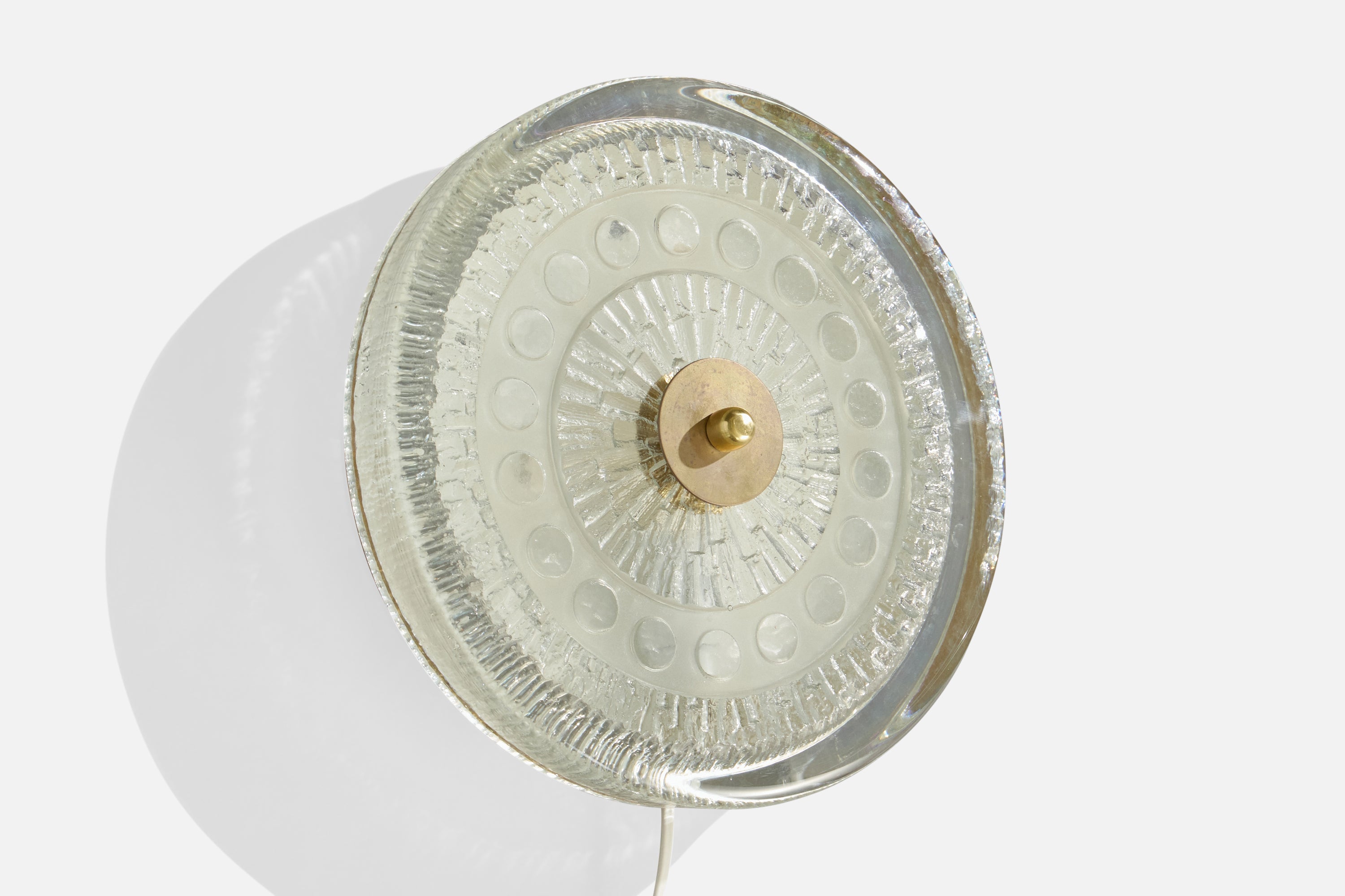 A brass and glass wall light designed and produced in Sweden, c. 1960s.