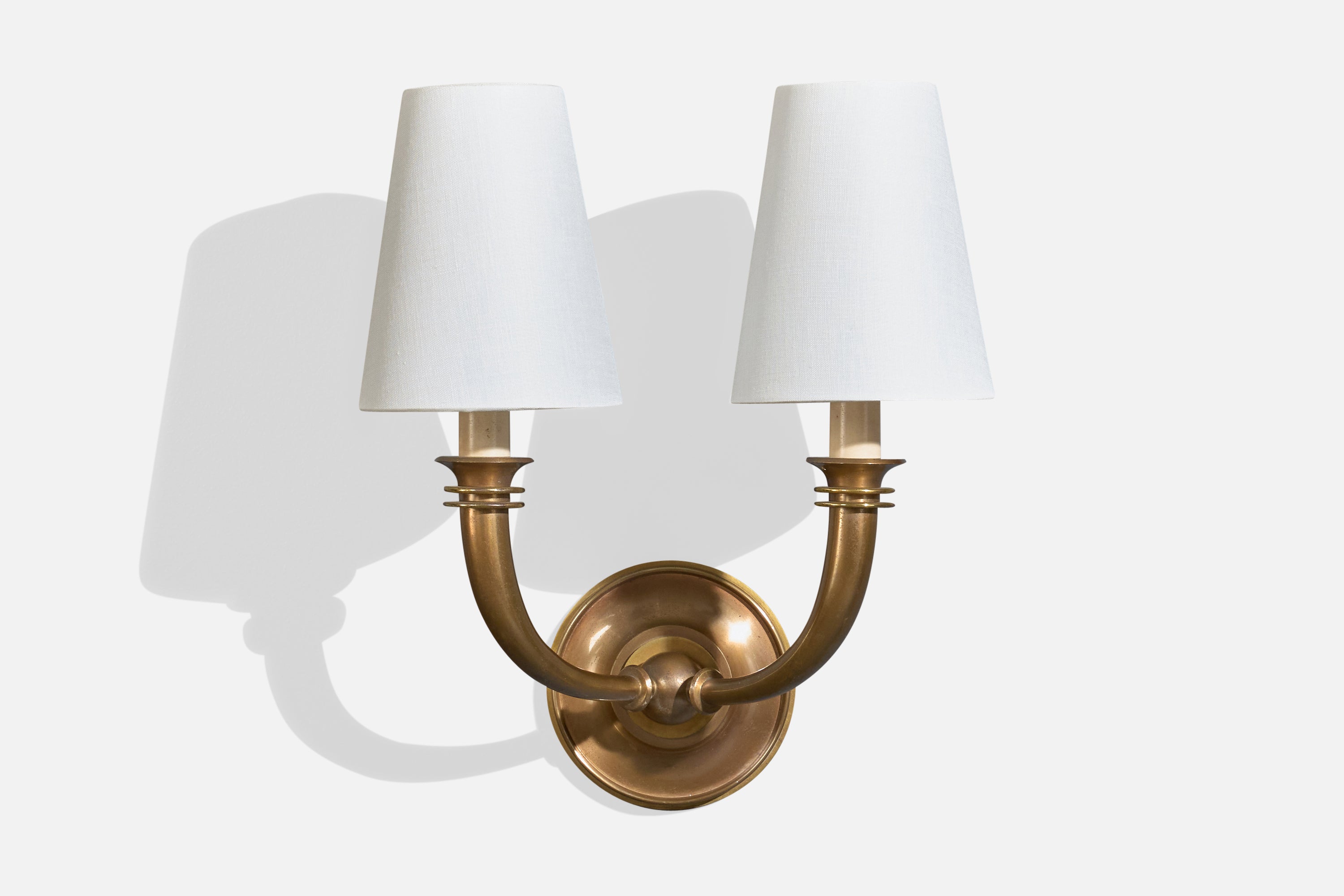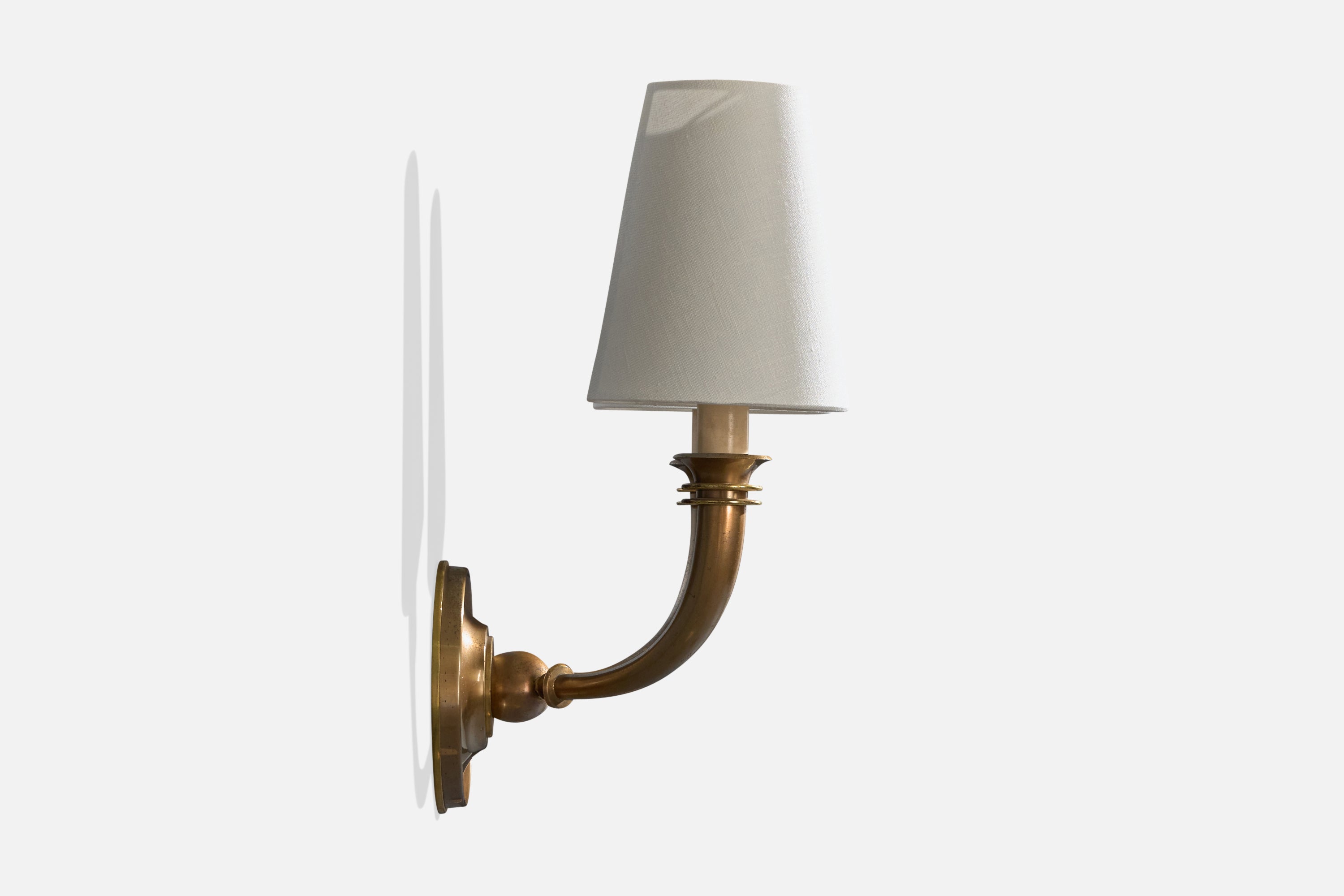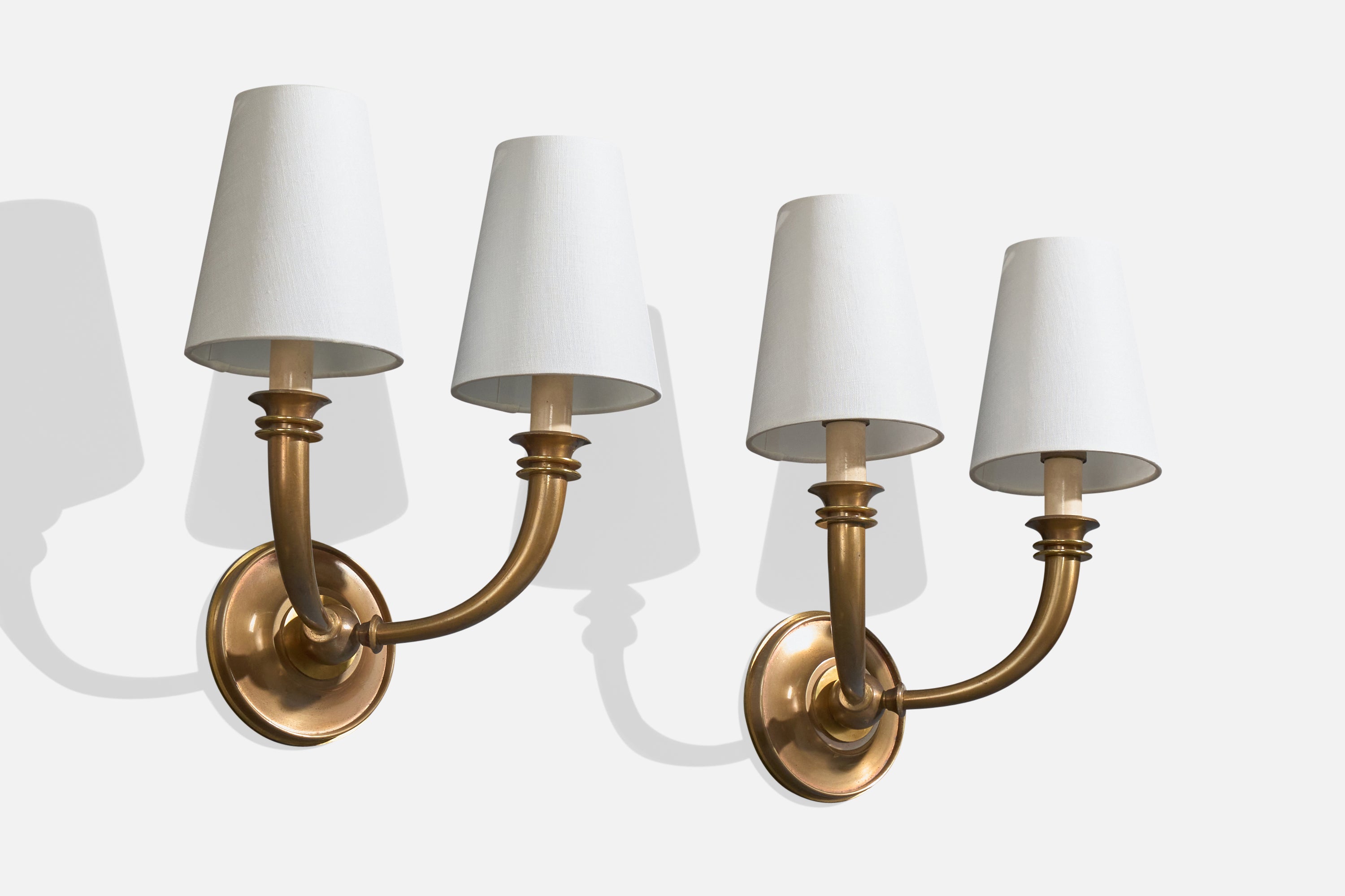 Italian Designer, Wall Lights, Brass, Metal, Fabric, Italy, 1940s
