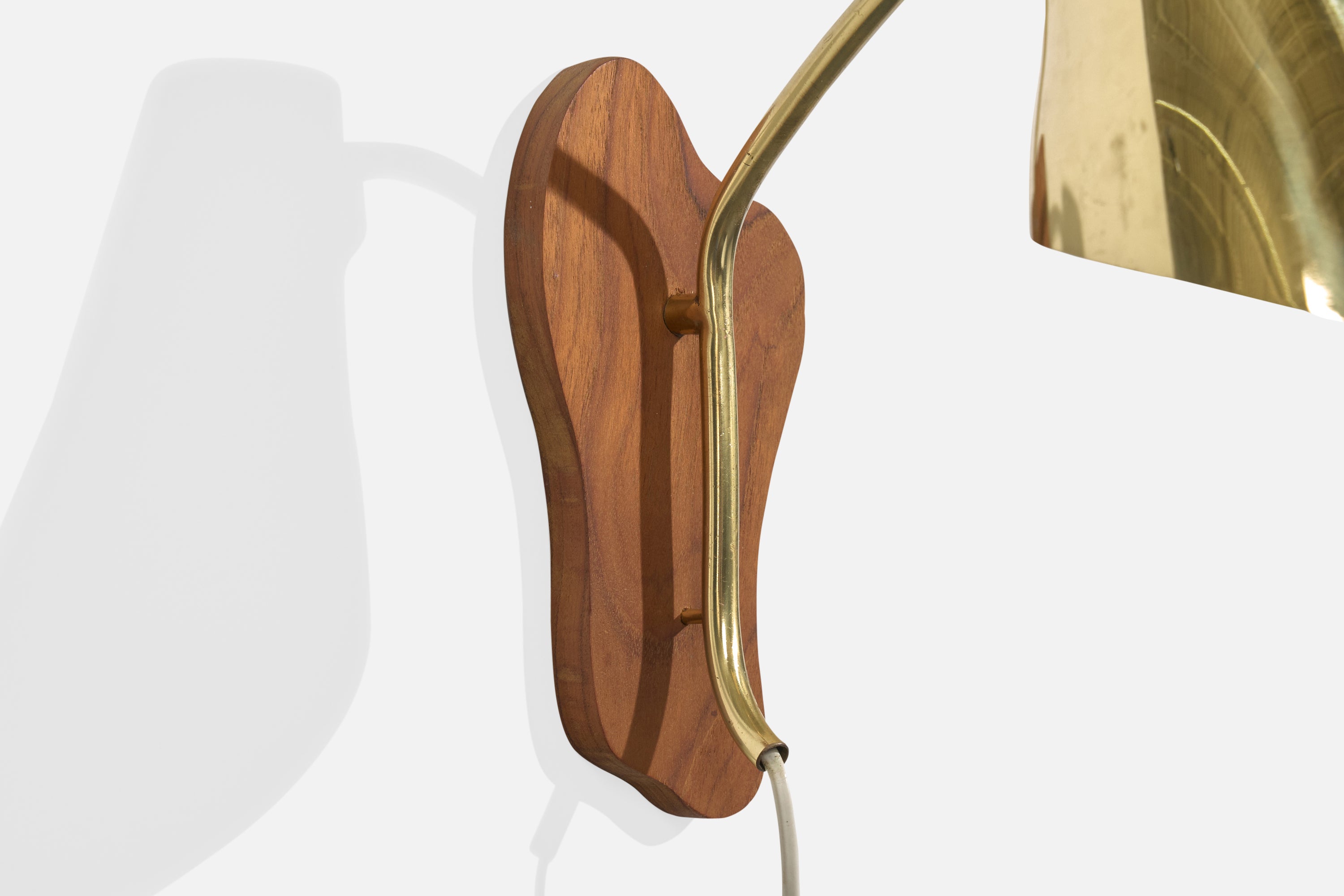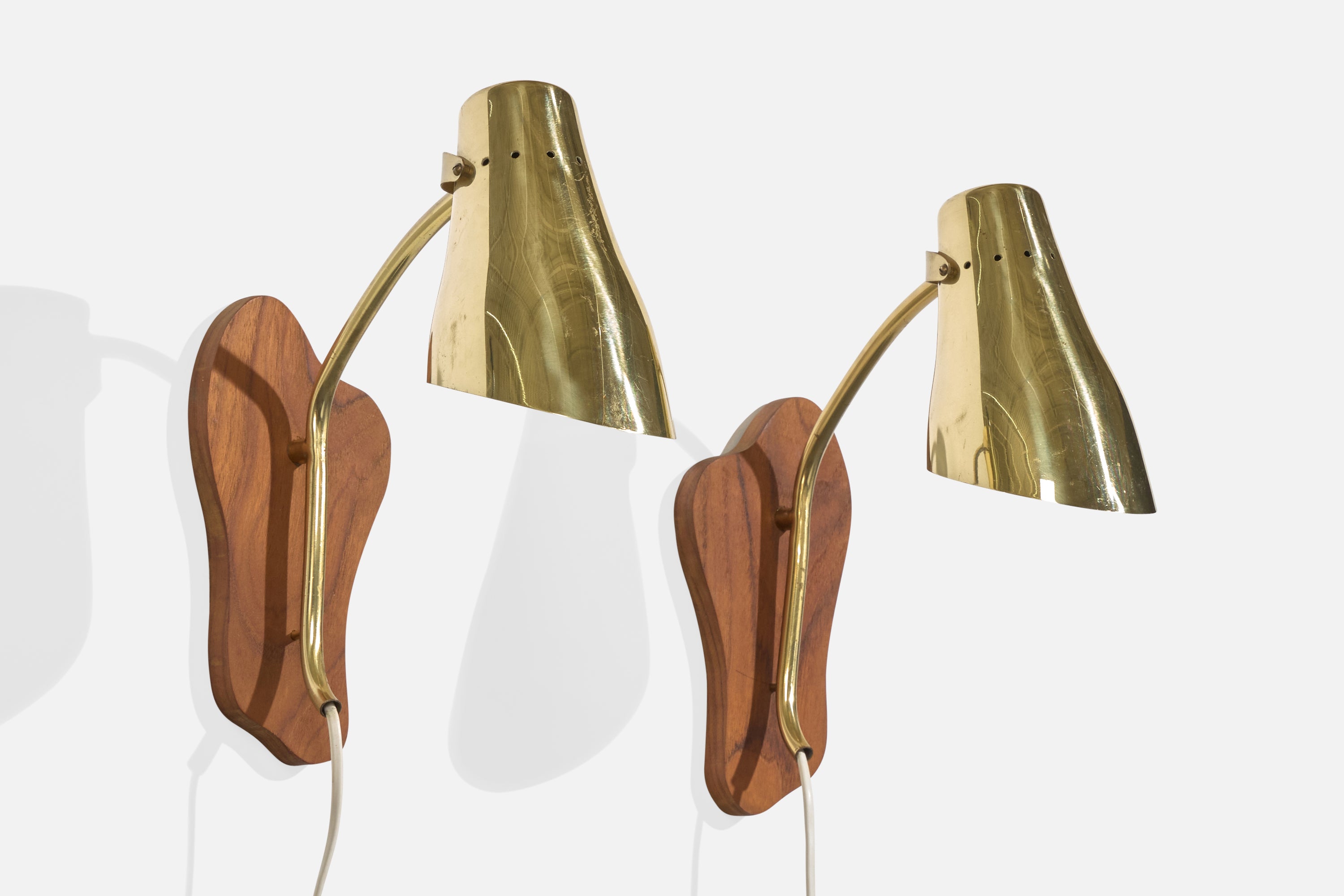 Swedish Designer, Wall Lights, Brass, Wood, Sweden, 1950s