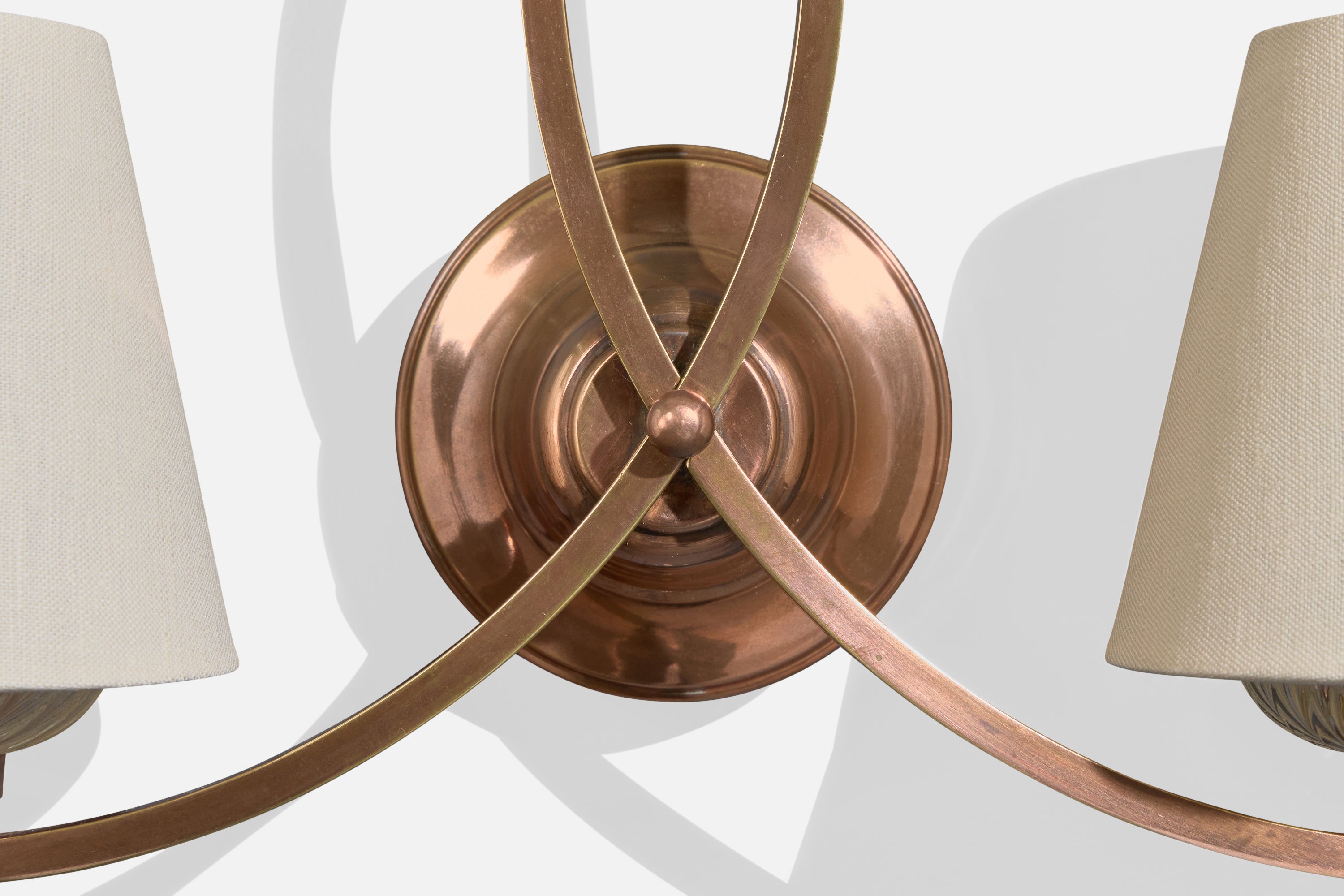 French Designer, Wall Lights, Copper, Glass, Fabric, France, 1950s