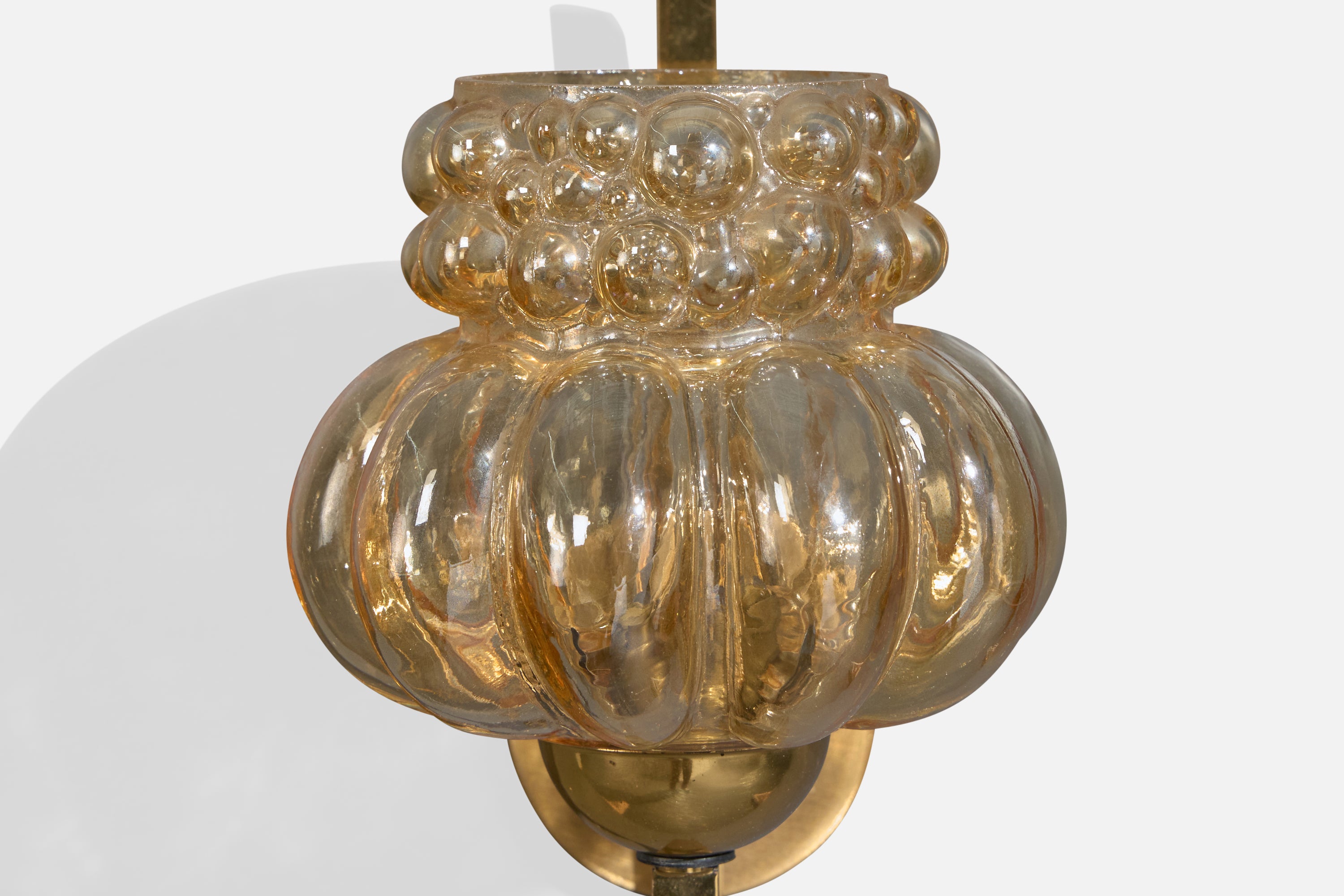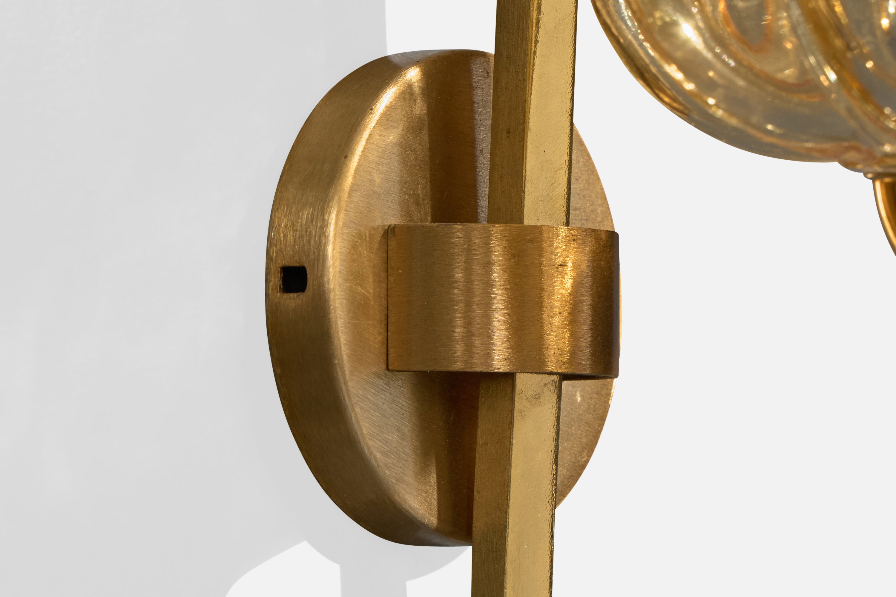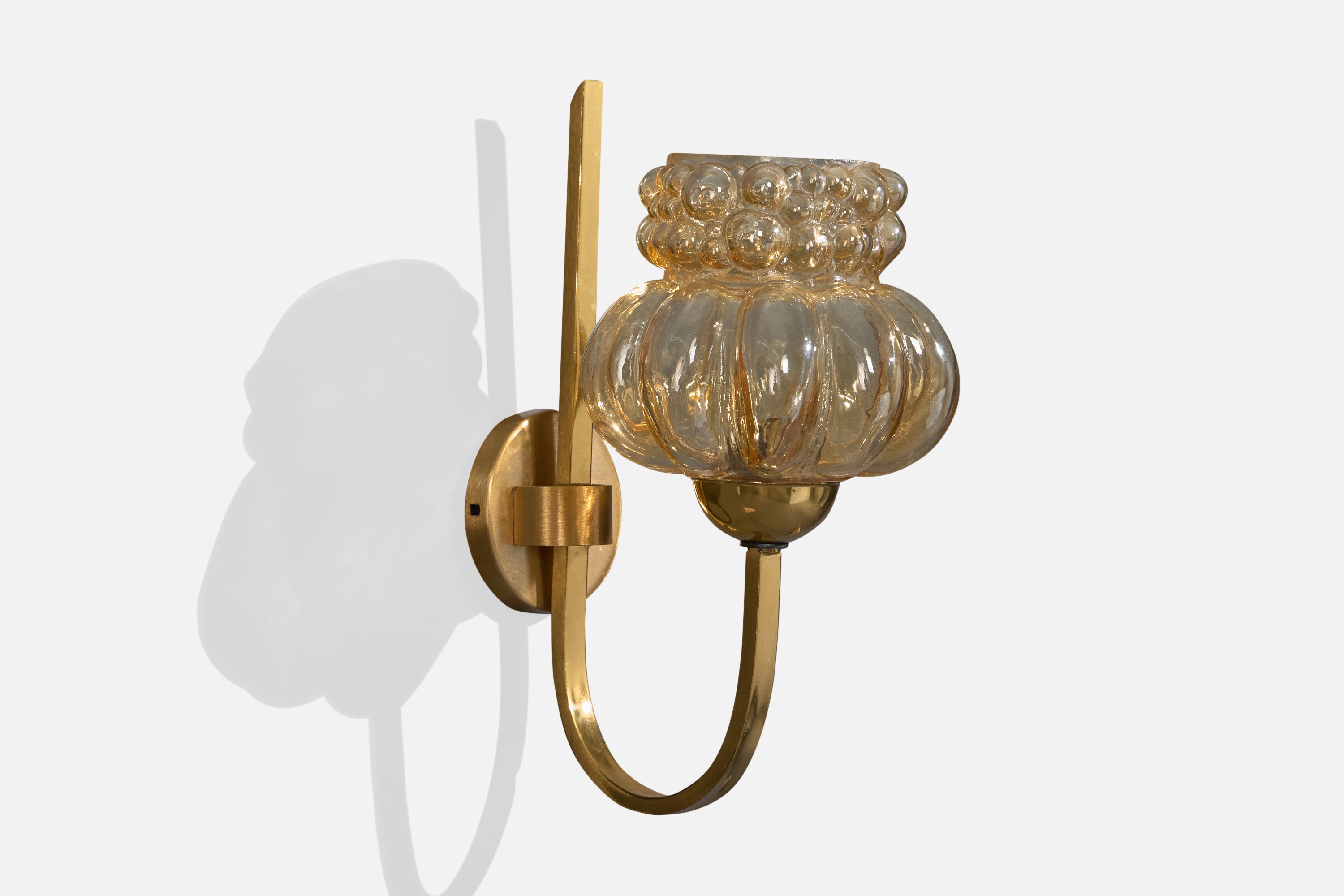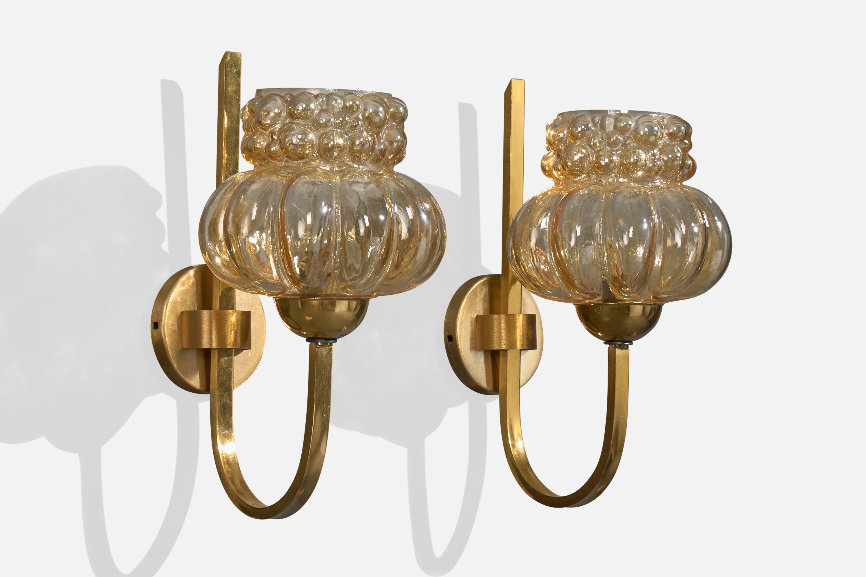 A pair of brass and glass wall lights likely designed and produced in Germany, c. 1950s.