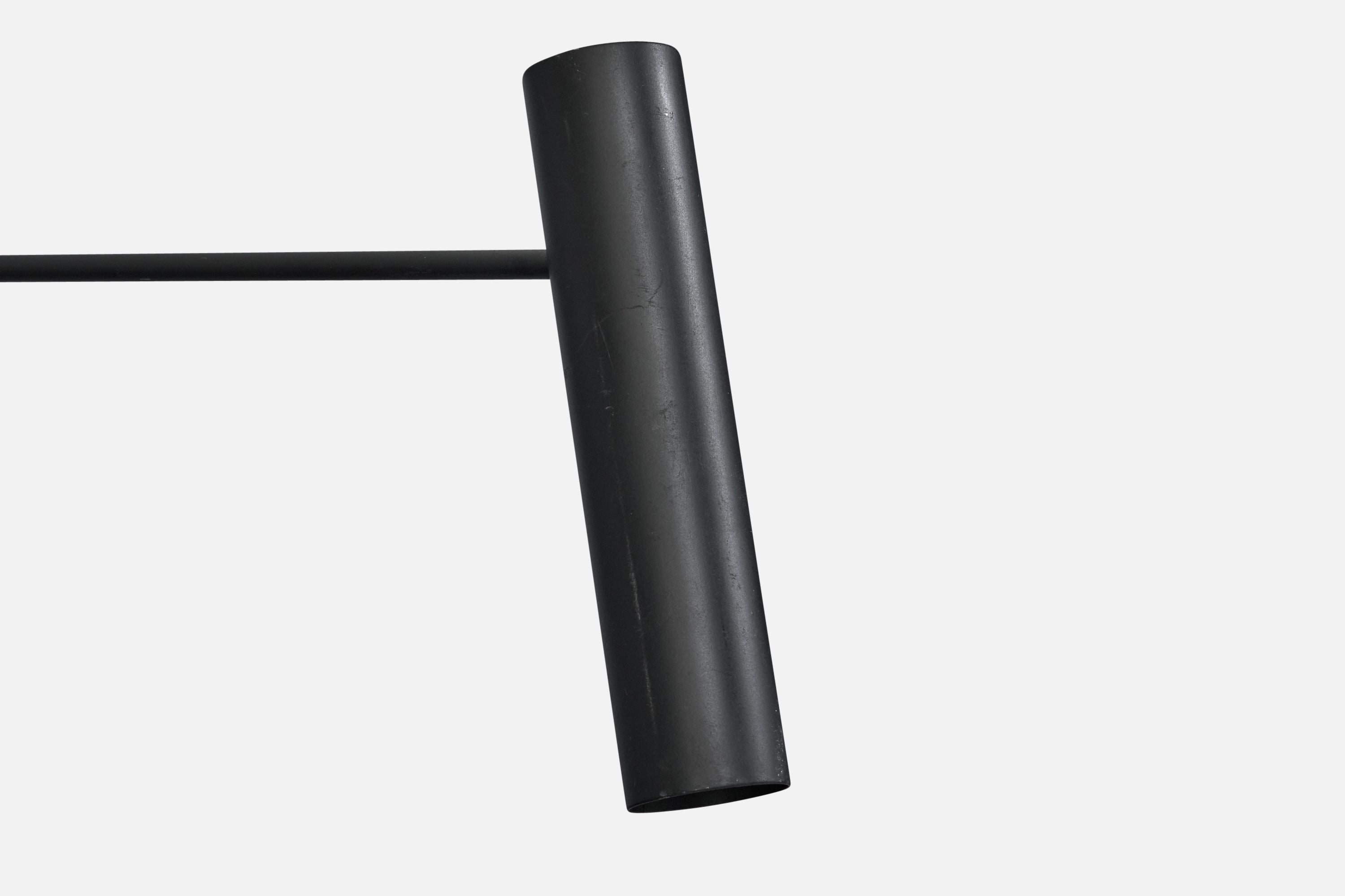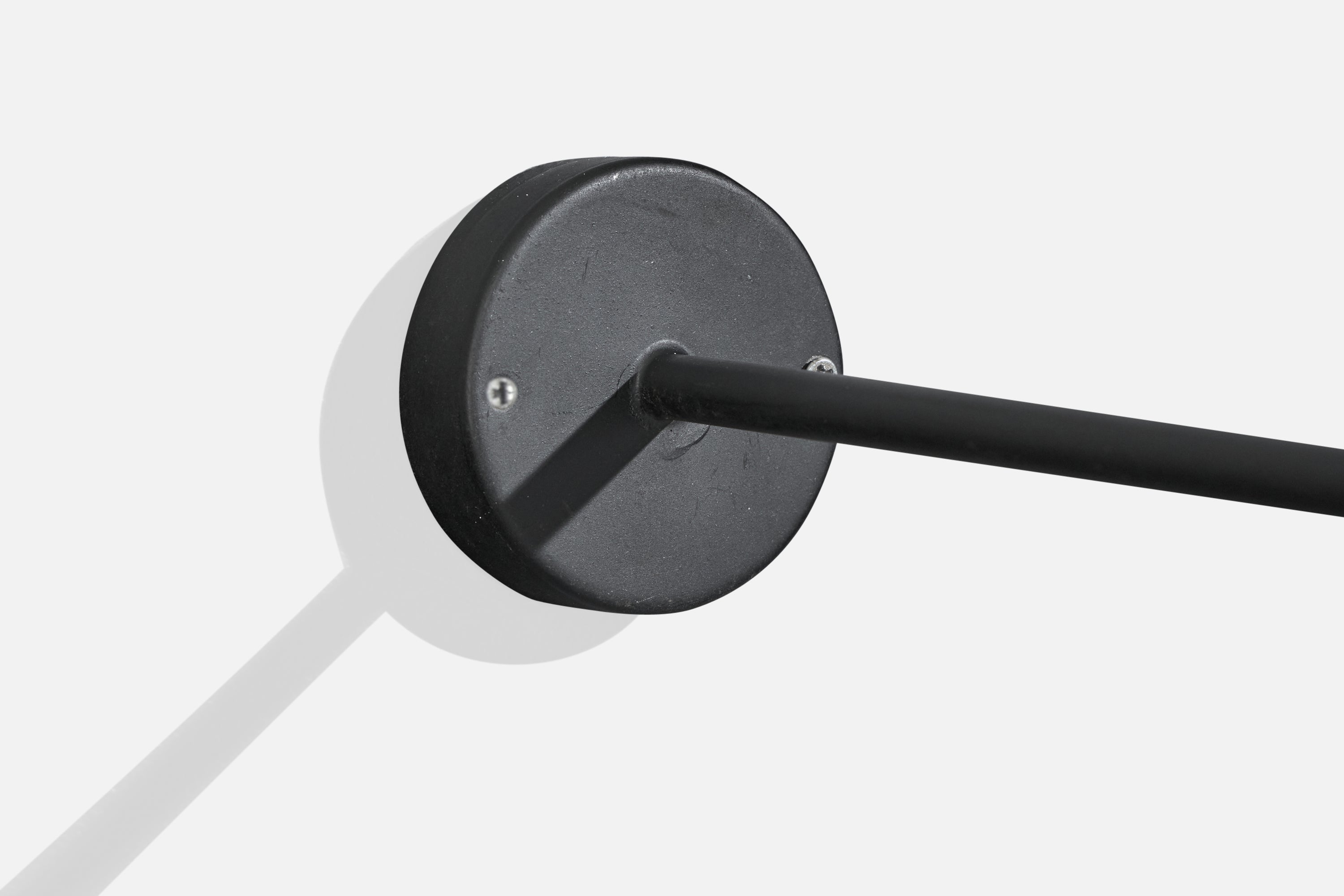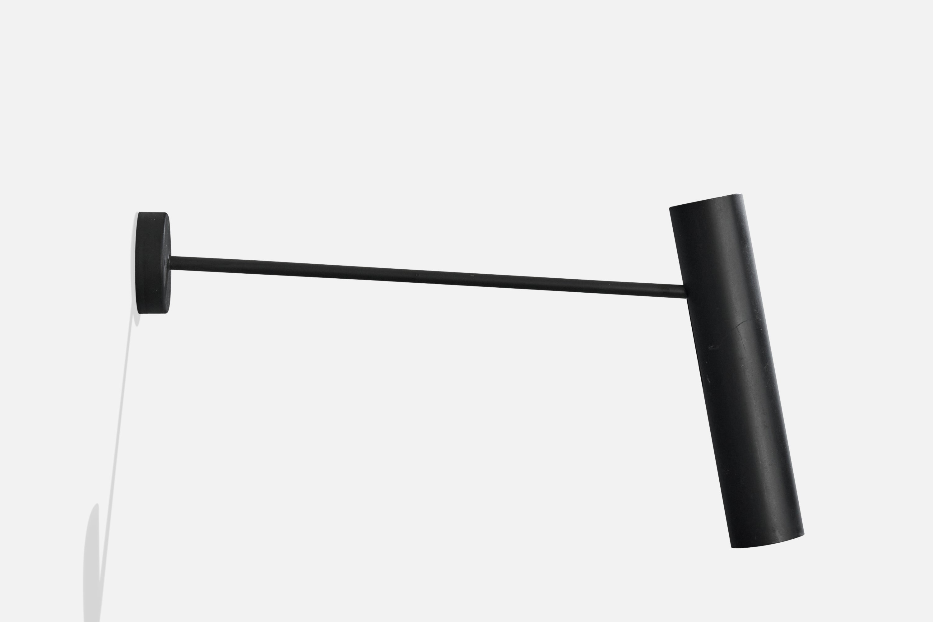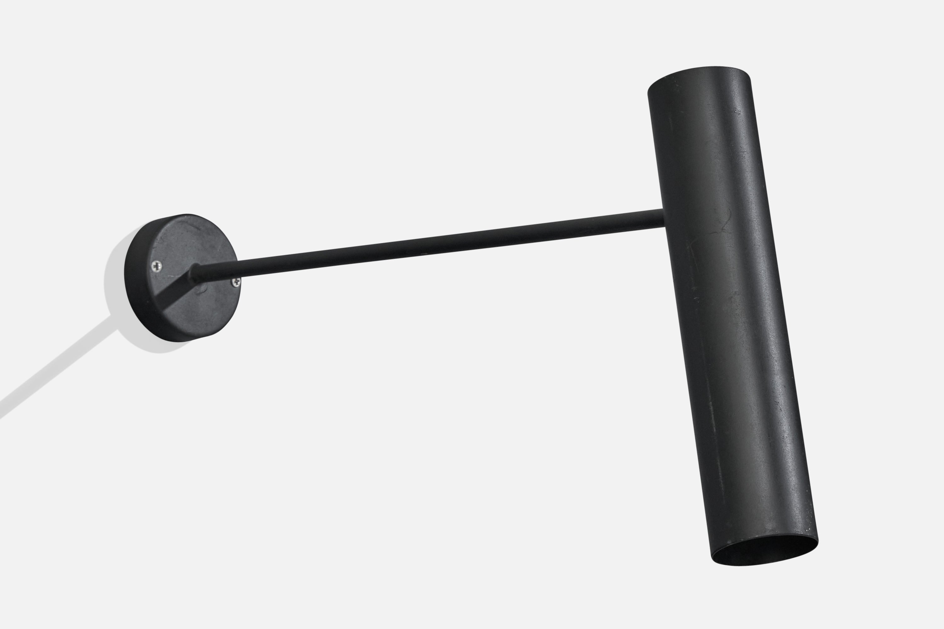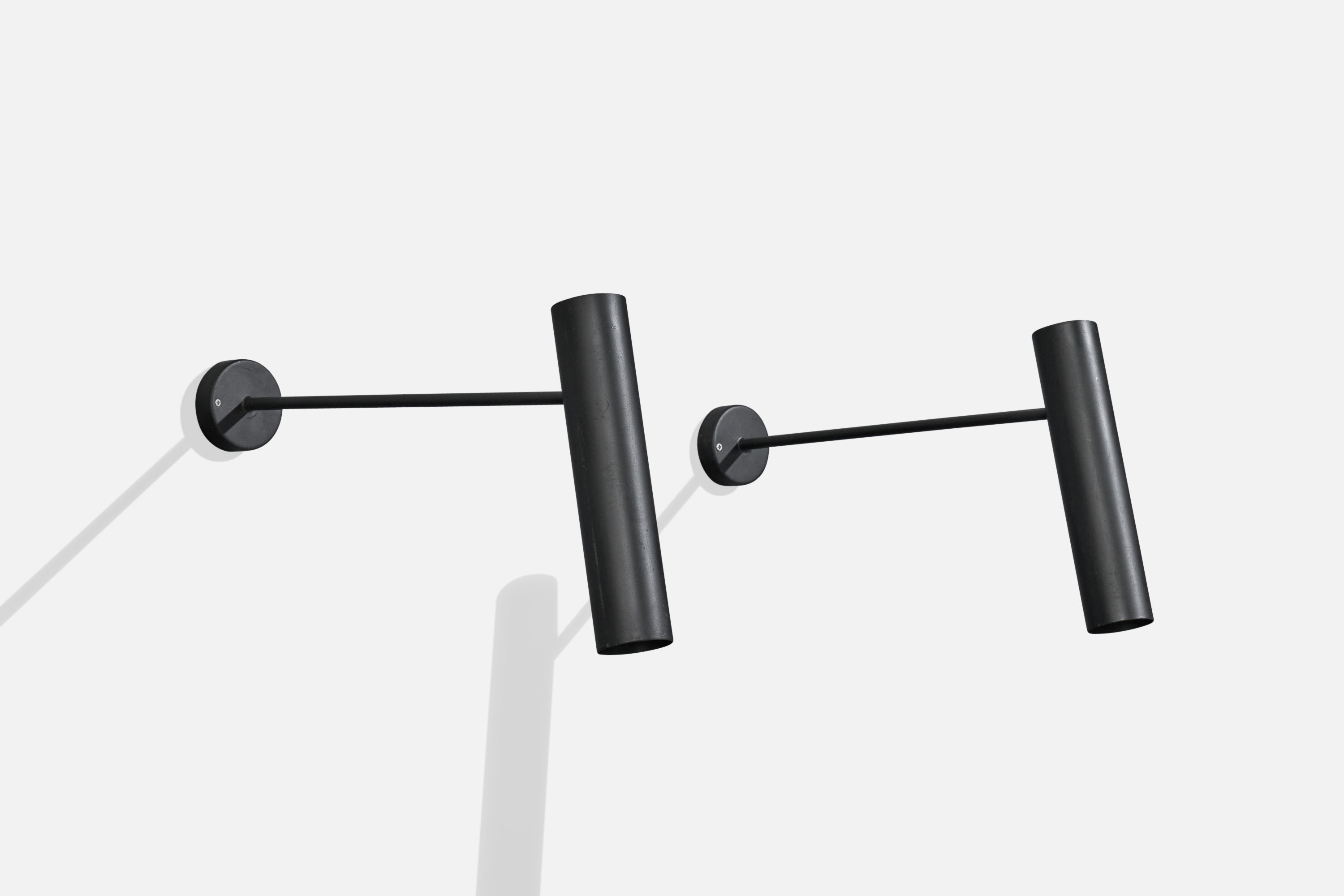 A pair of adjustable black-lacquered wall lights designed and produced in France, c. 1970s.