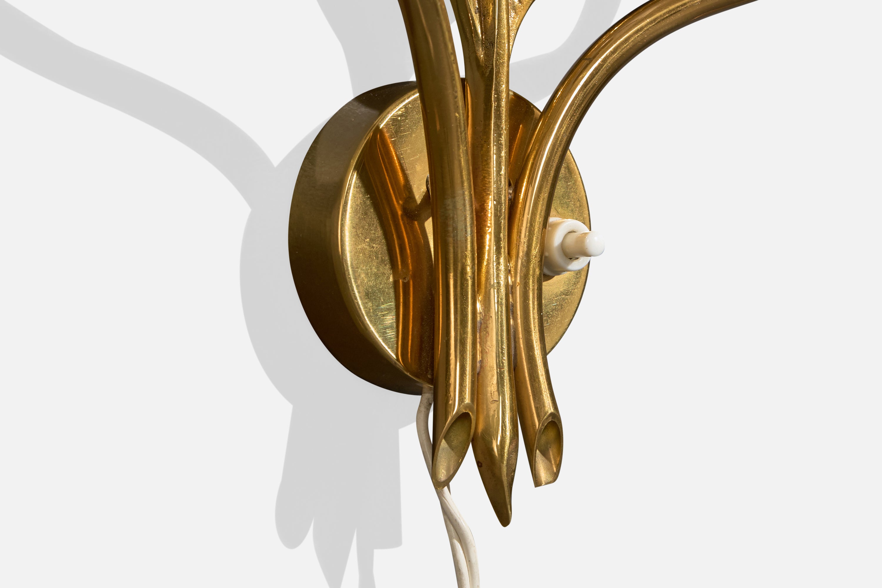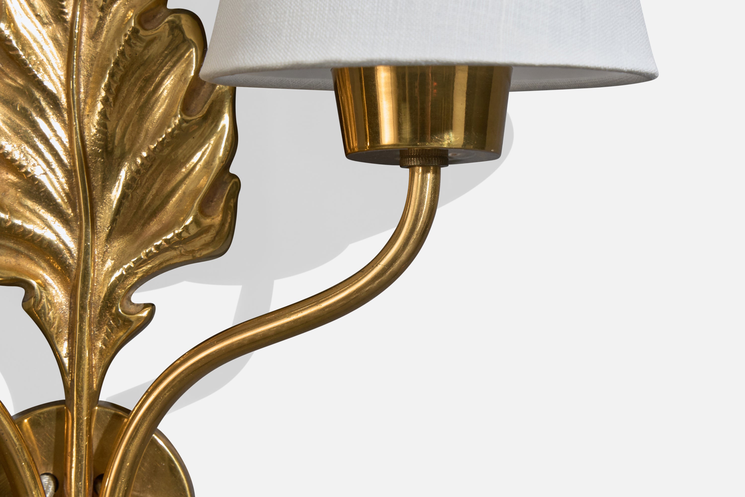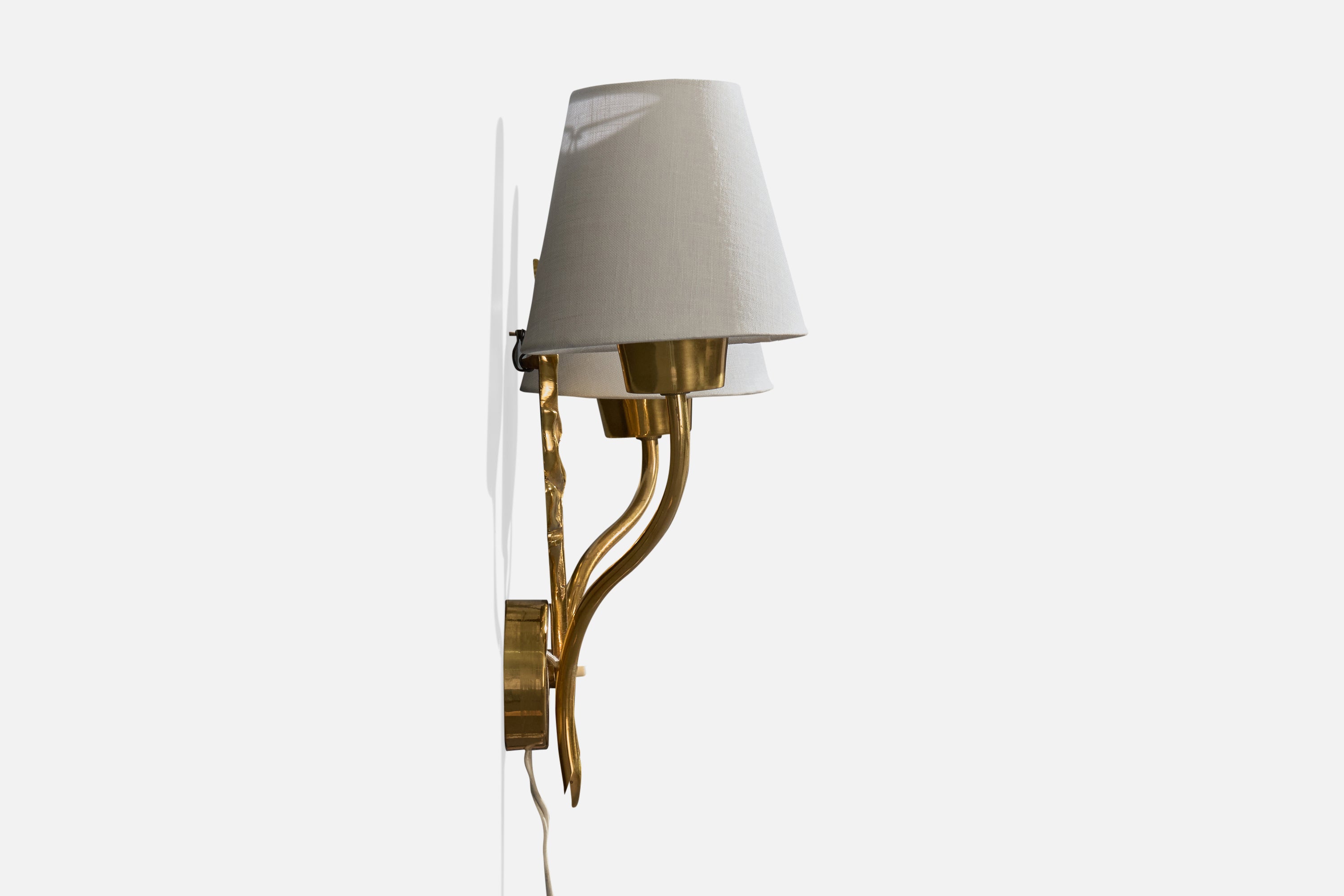 Swedish Designer, Wall Light, Brass, Fabric, Sweden, 1950s