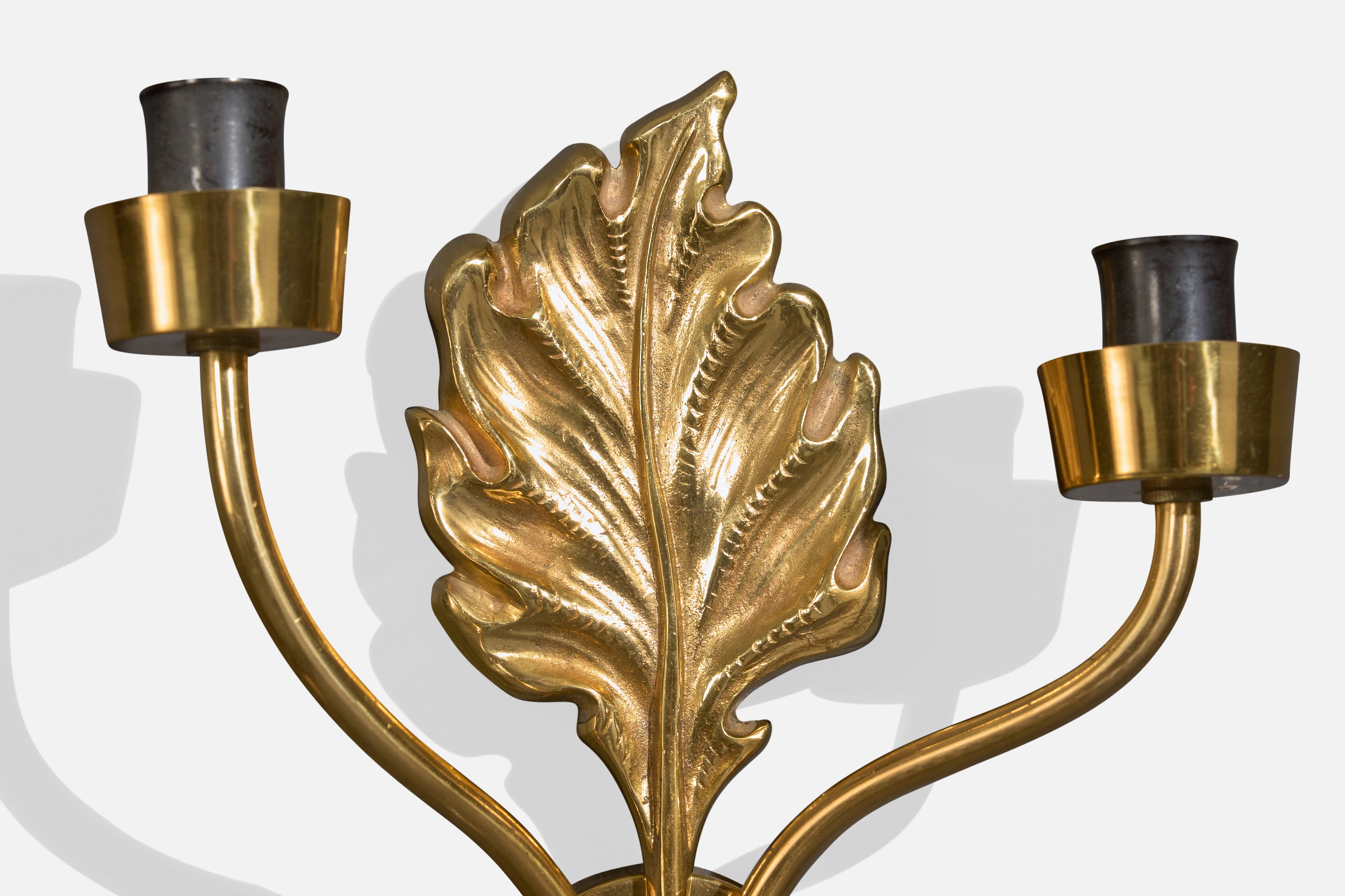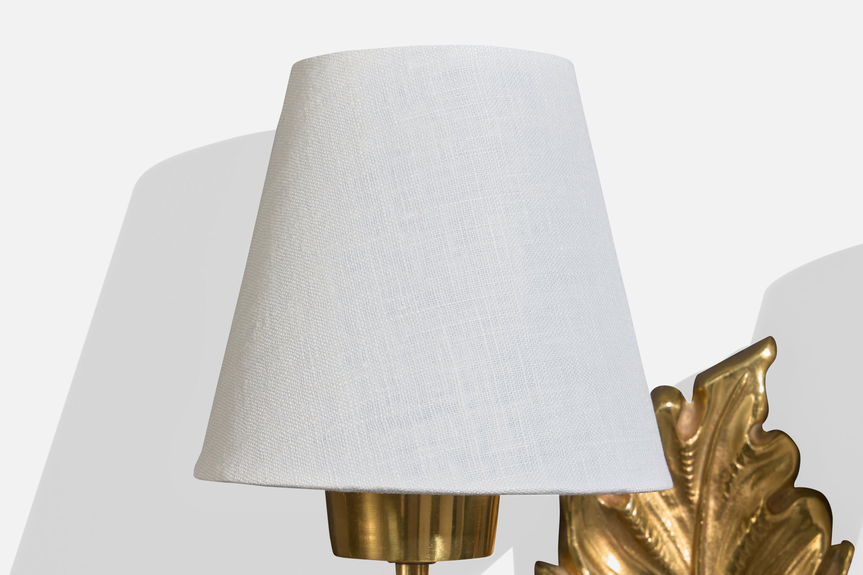A brass and white fabric wall lights designed and produced in Sweden, c. 1950s.
