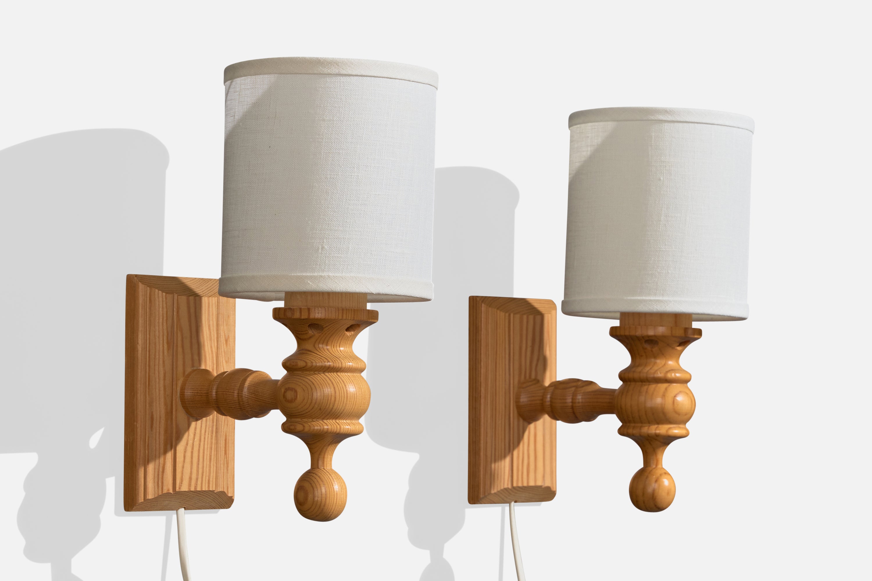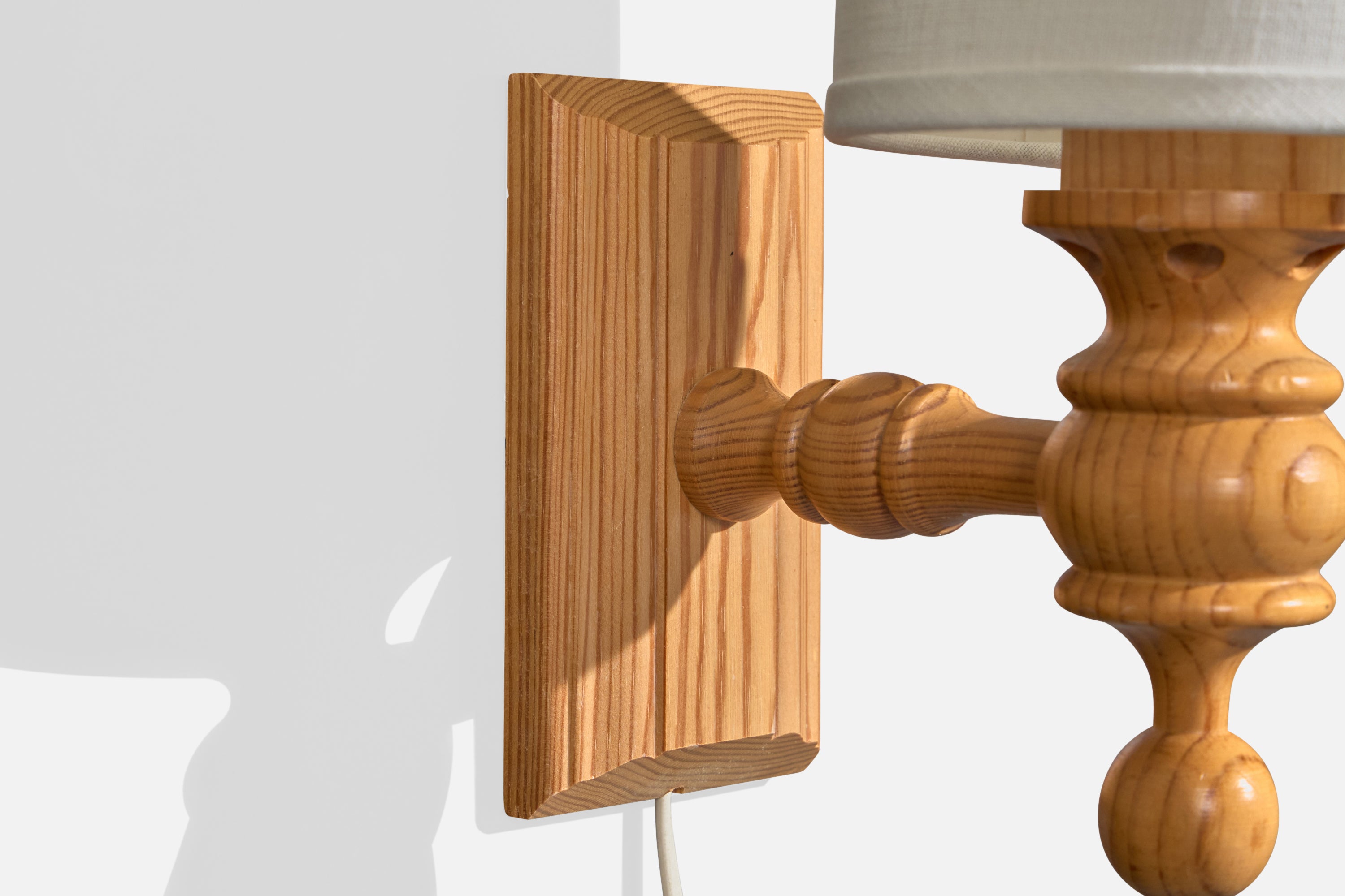 Swedish Designer, Wall Lights, Pine, Fabric, Sweden, 1970s